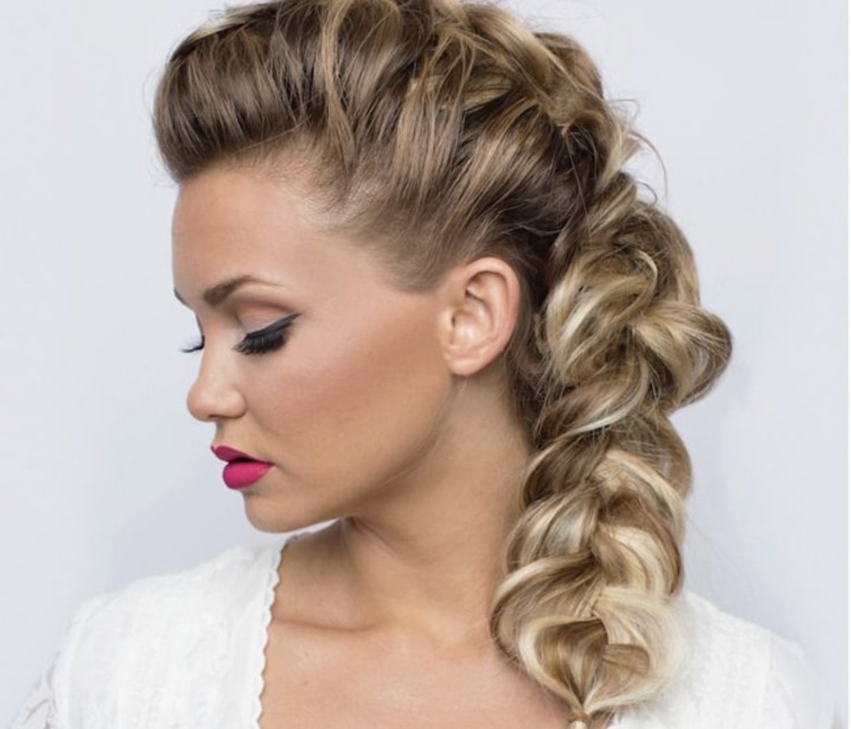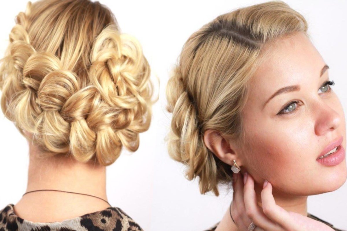 Вечерняя прическа с плетением на средние волосы