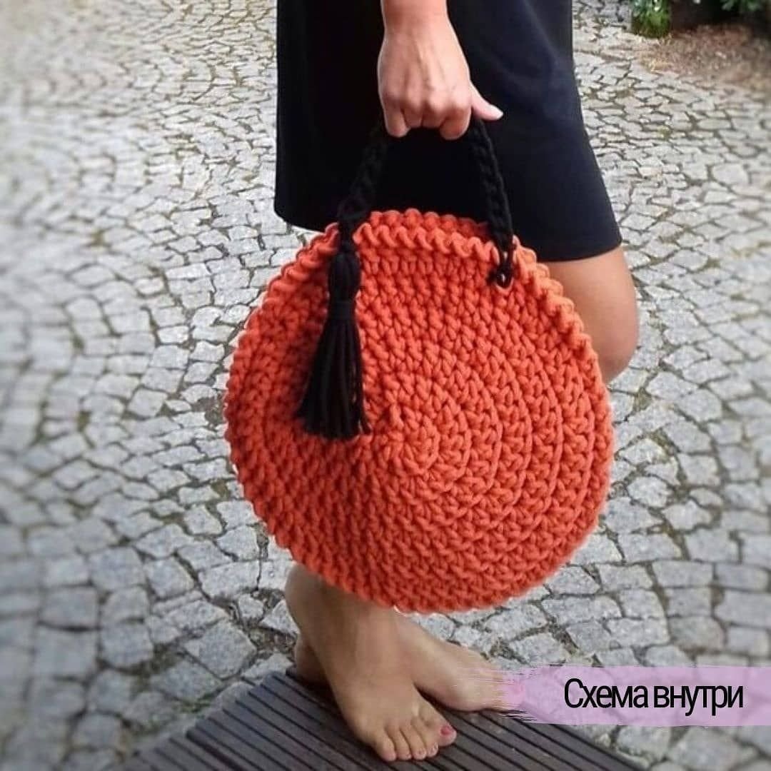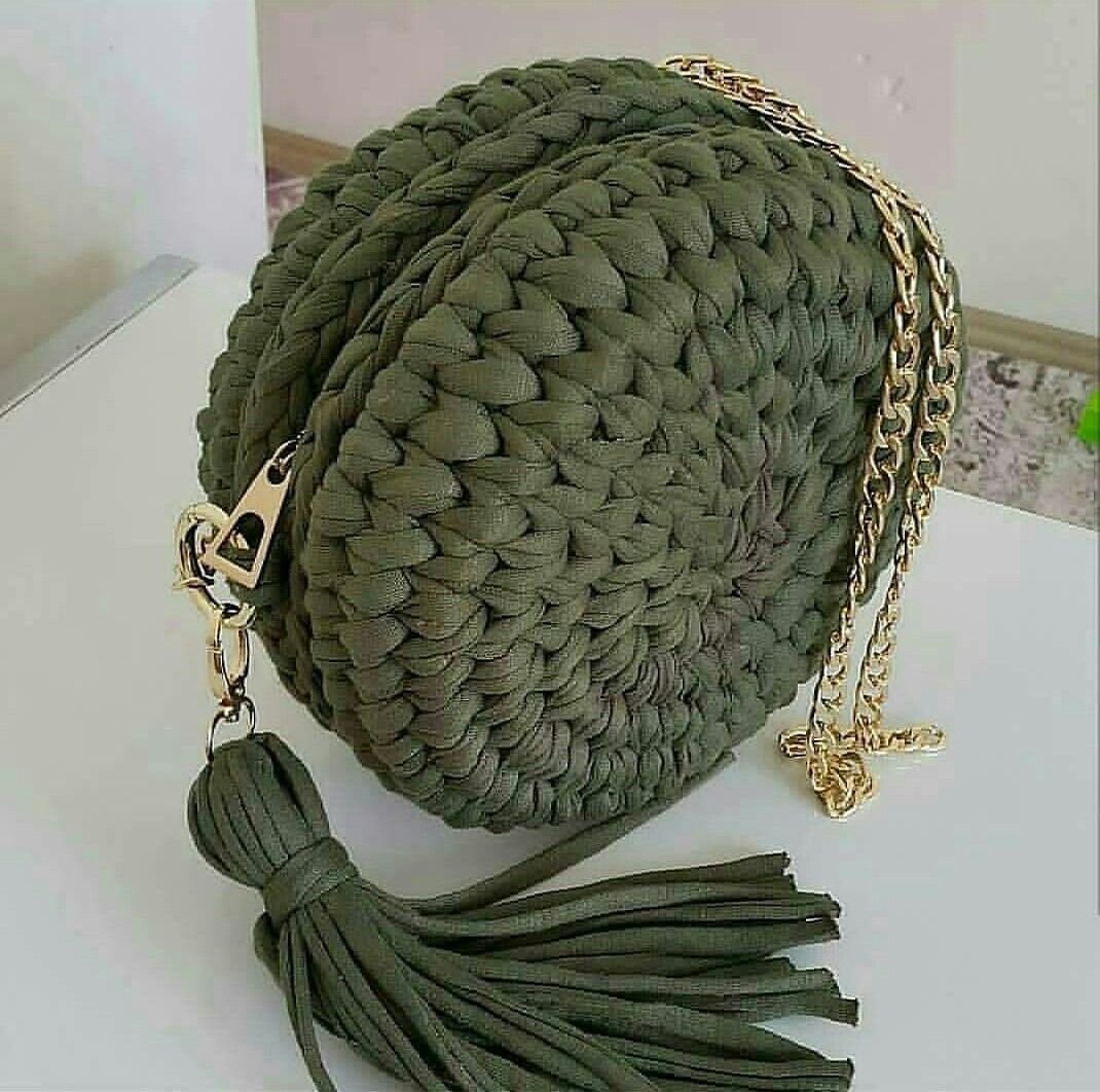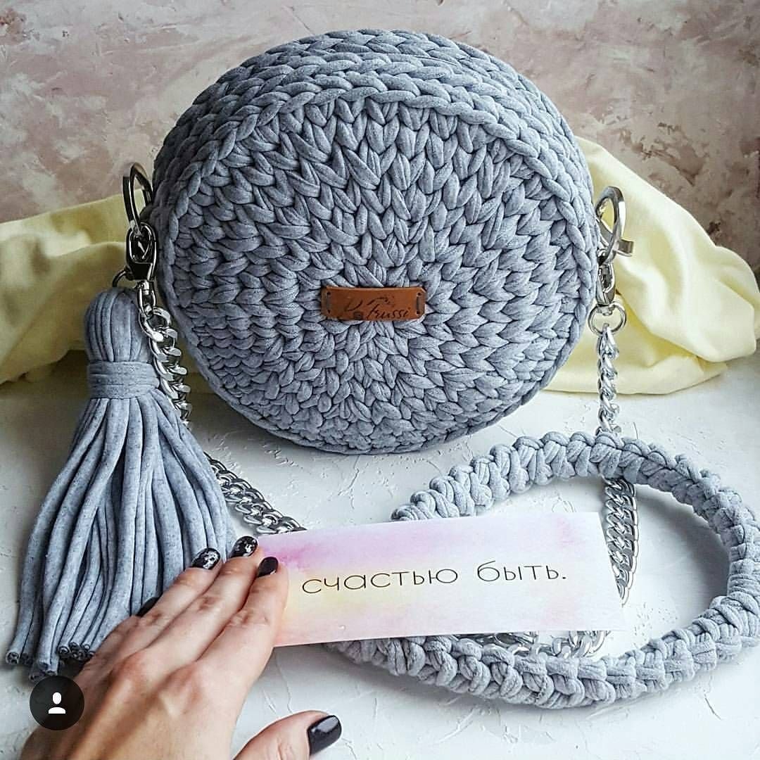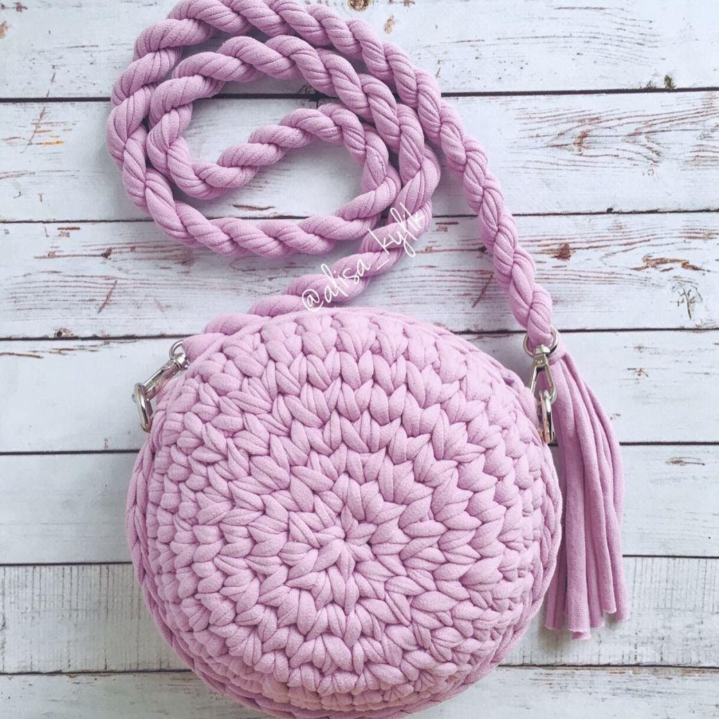 Вязаные сумки крючком из трикотажной пряжи схемы
