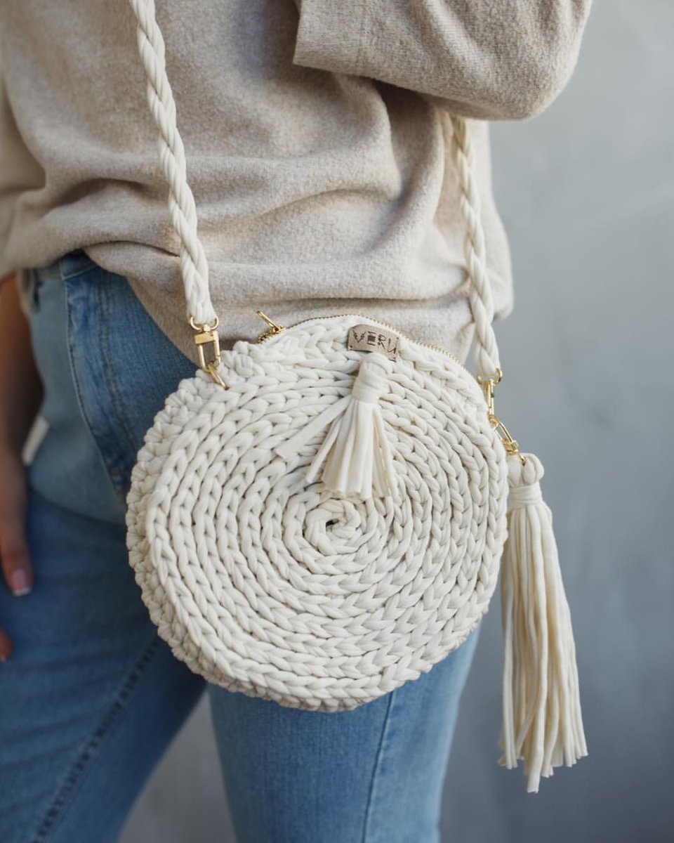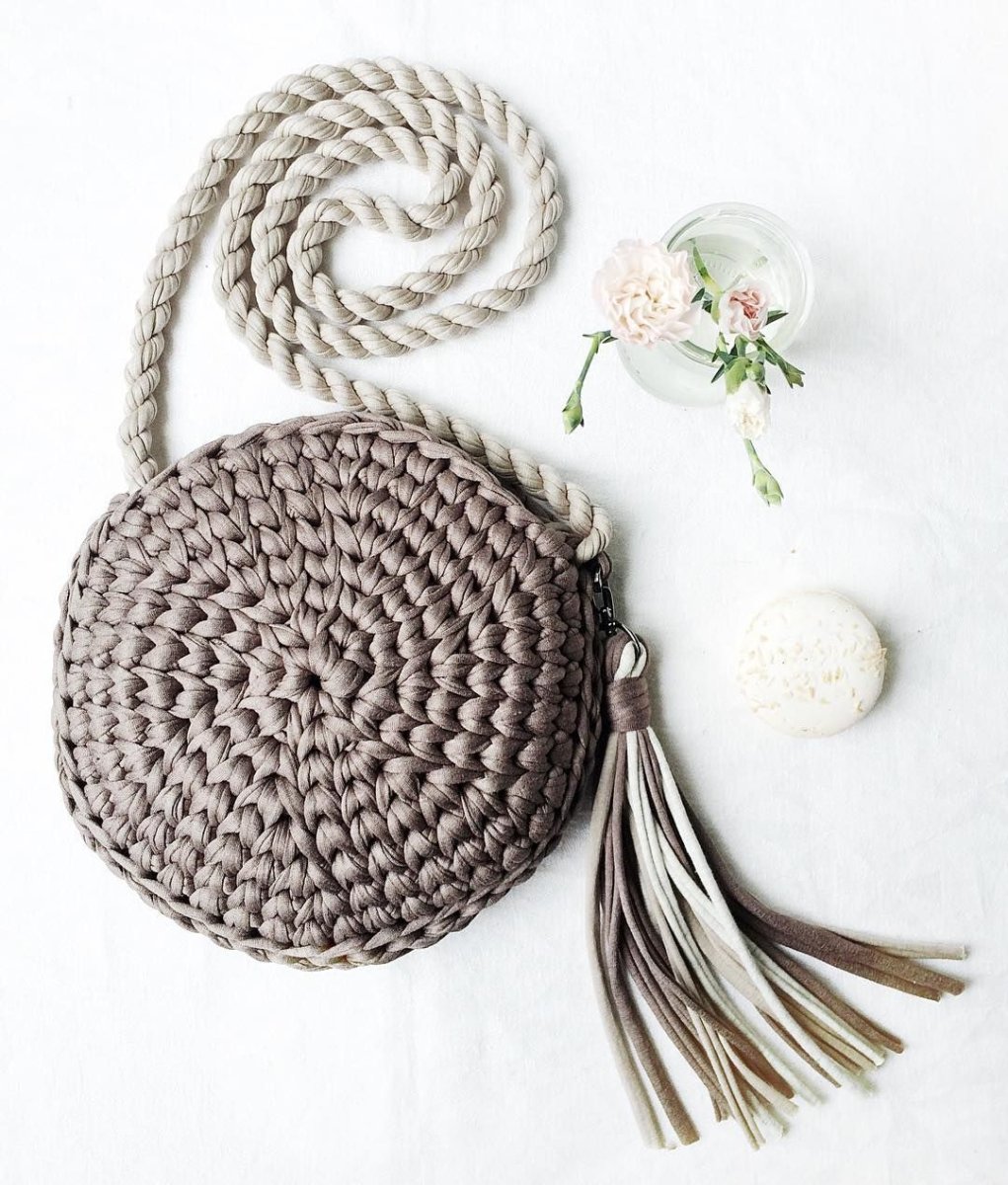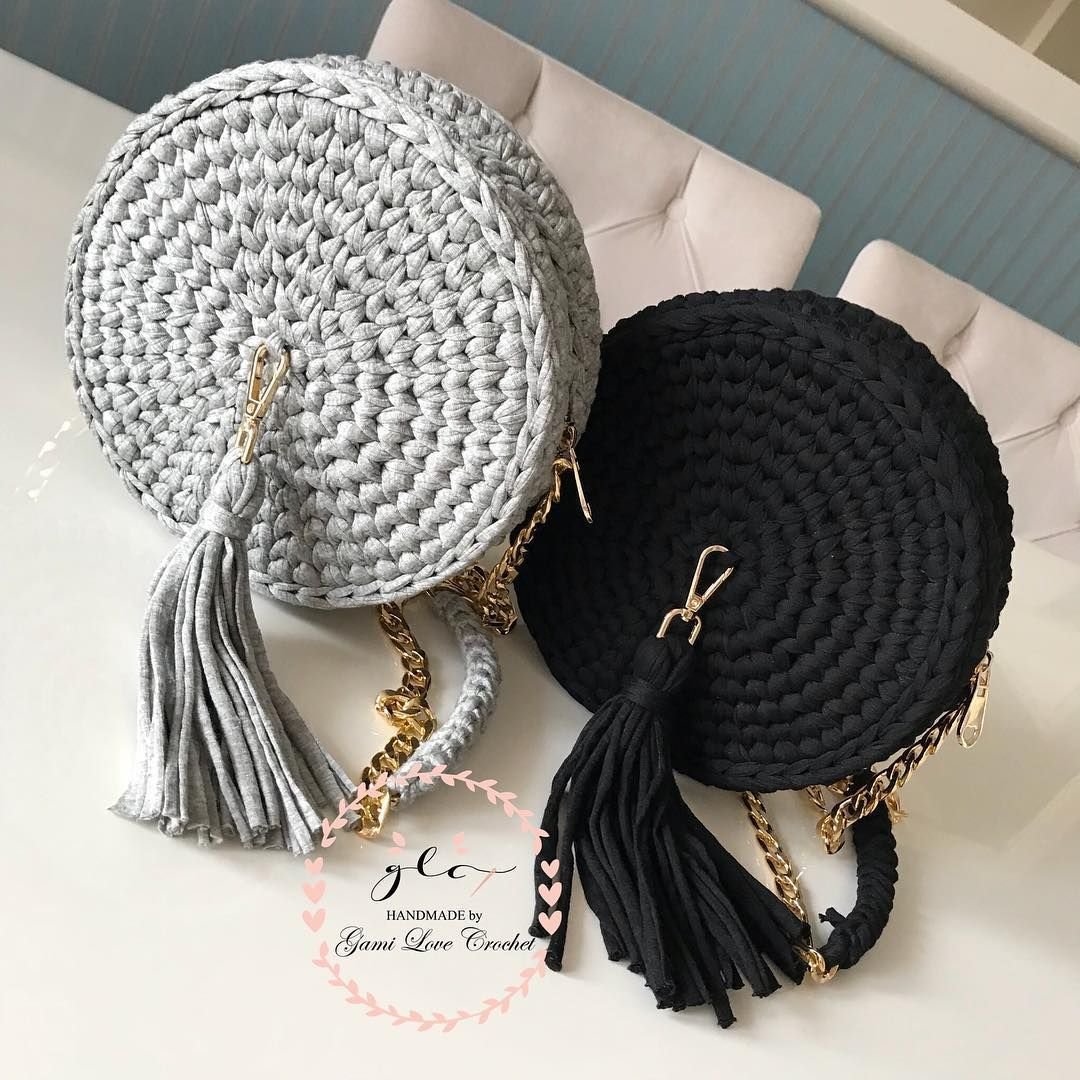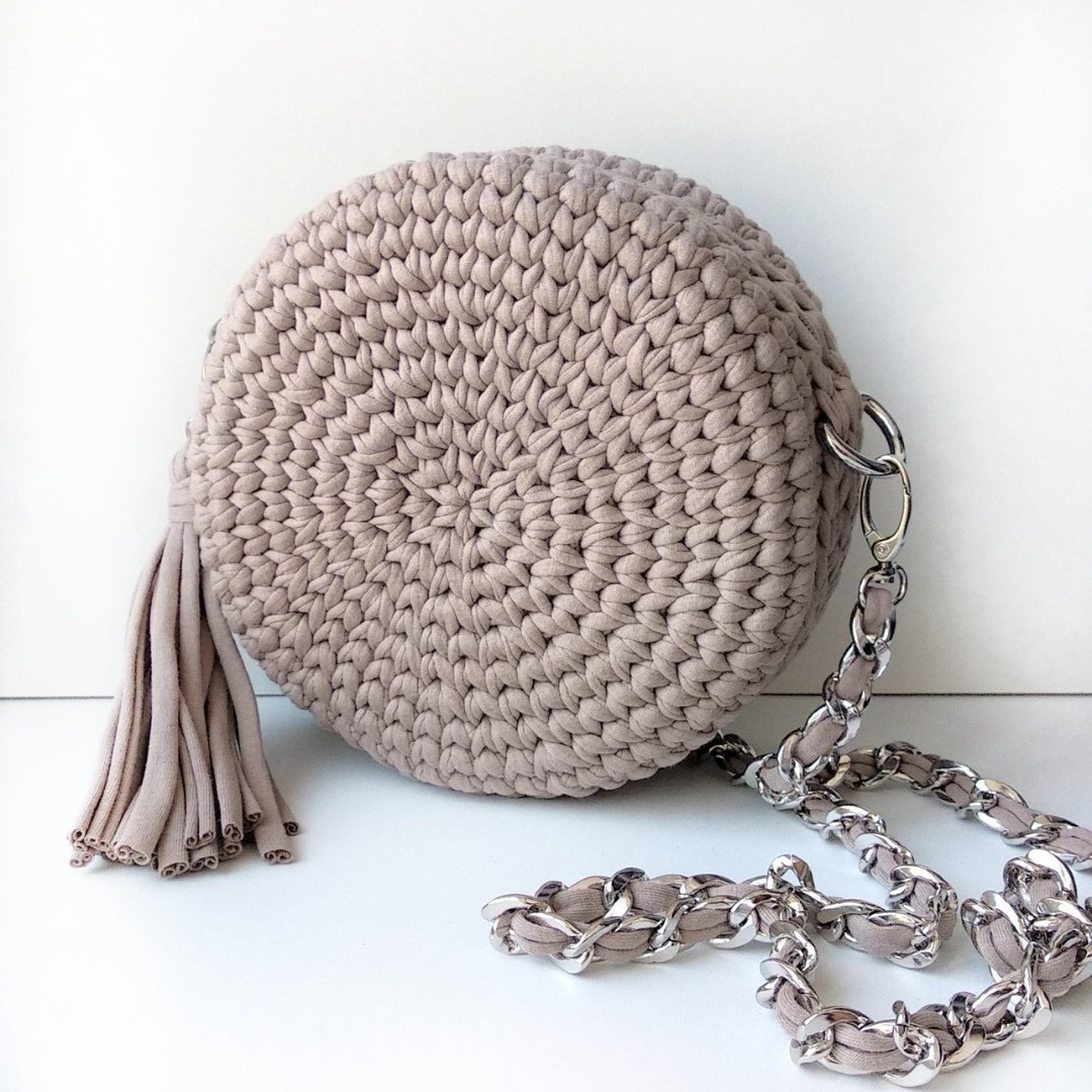 Вязаные сумки крючком из трикотажной пряжи схемы