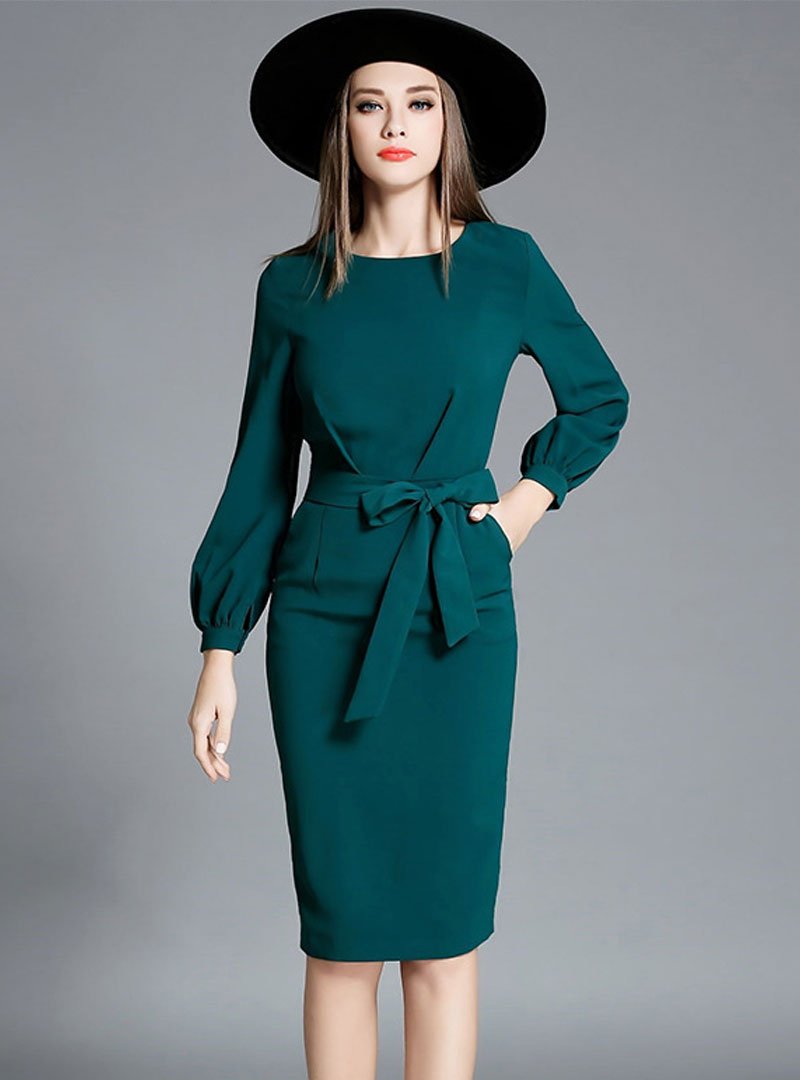 Однотонное платье с длинным рукавом