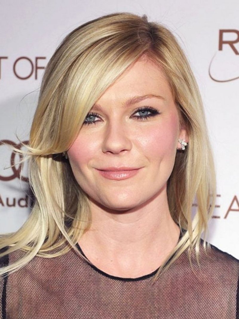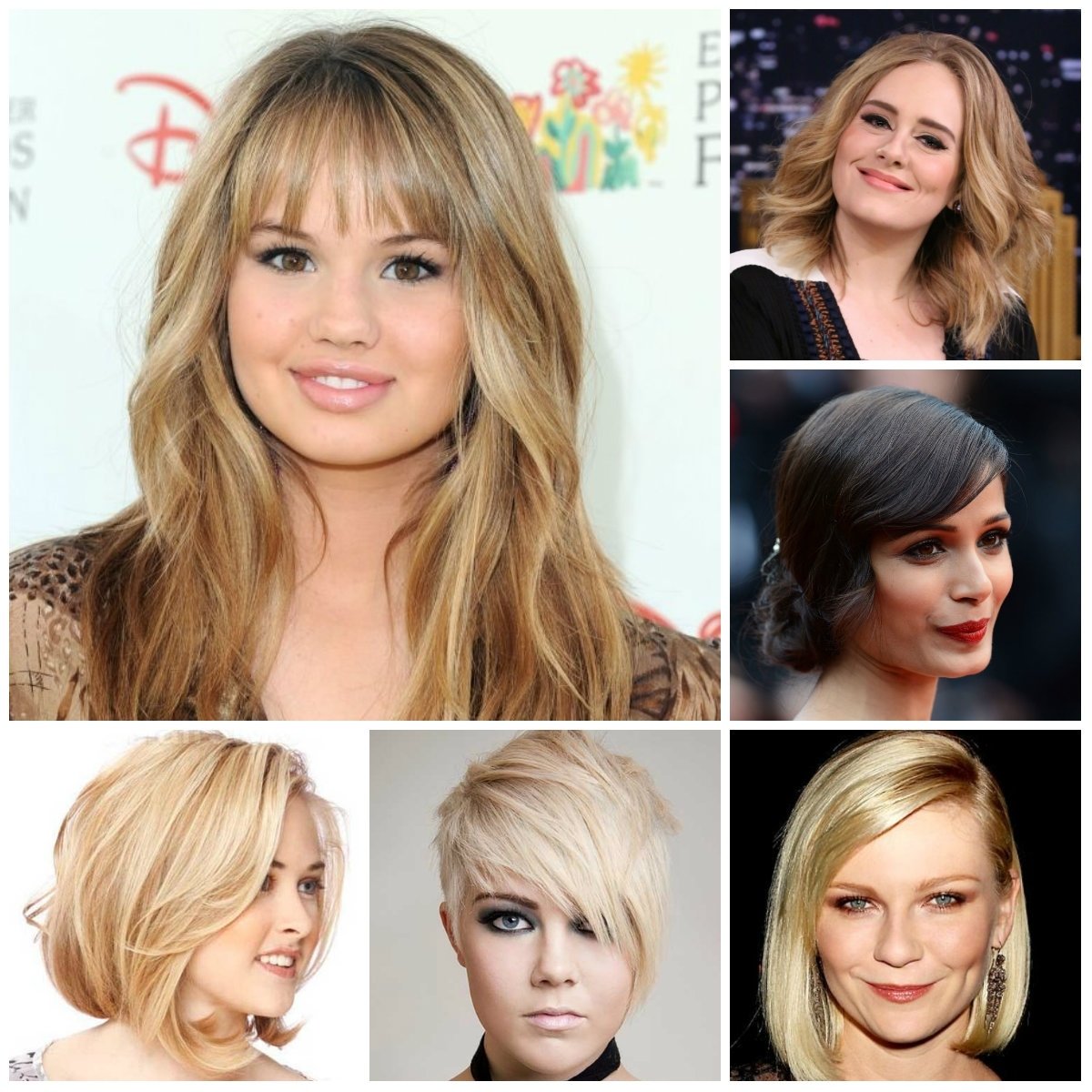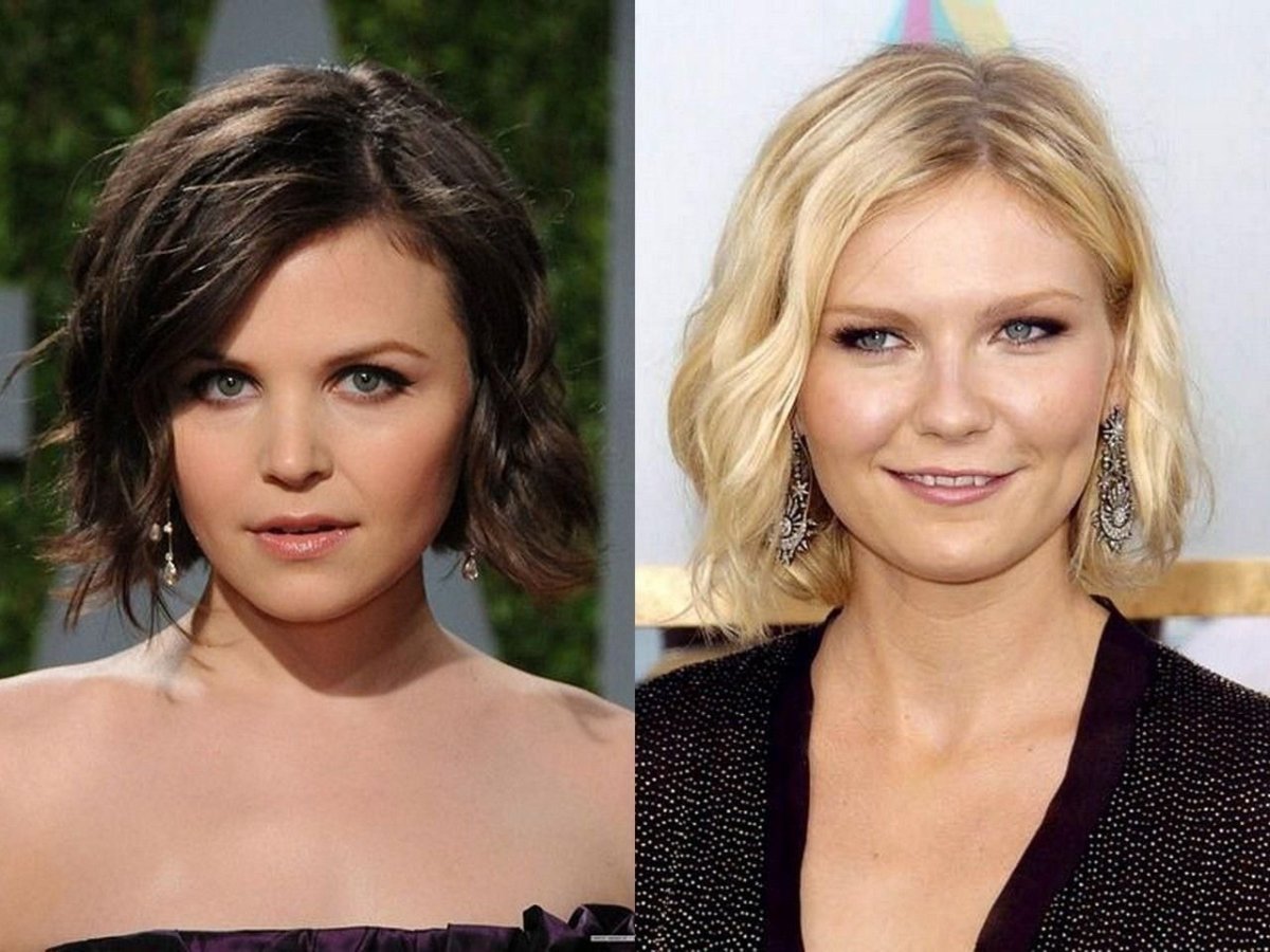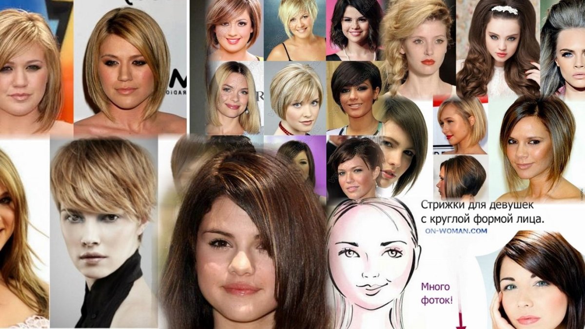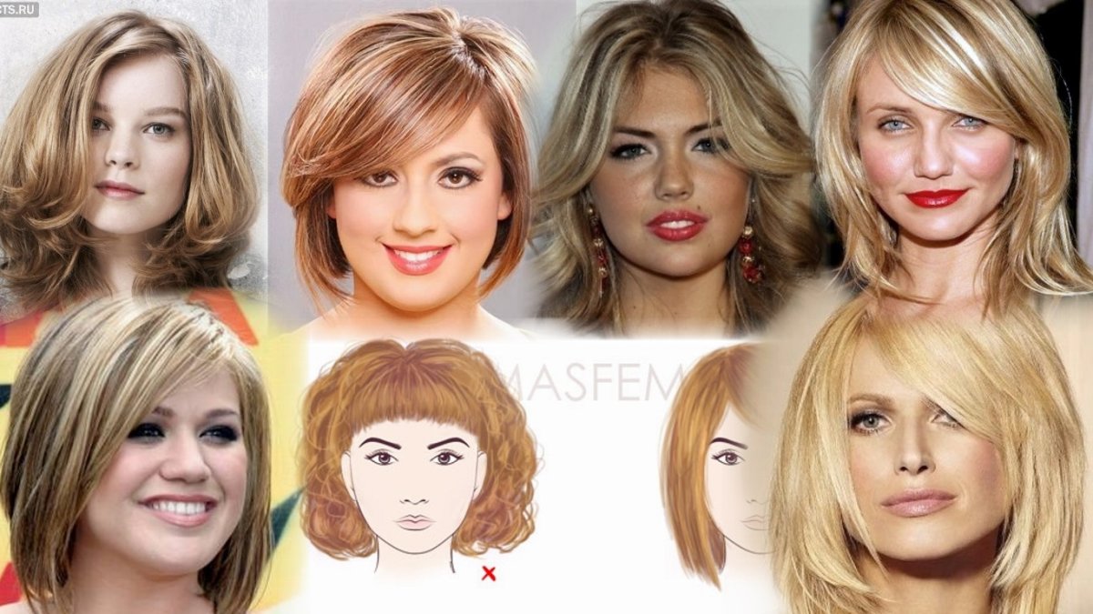 Стрижка типа каре на средние волосы с челкой для круглого лица