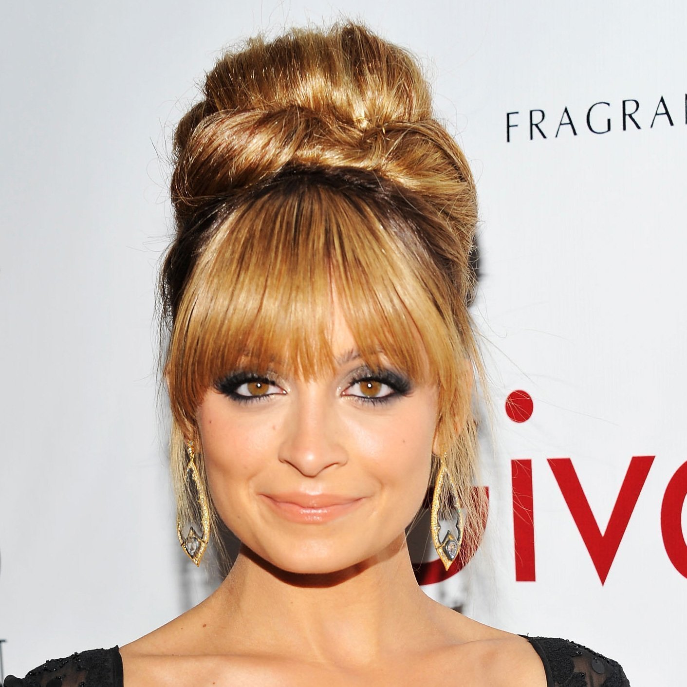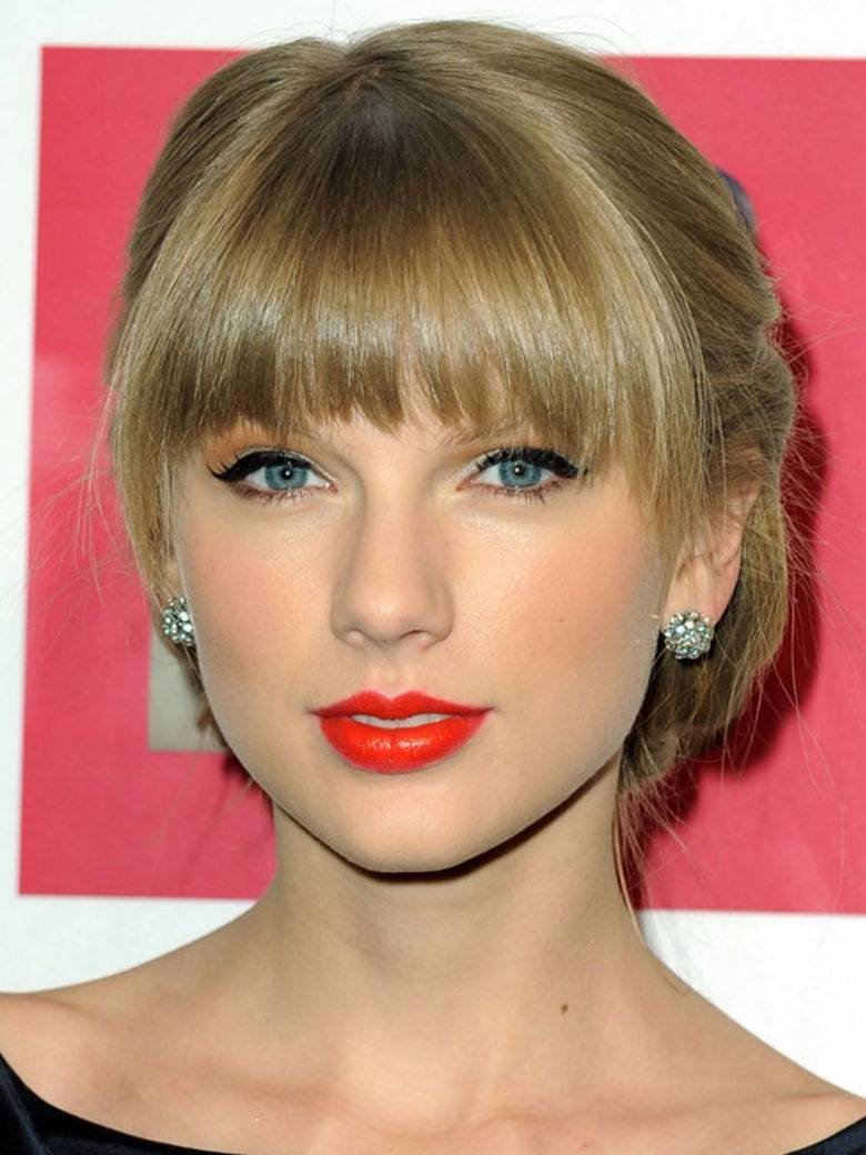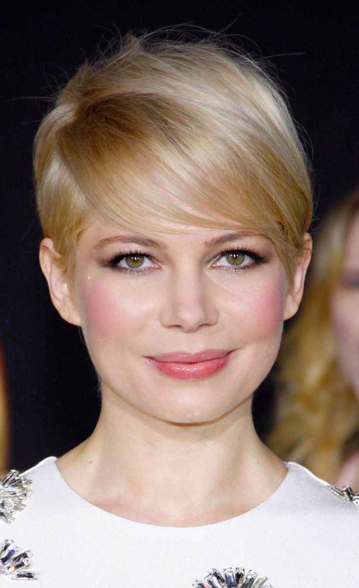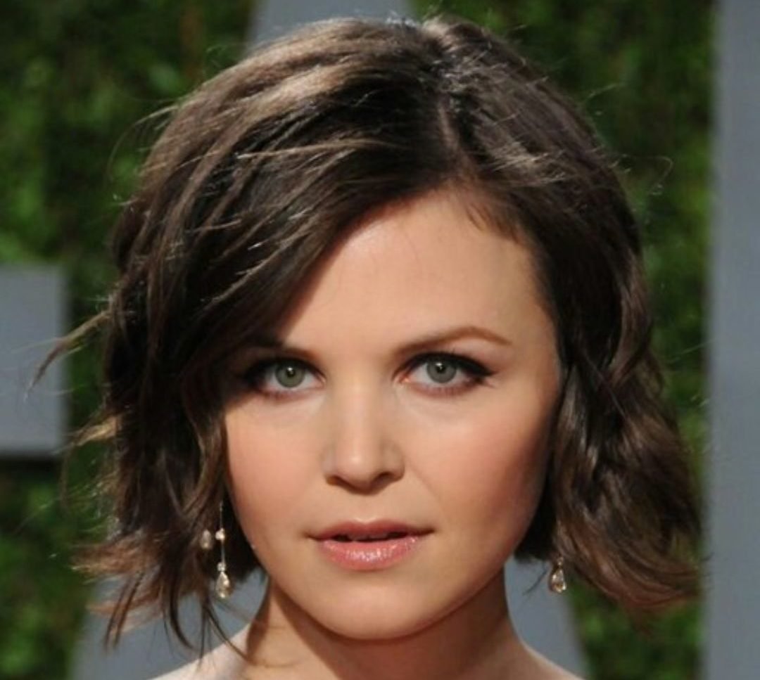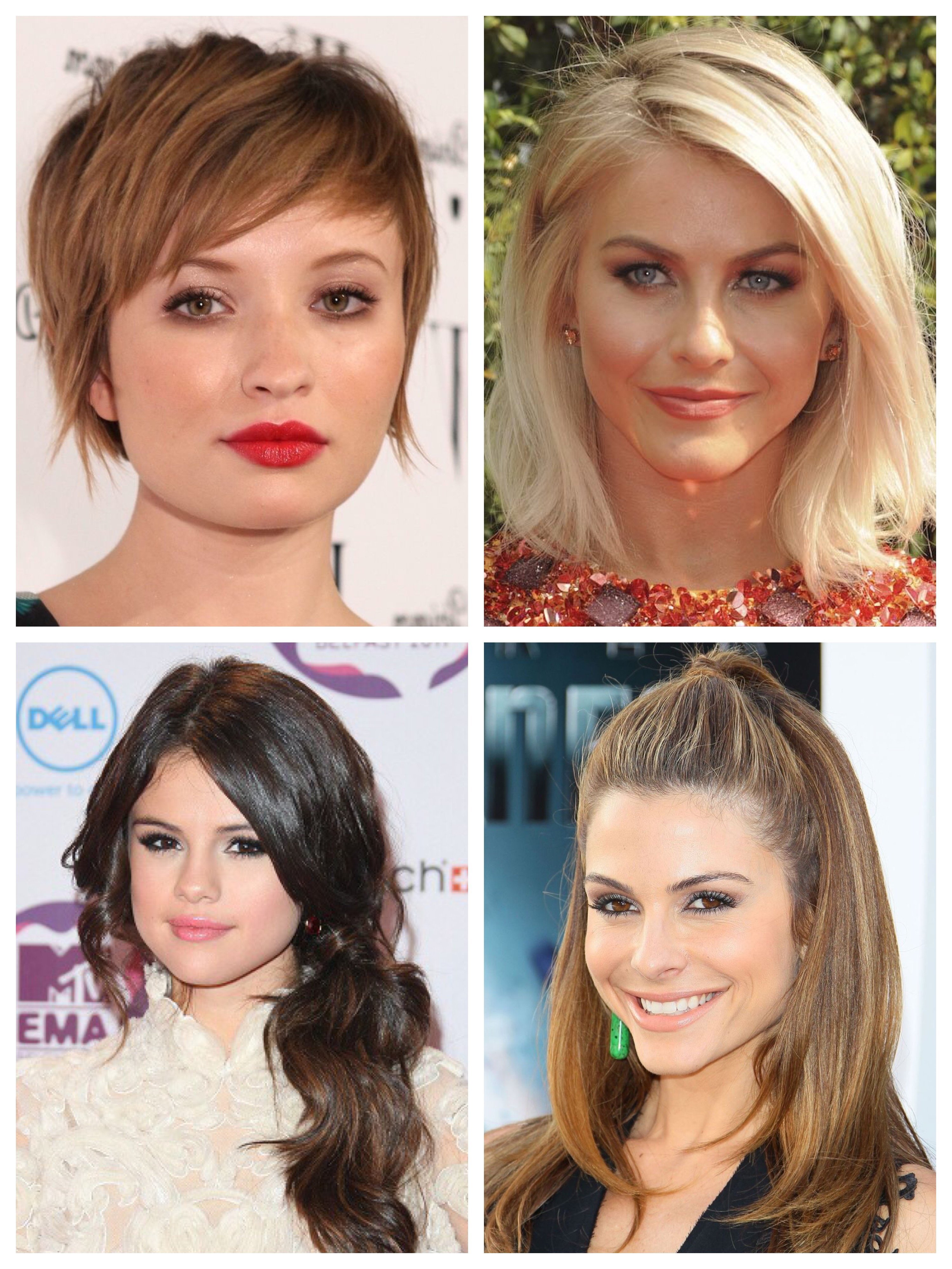 Стрижка типа каре на средние волосы с челкой для круглого лица