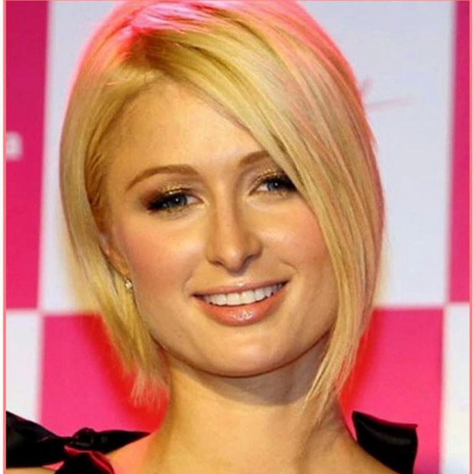 Стрижка Боб-каре на средние волосы без челки для круглого лица