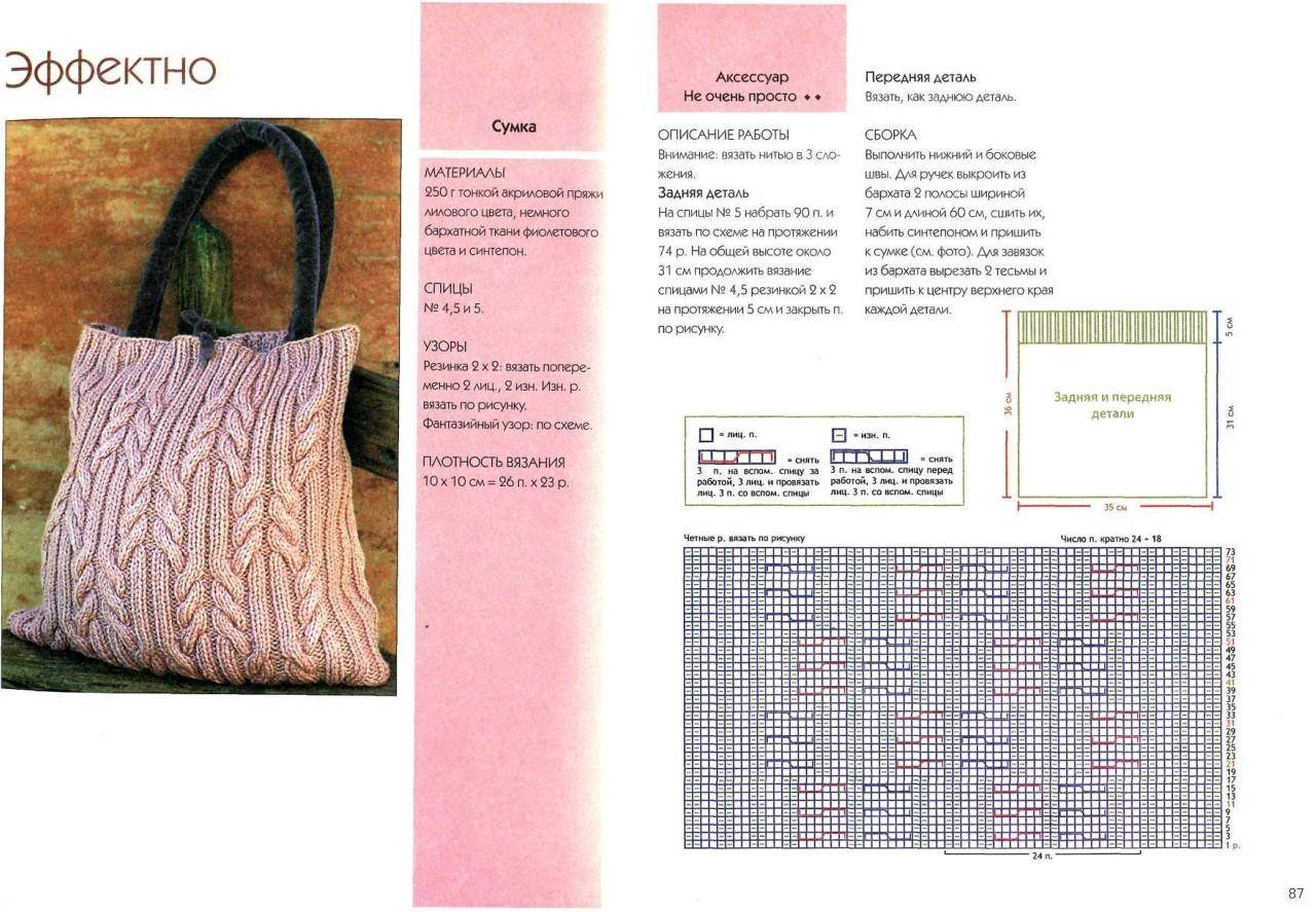 Вязание сумки спицами для женщин с описанием и схемами бесплатно
