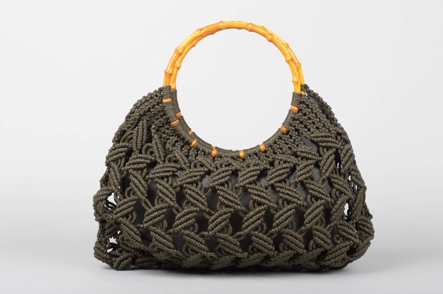 Сумка из трикотажной пряжи тоут с деревянными ручками
