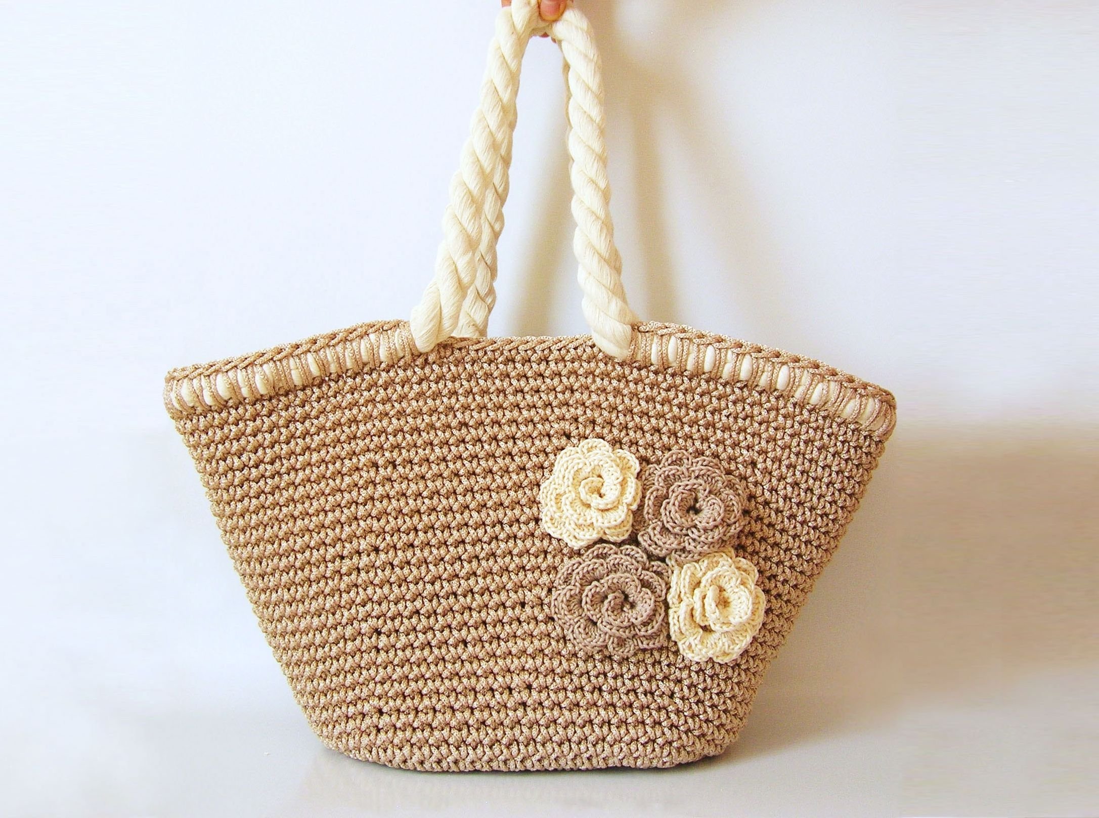 Вязаные сумки тоут из трикотажной пряжи крючком