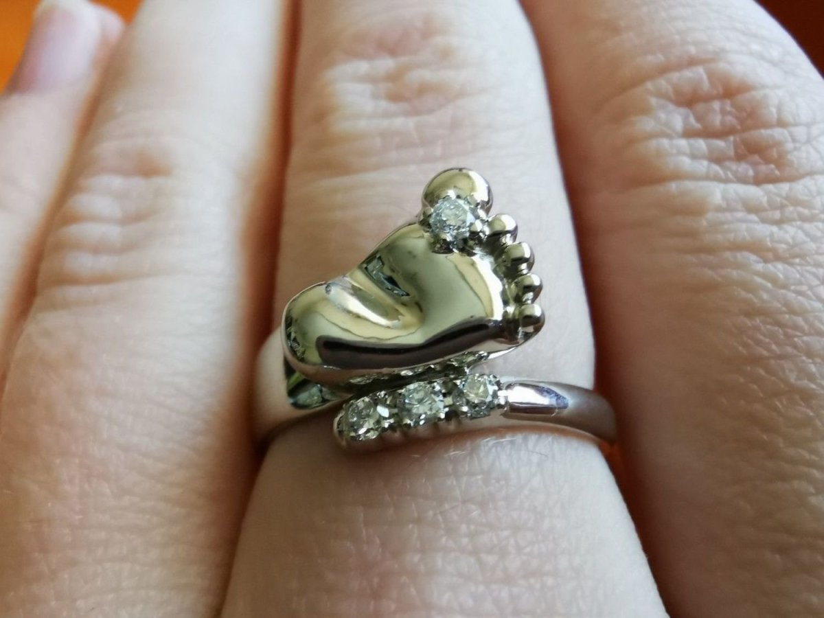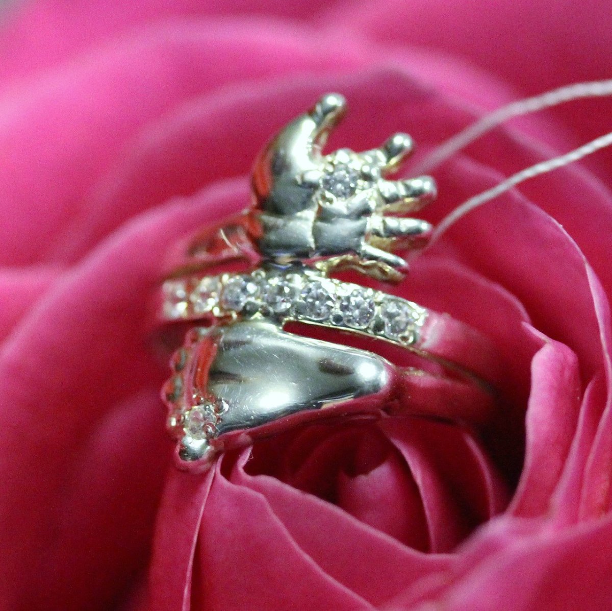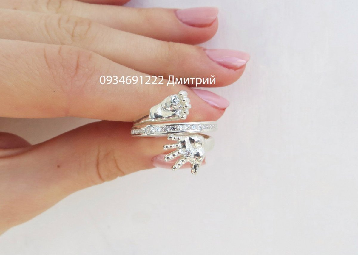 Серебро кольцо там надпись ребенка ножка есть у пальца