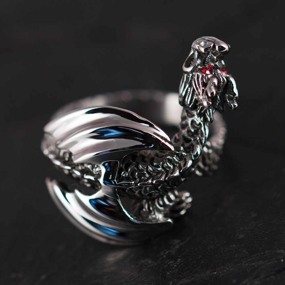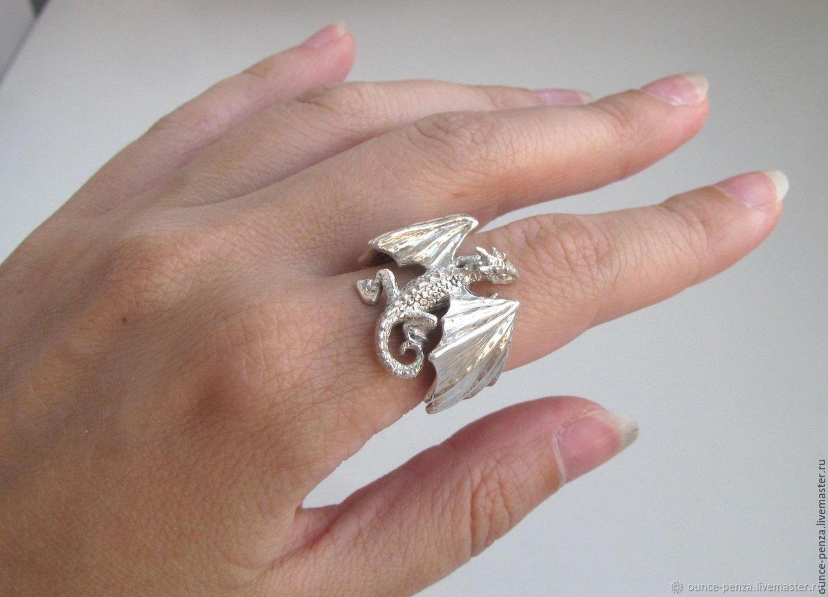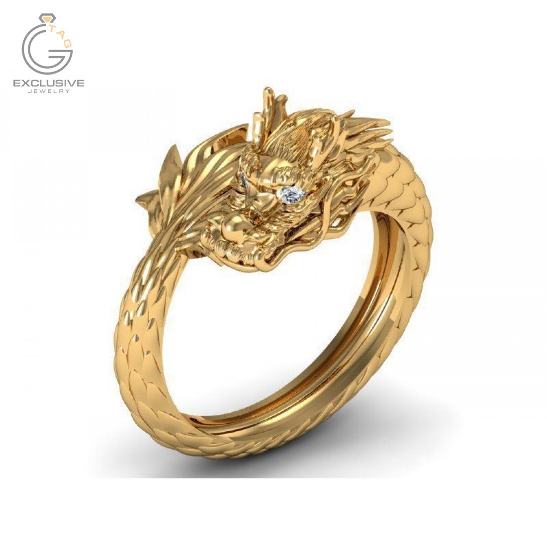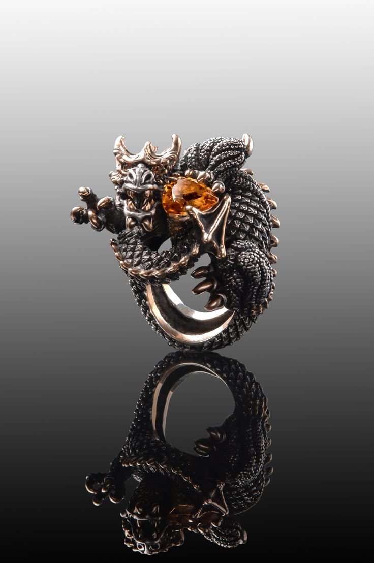 Кольцо 01-5277-00-000-1110-65 "дракон" из красного золота, платина Кострома