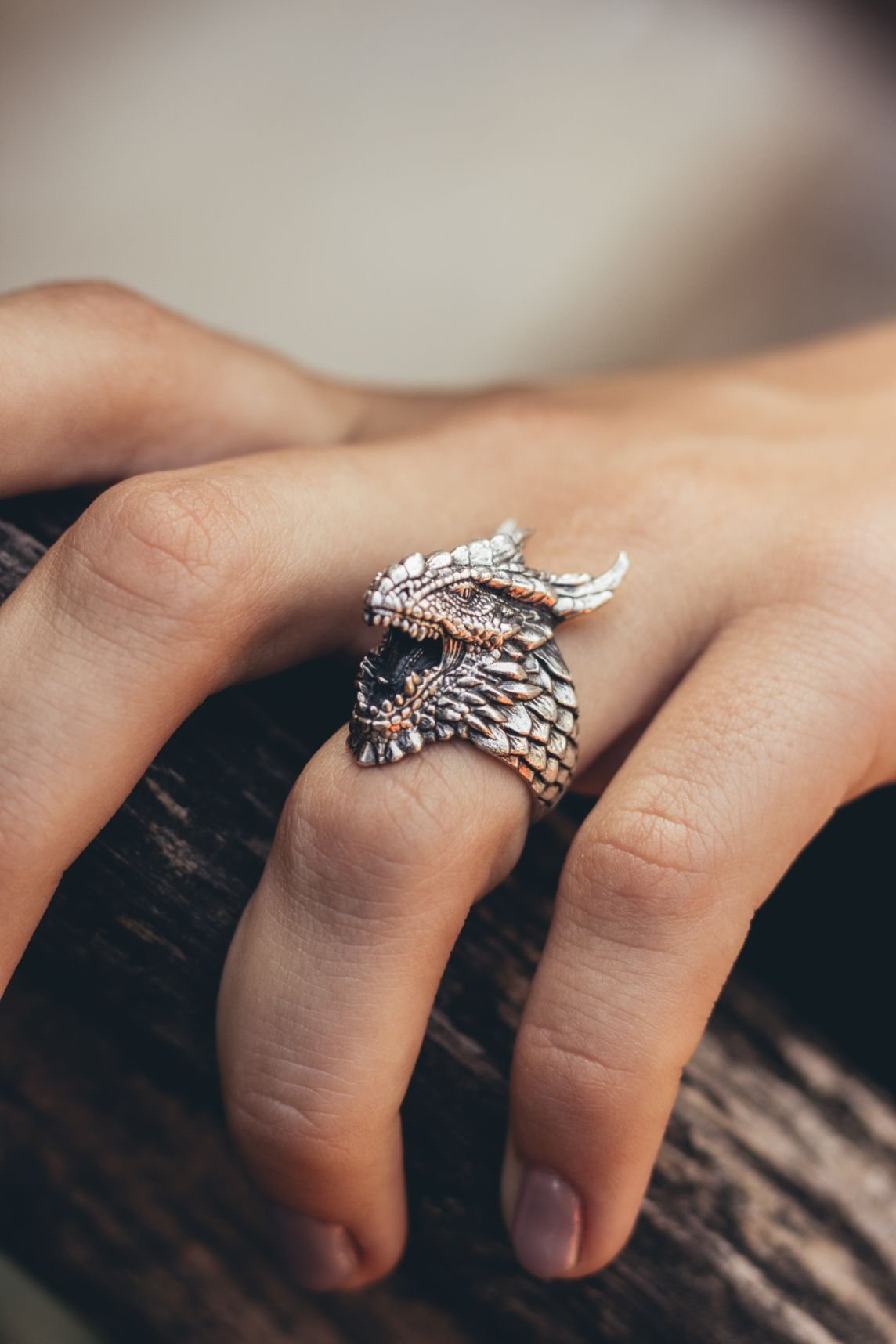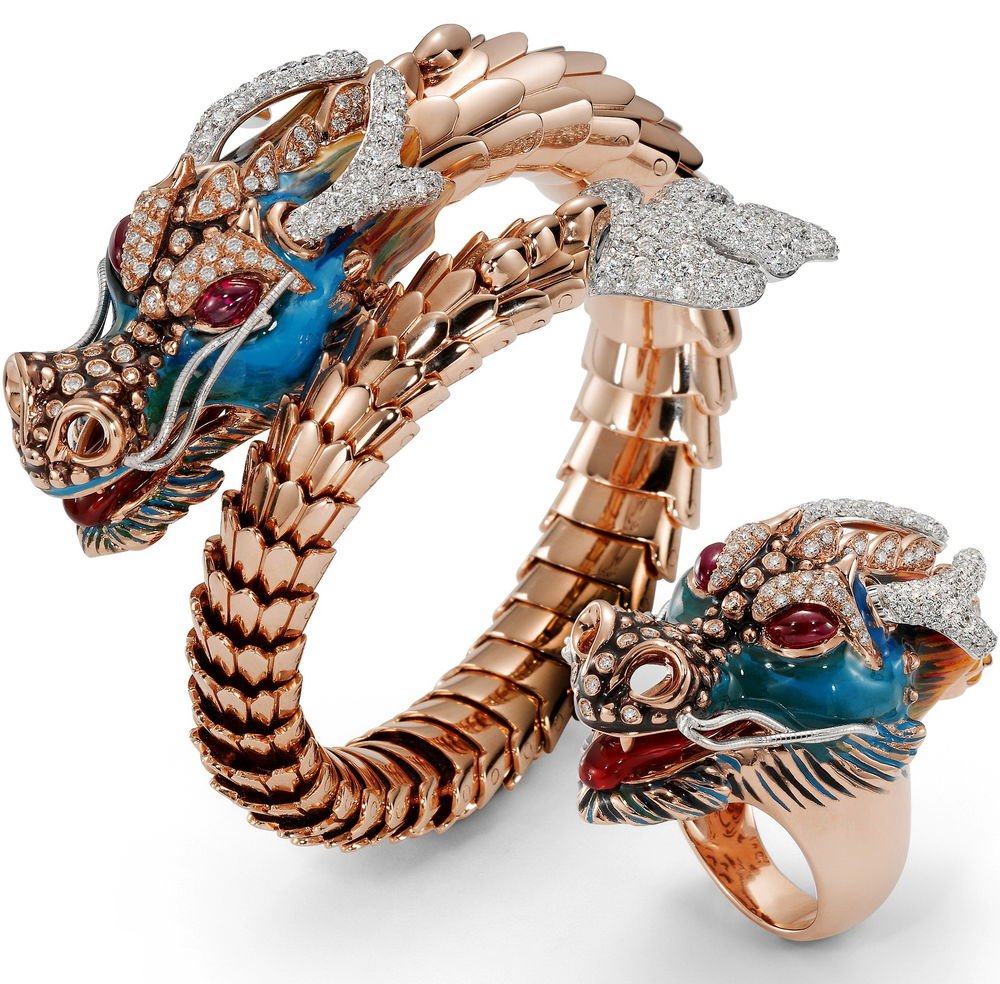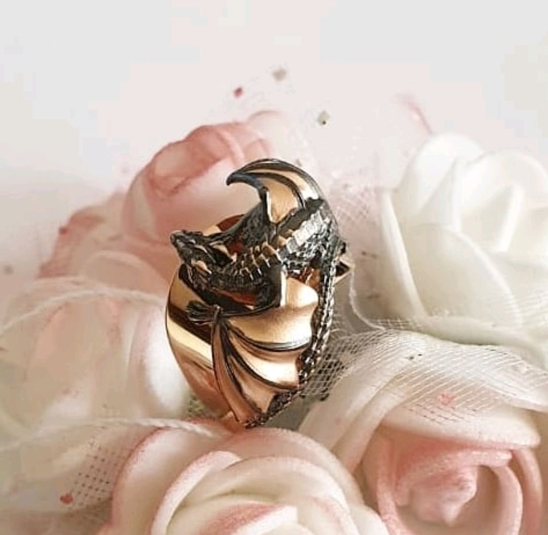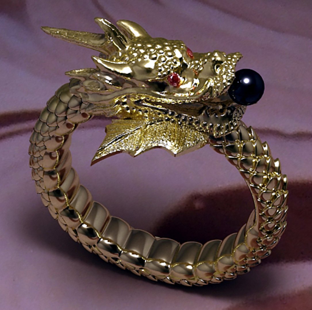 Кольцо 01-5277-00-000-1110-65 "дракон" из красного золота, платина Кострома