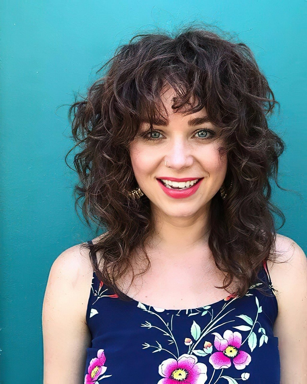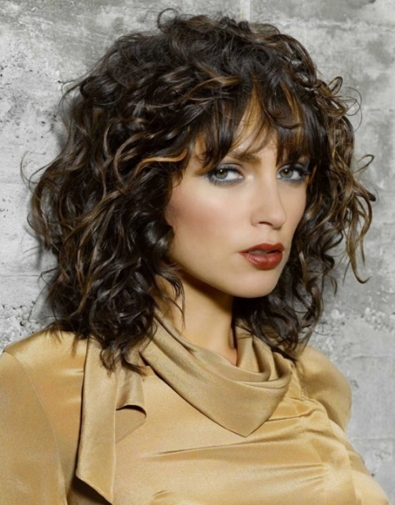 Стрижка Каскад на средние волосы с челкой 2022 на волнистые волосы