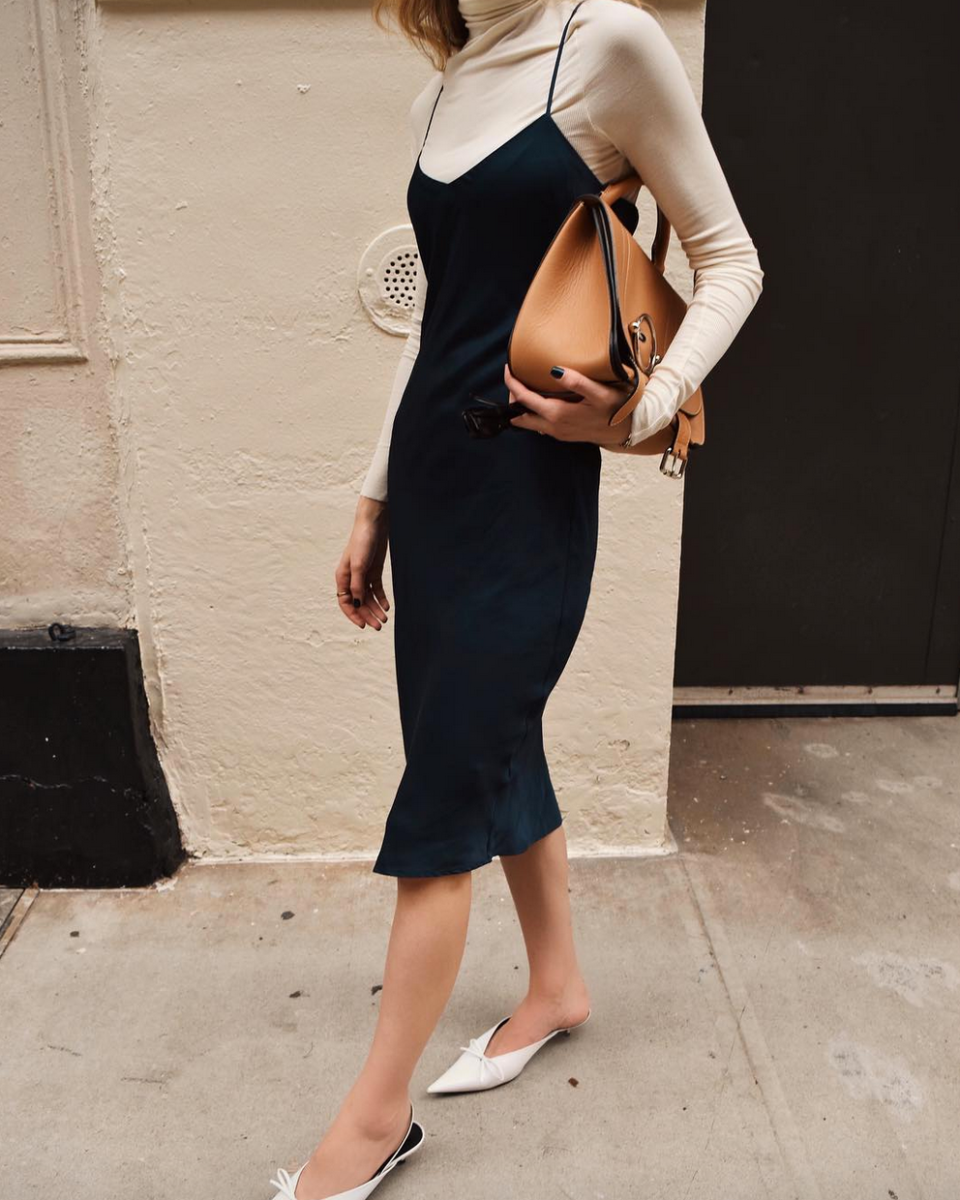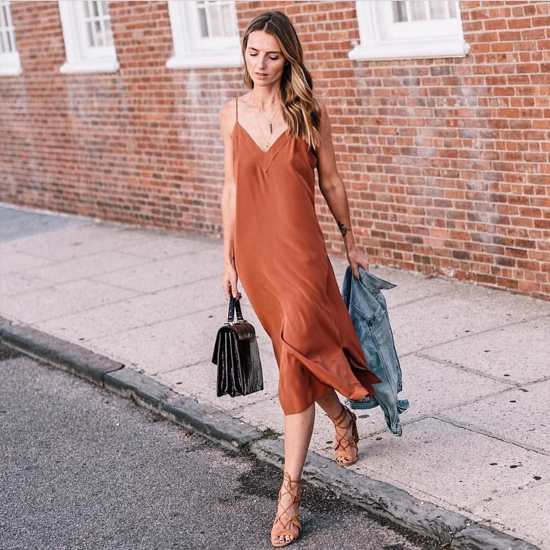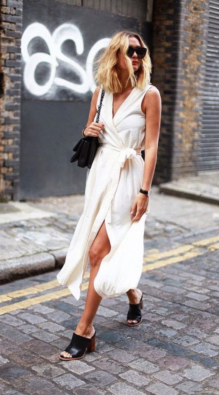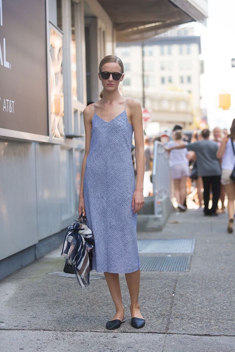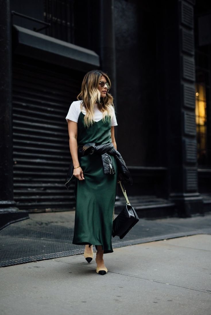 Платье комбинация и мюли стрит стайл