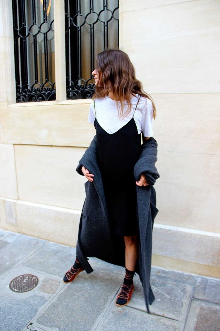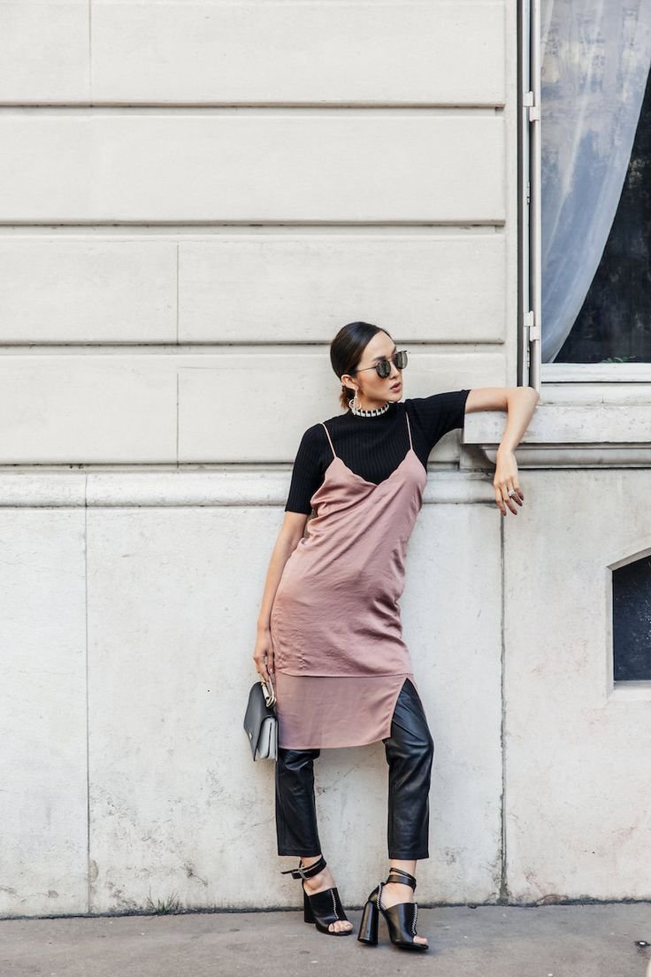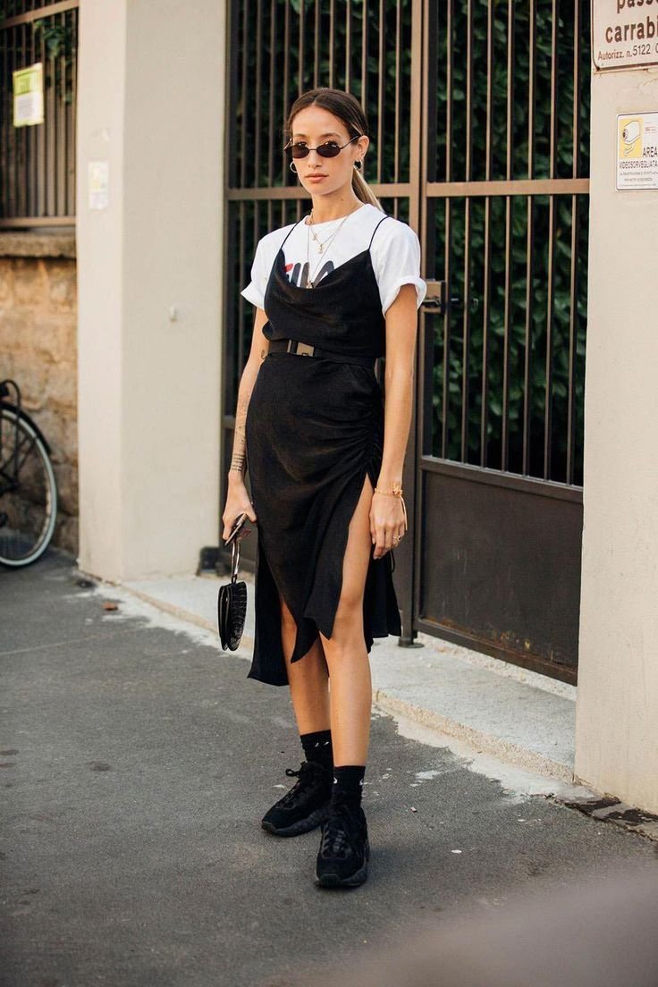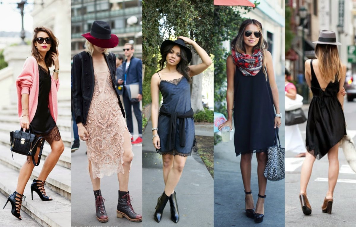 Черное платье комбинация стрит стайл