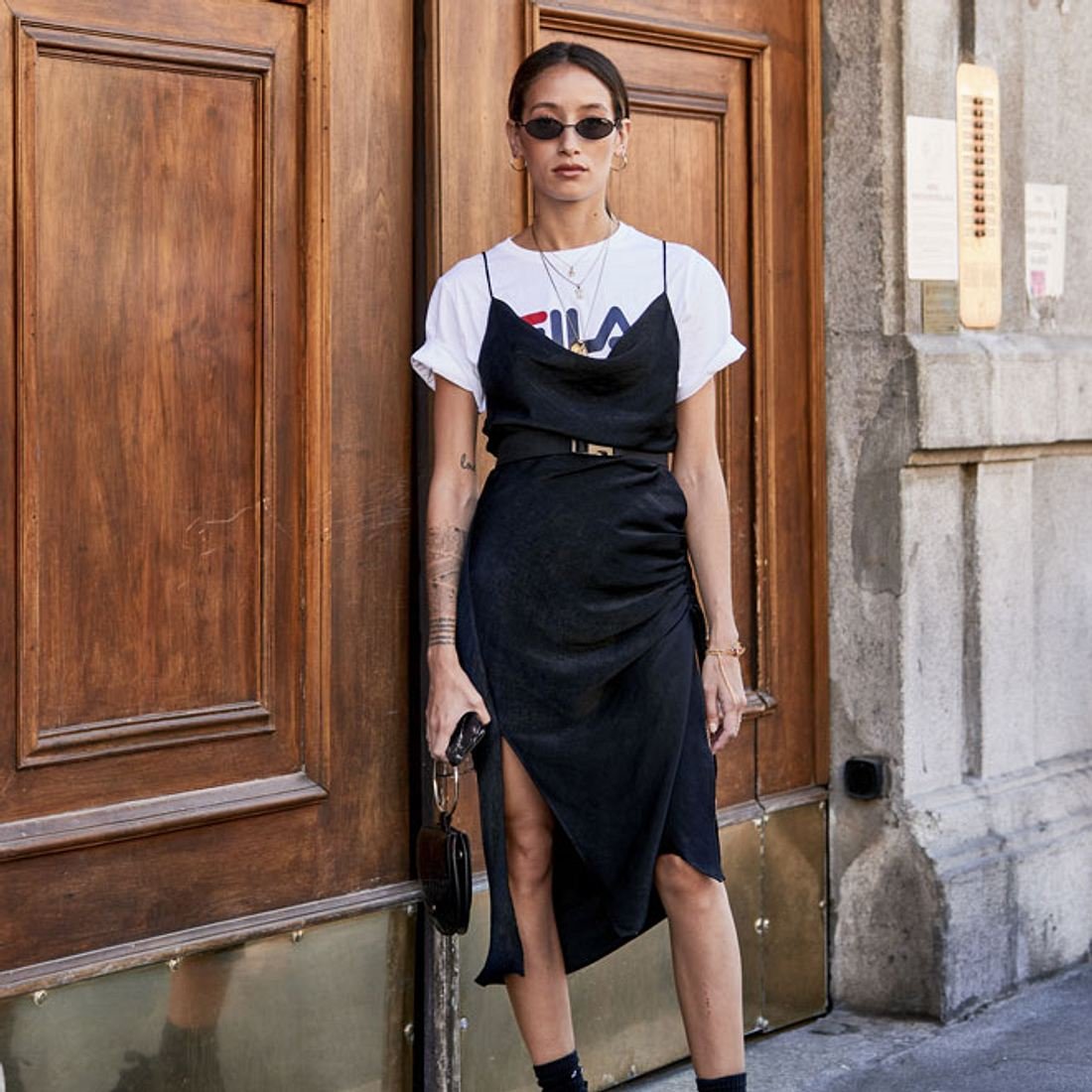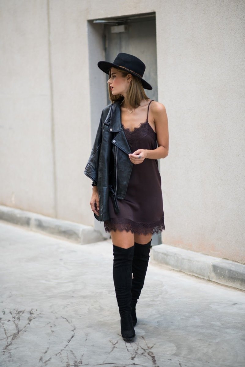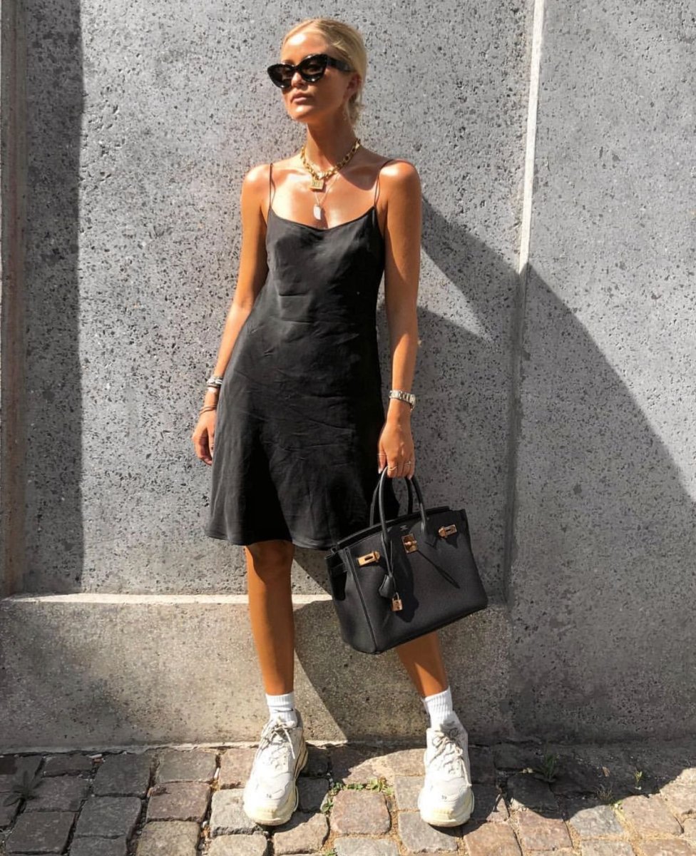 Черное платье комбинация стрит стайл