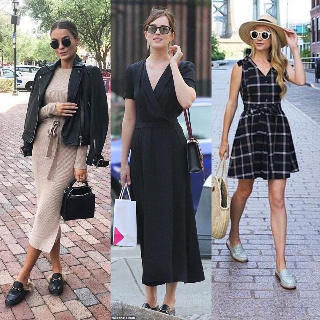 Платье с лоферами образы