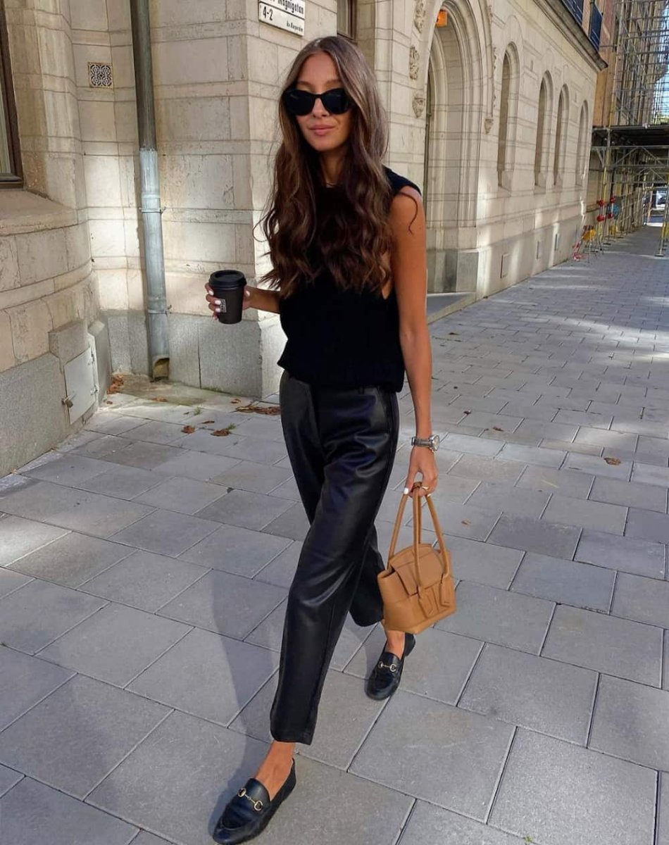 Кожаные брюки с лоферами