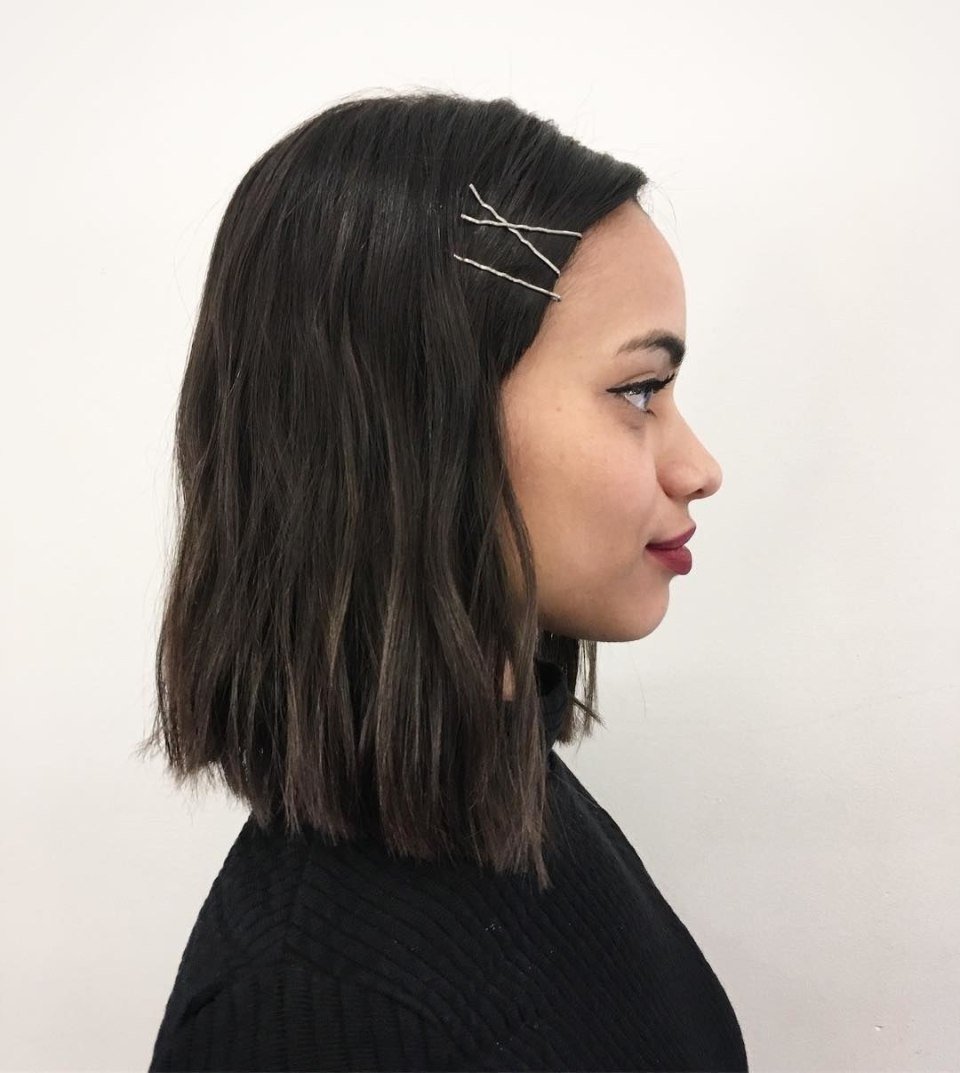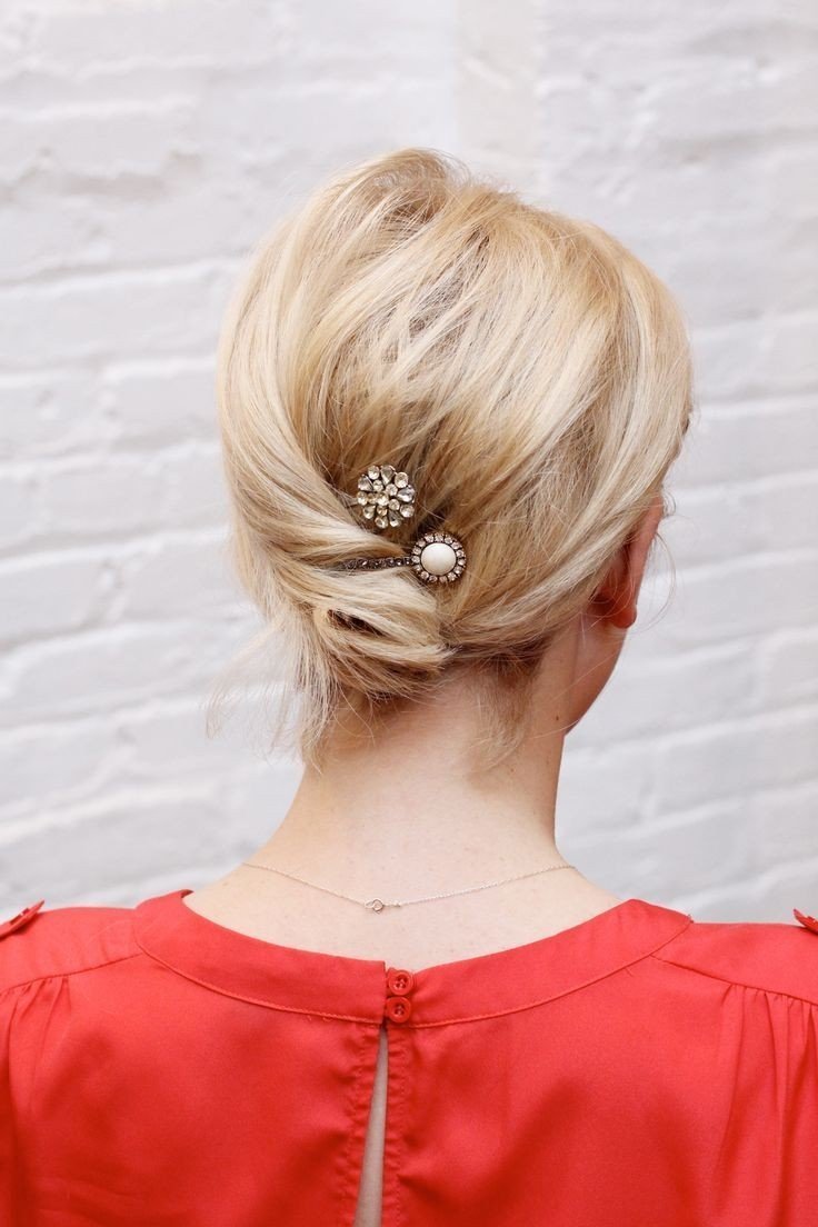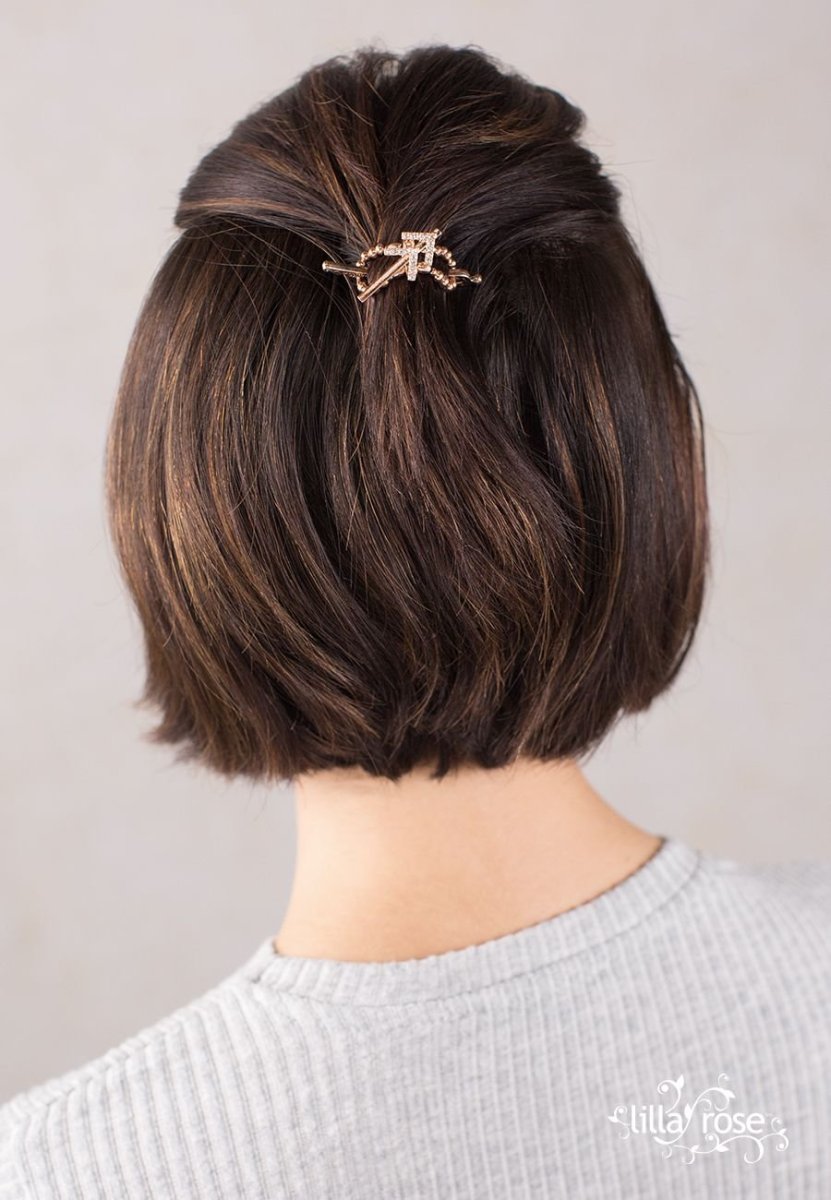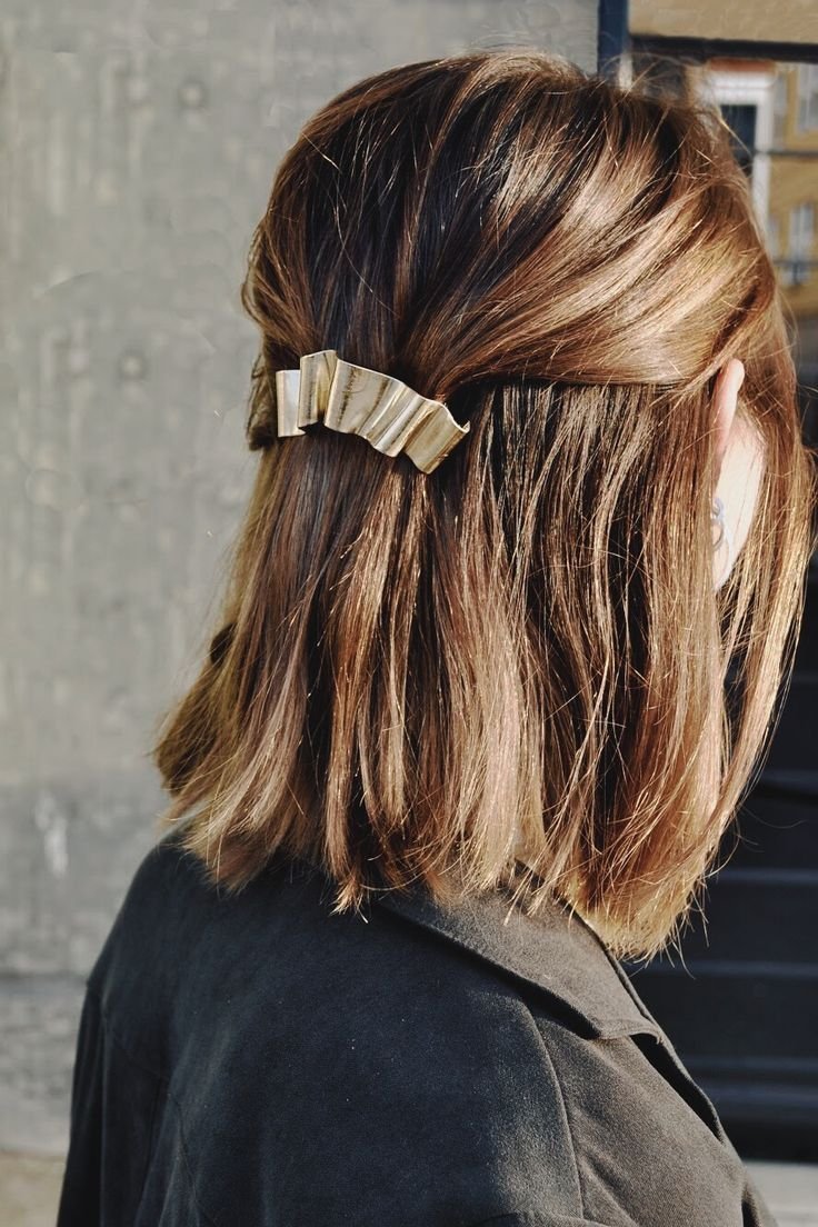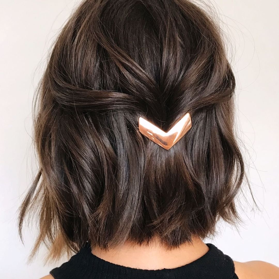 Оригинальная прическа на гладкие волосы на средние с заколкой