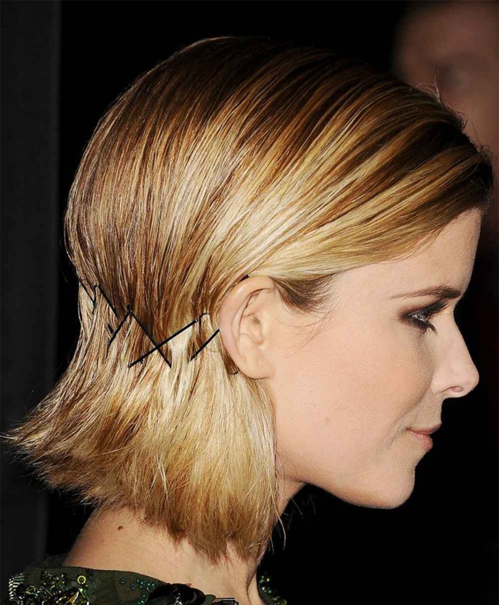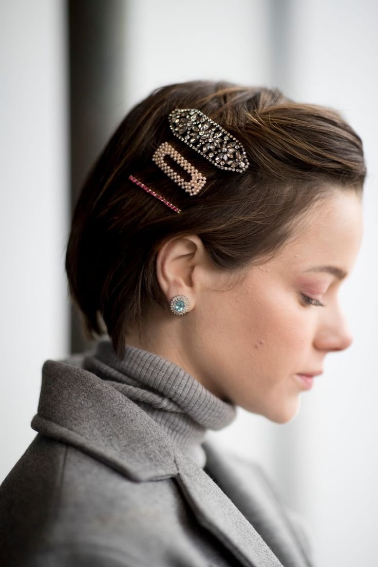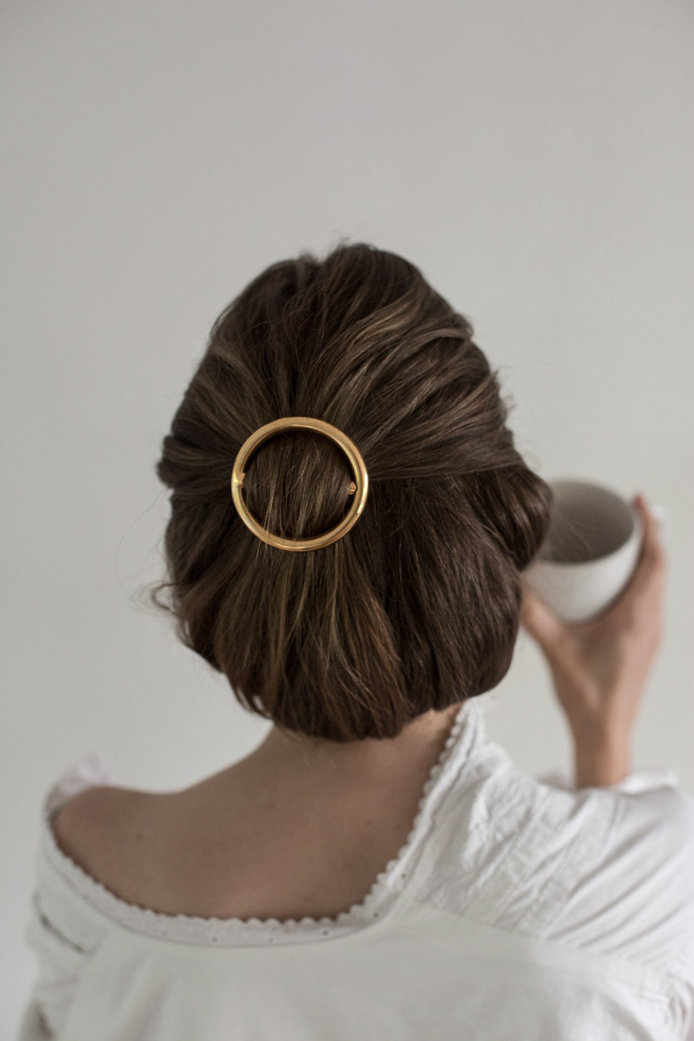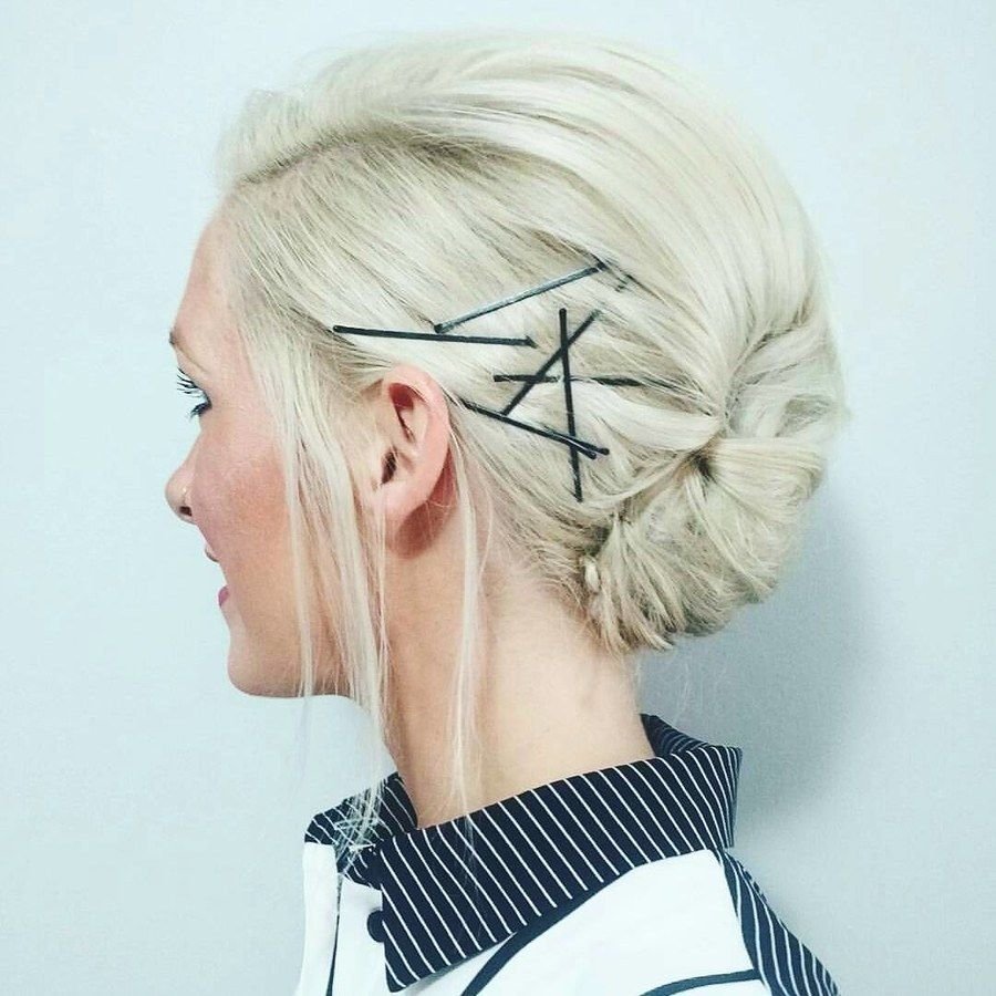 Оригинальная прическа на гладкие волосы на средние с заколкой