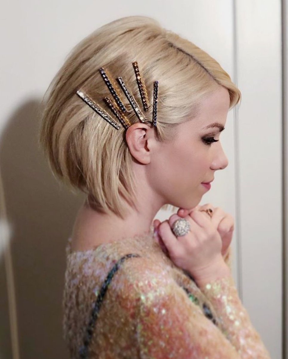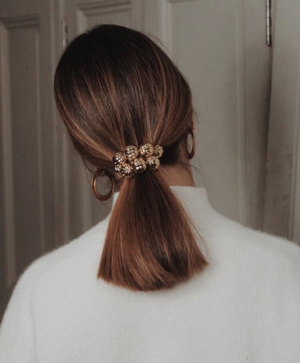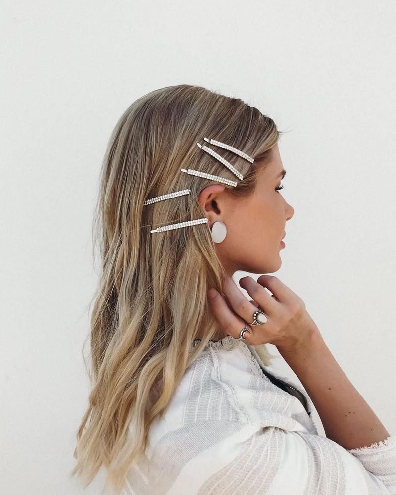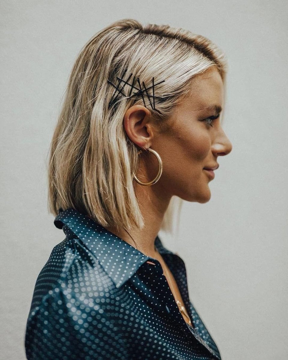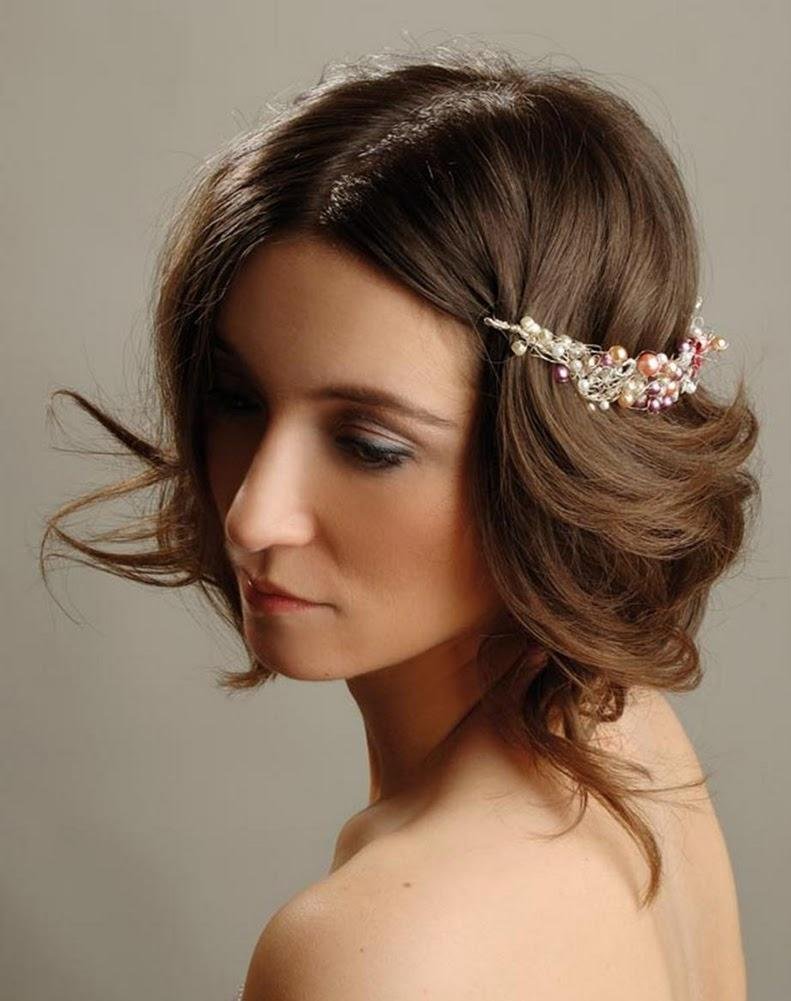 Оригинальная прическа на гладкие волосы на средние с заколкой