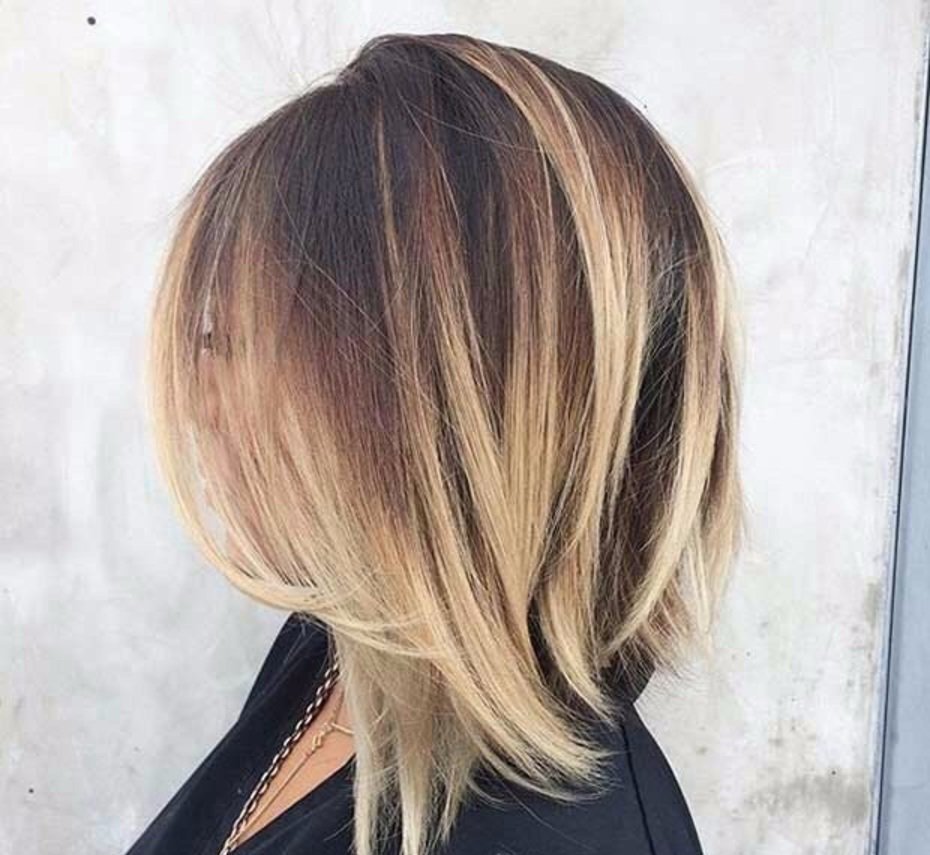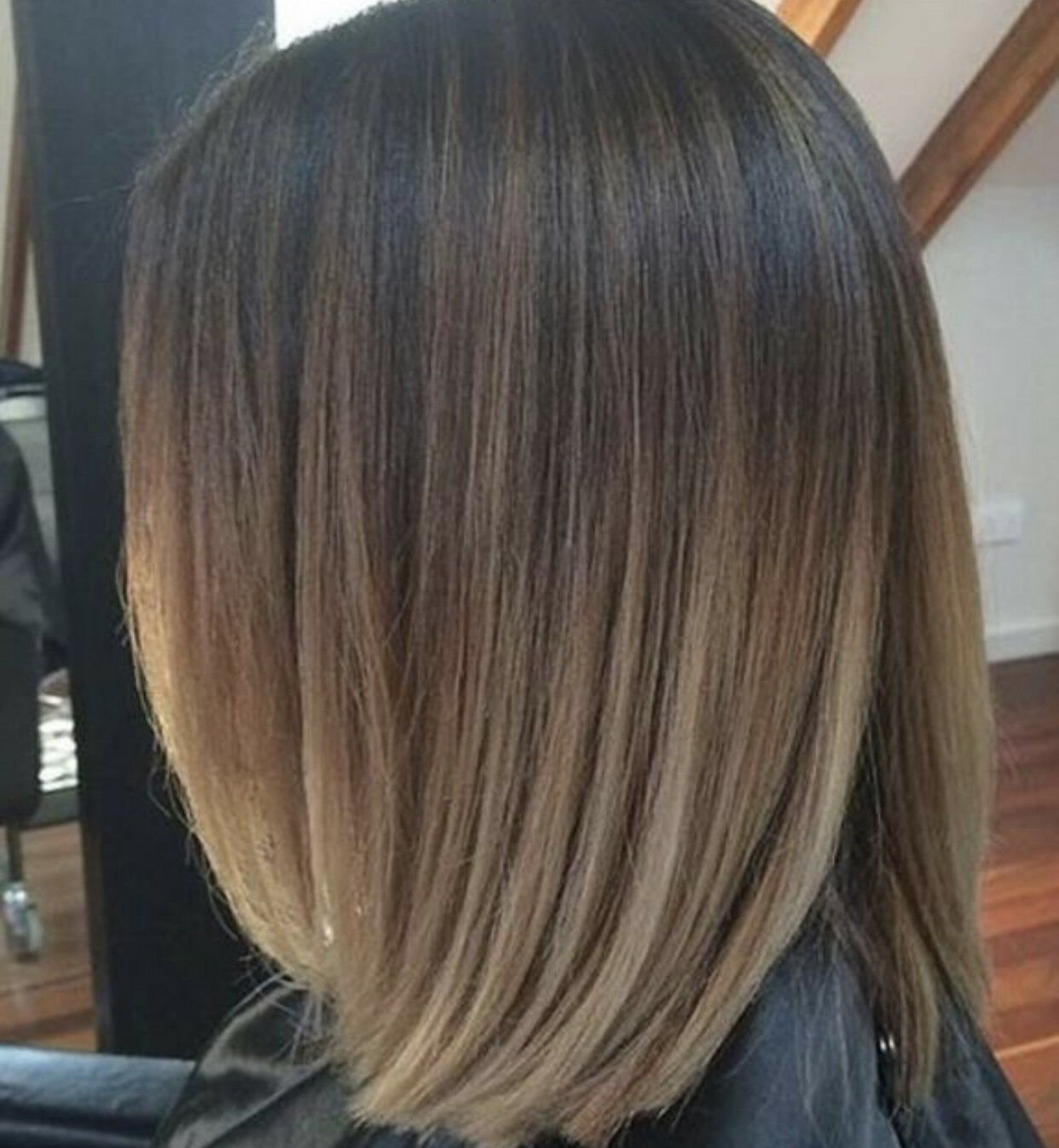 Удлиненное каре с окрашиванием шатуш на темные волосы