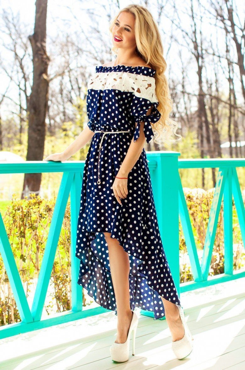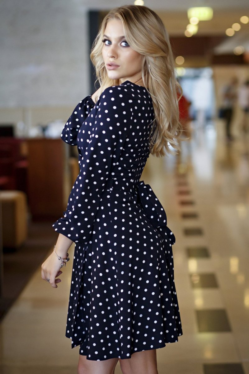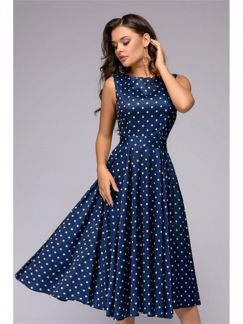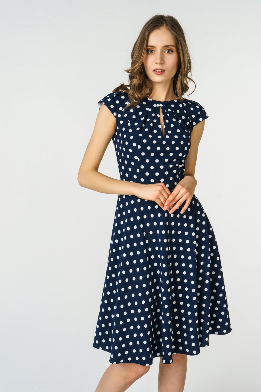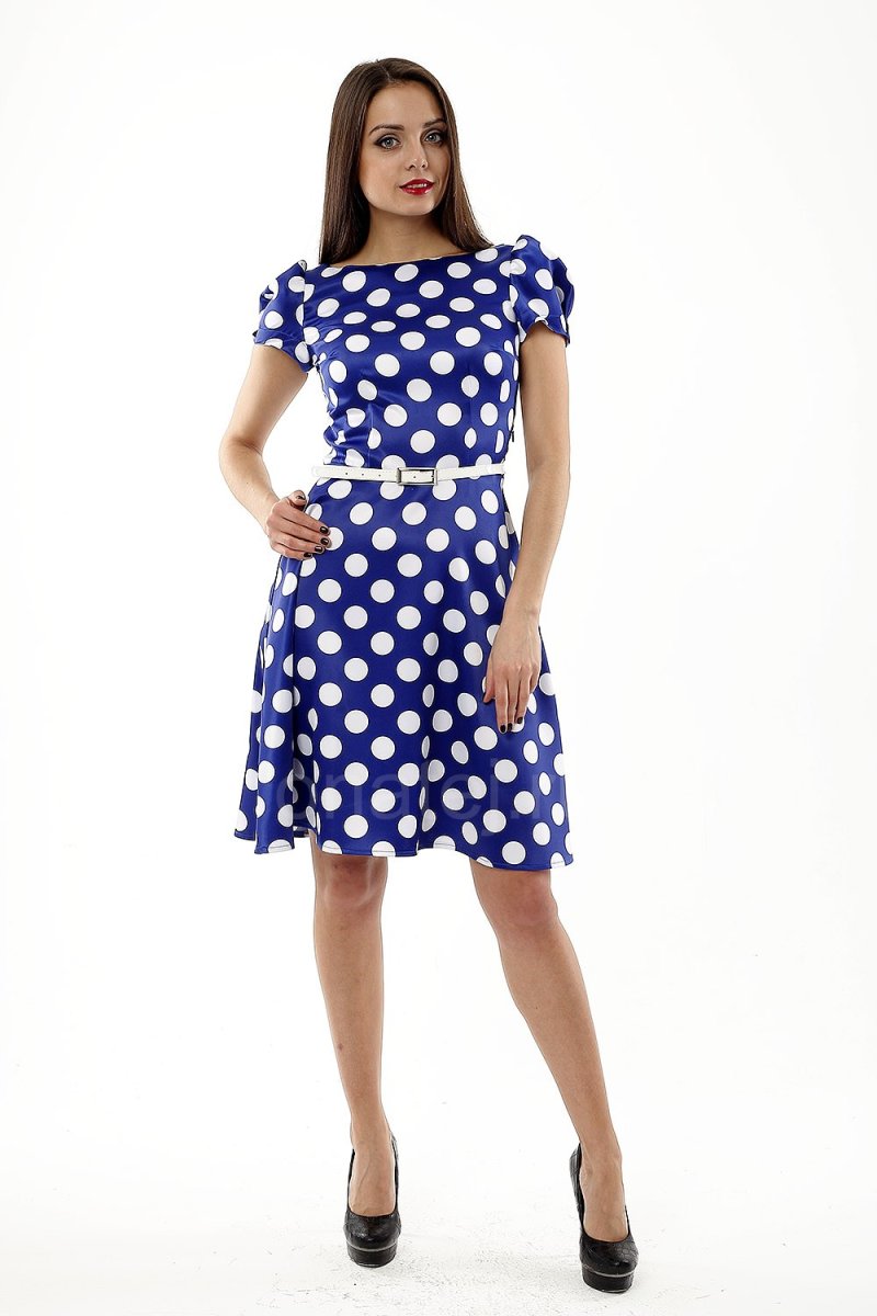 Синее платье в белый горошек