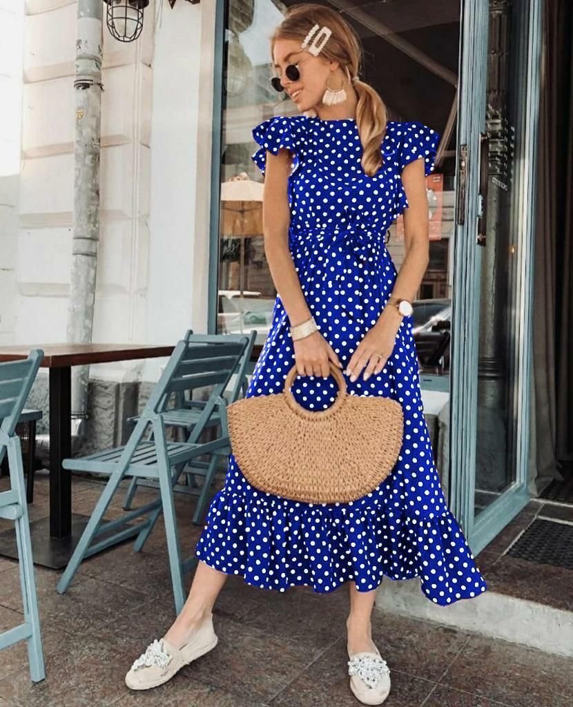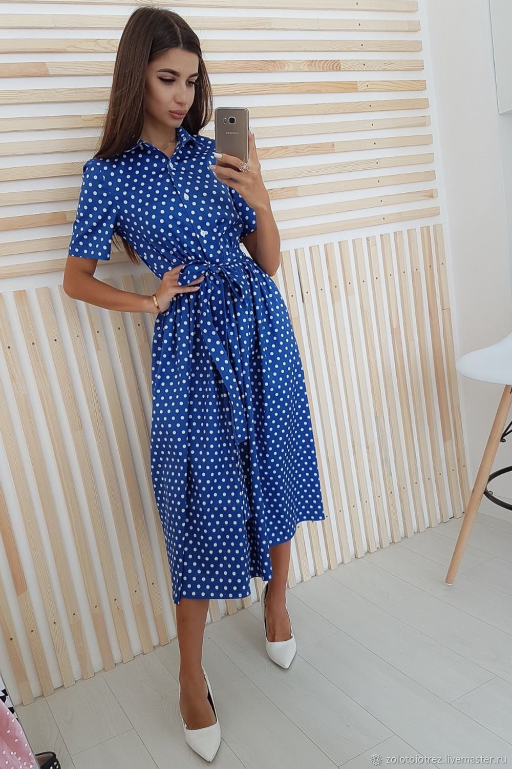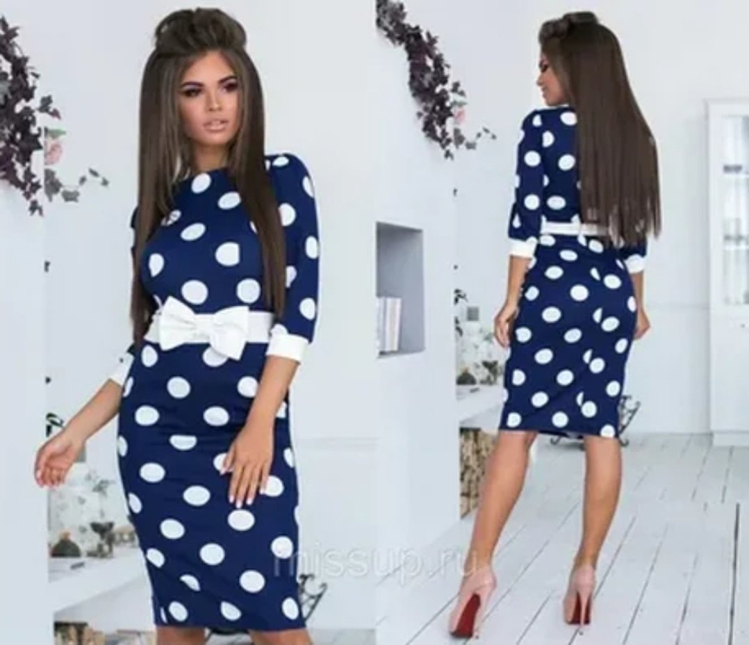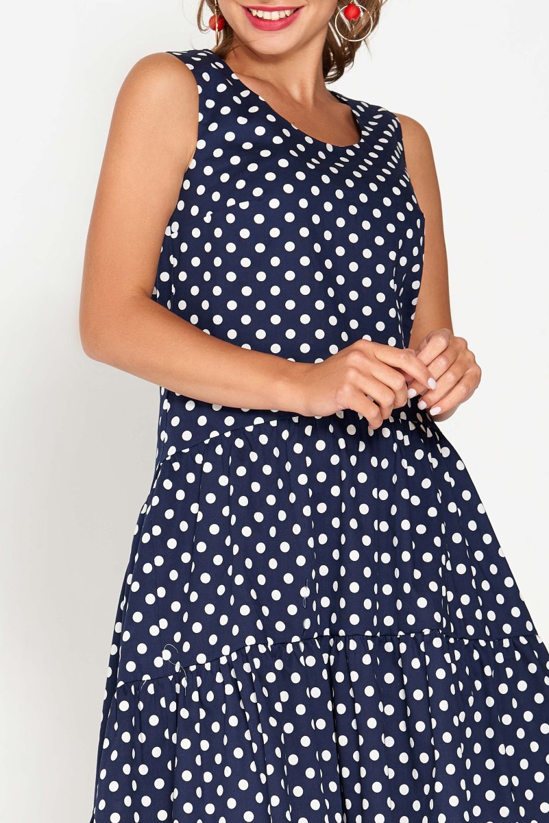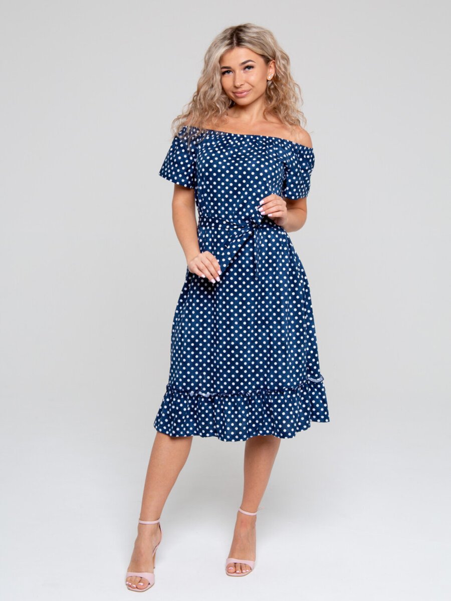 Синее платье в белый горошек