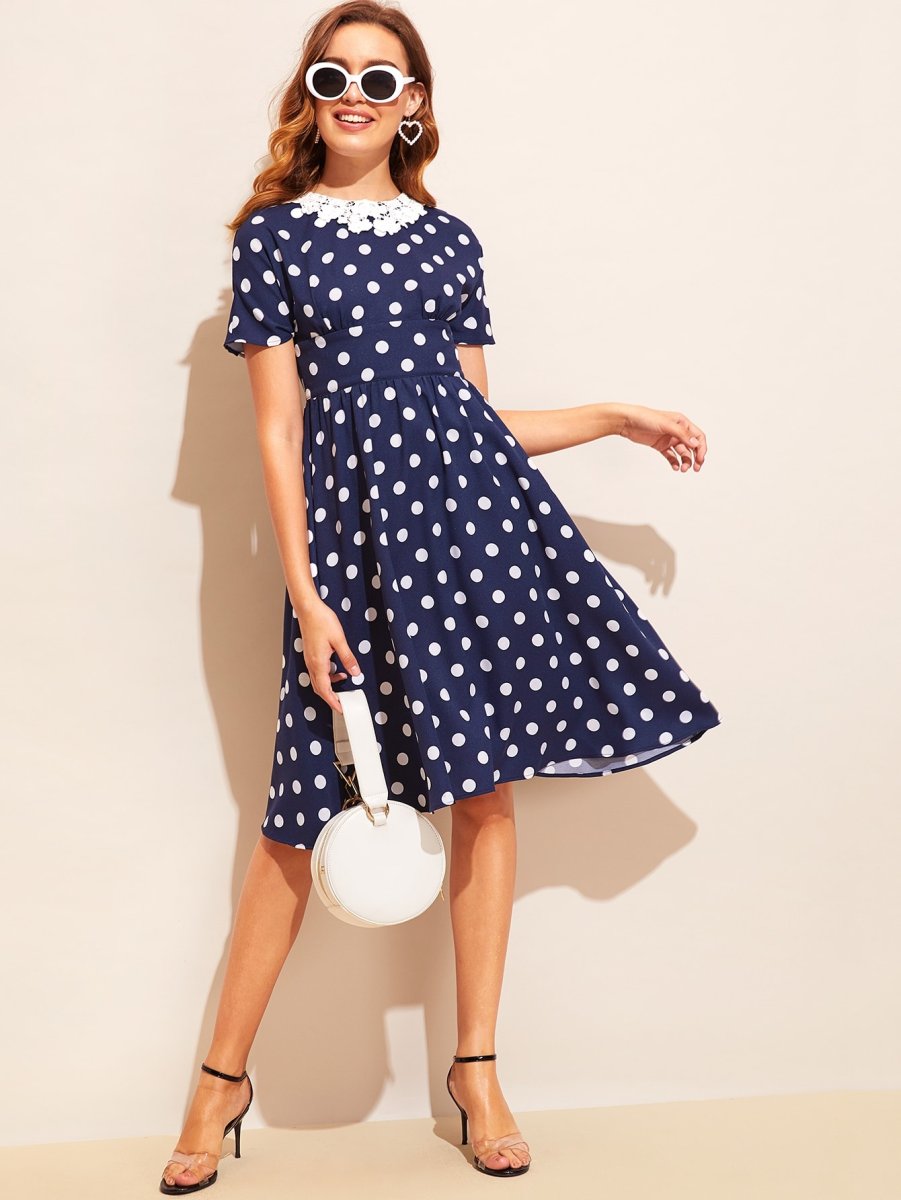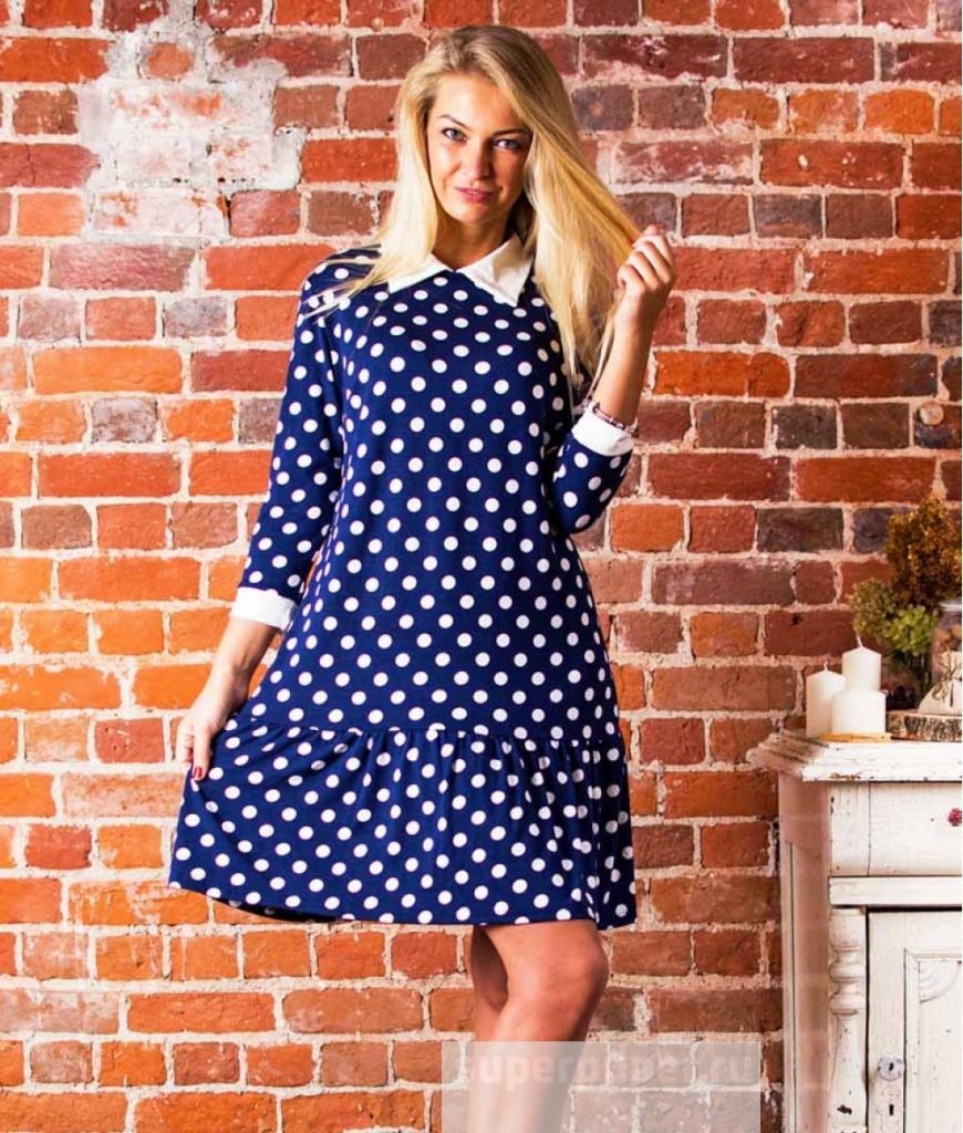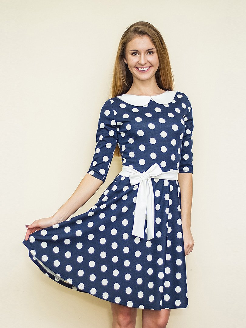 Платье в горошек с белым воротником