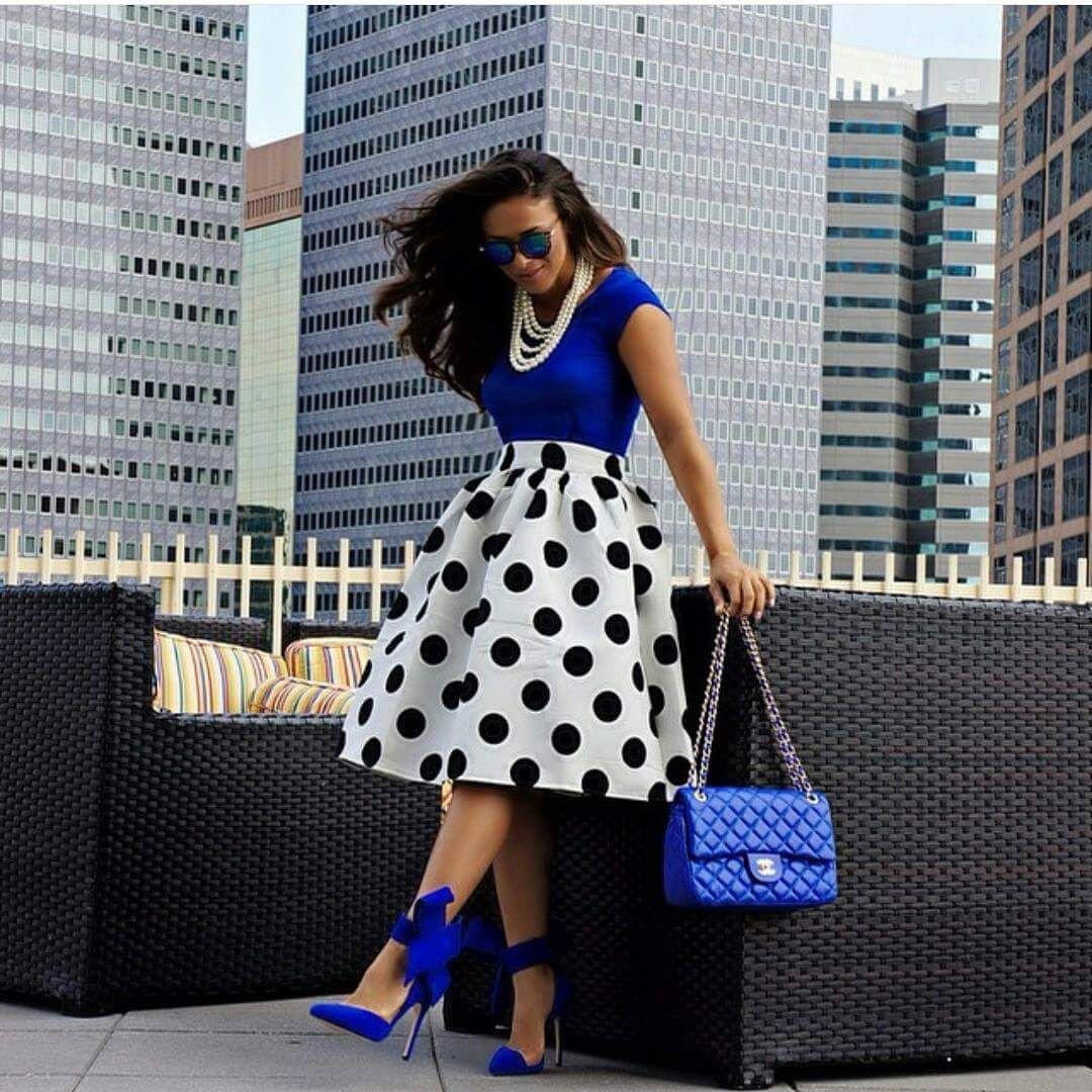 Обувь под синее платье в горошек