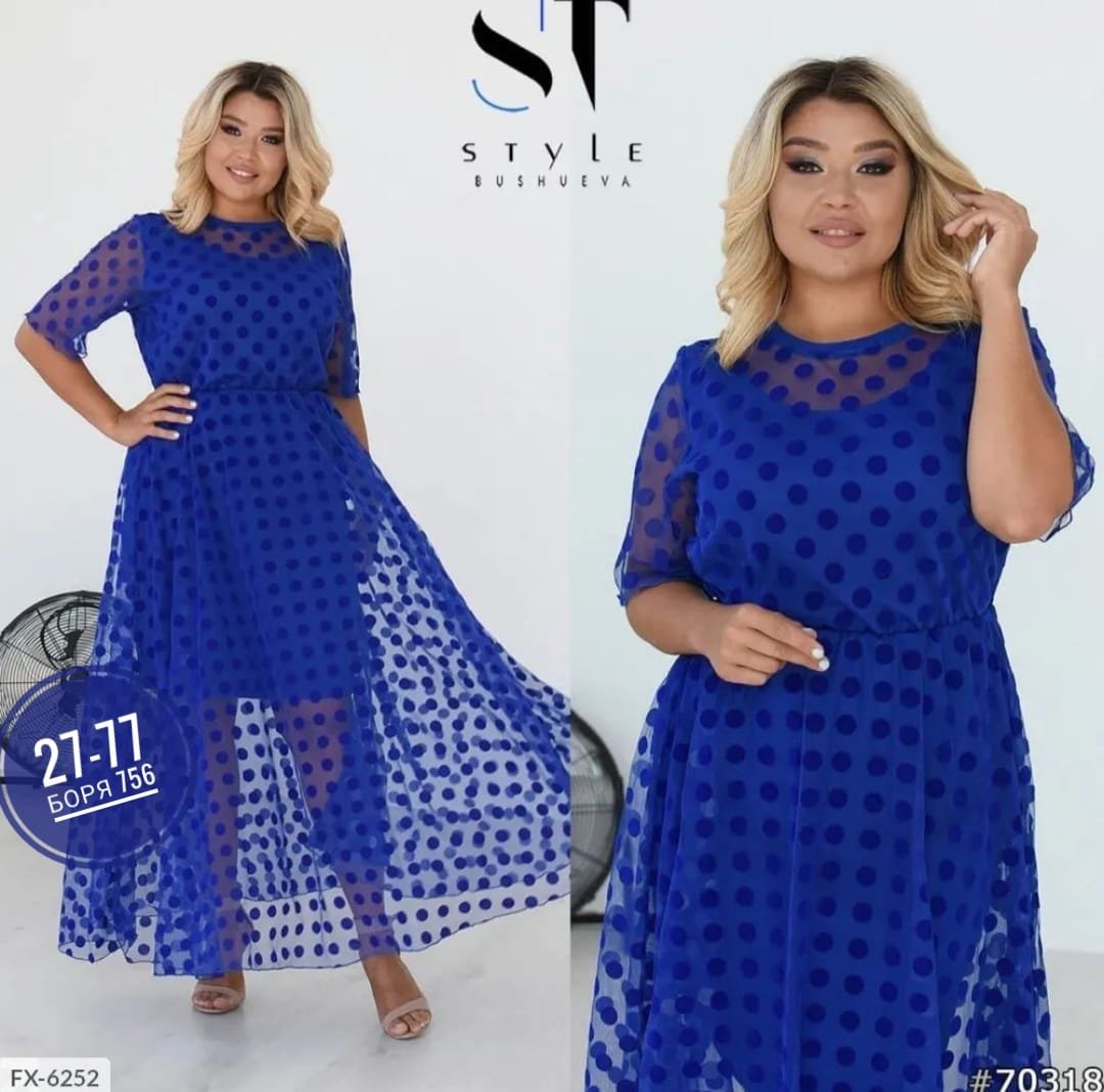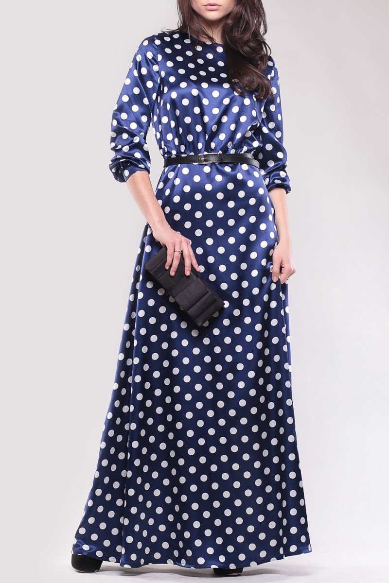 Платье синее в горошек длинное