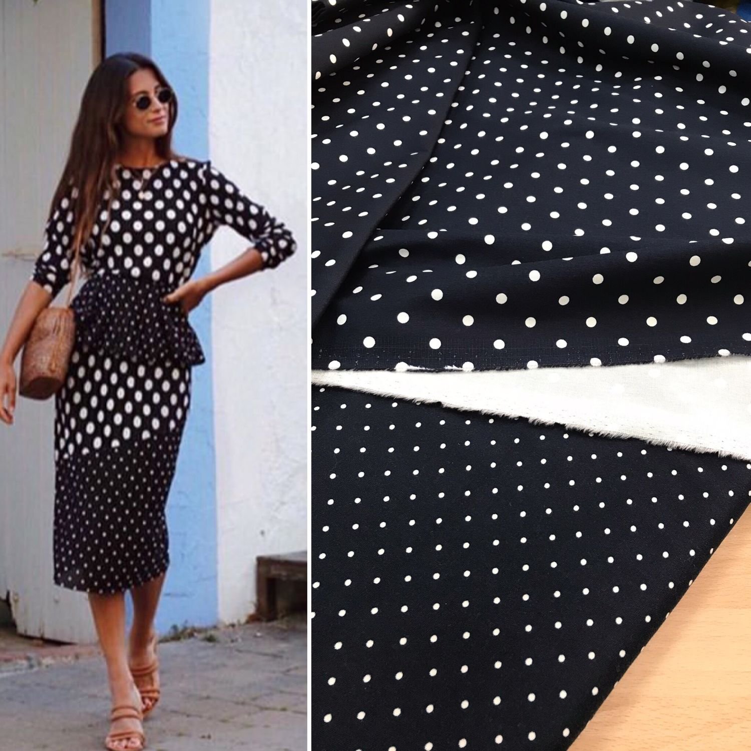 Черное платье в горошек