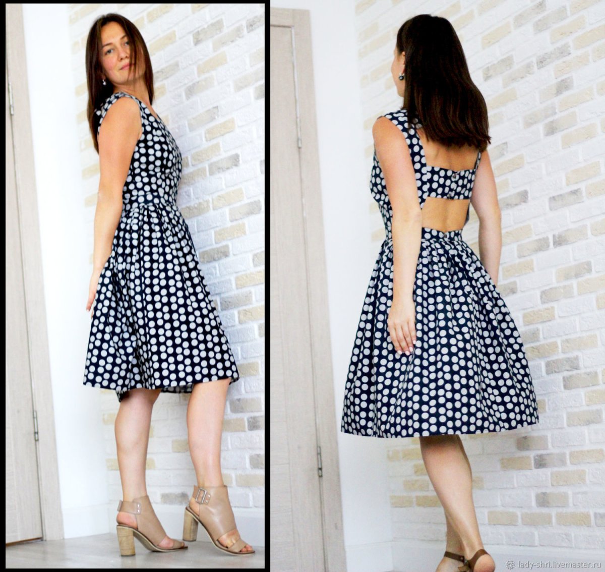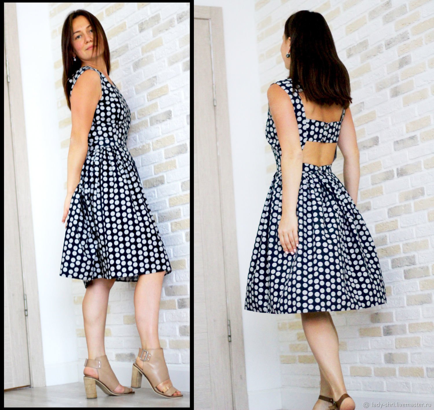 Платье в горошек с открытой спиной