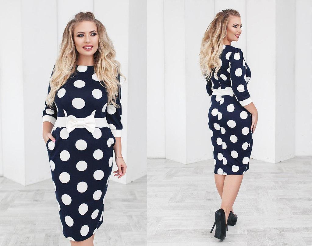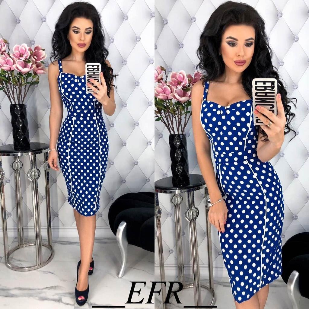 Платье футляр горошек синее