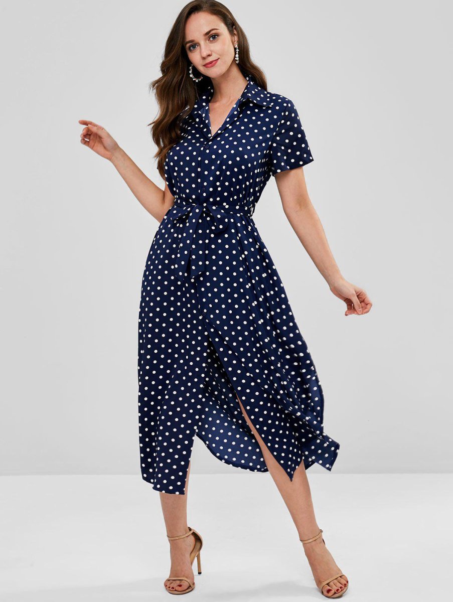 Платье рубашка в горошек длинное