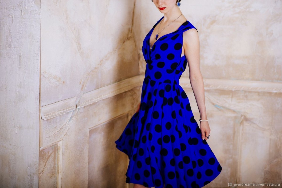 Синее платье в горох