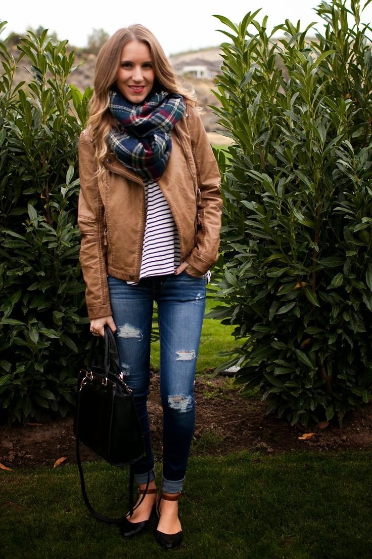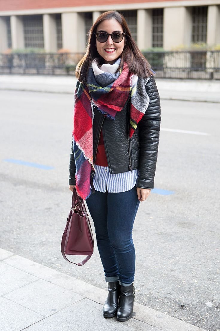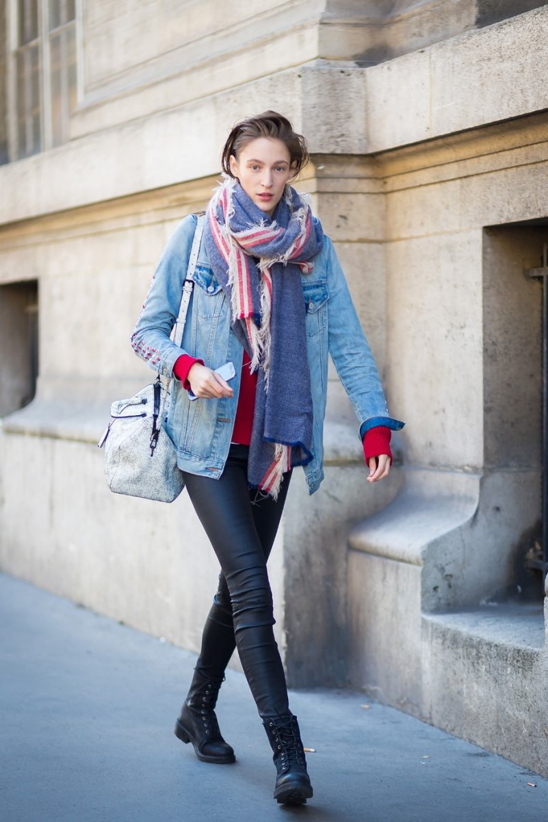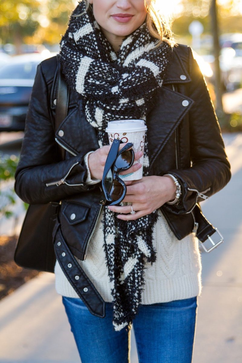 Шарф с кожаной курткой