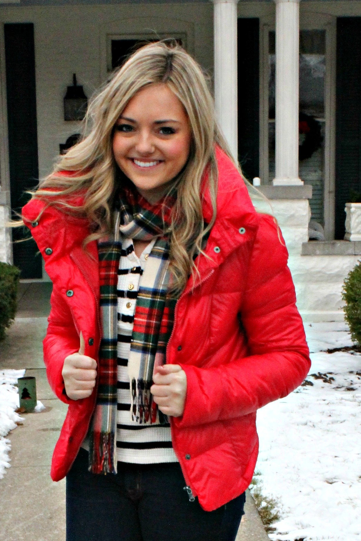 Блондинка в красной куртке