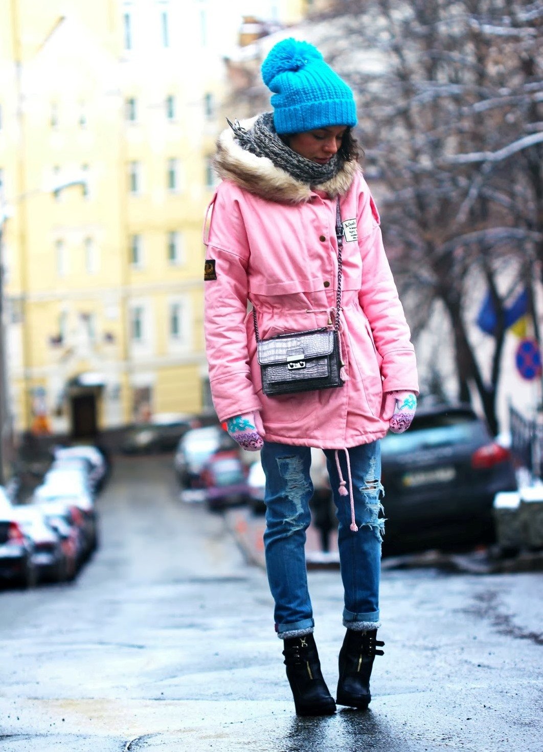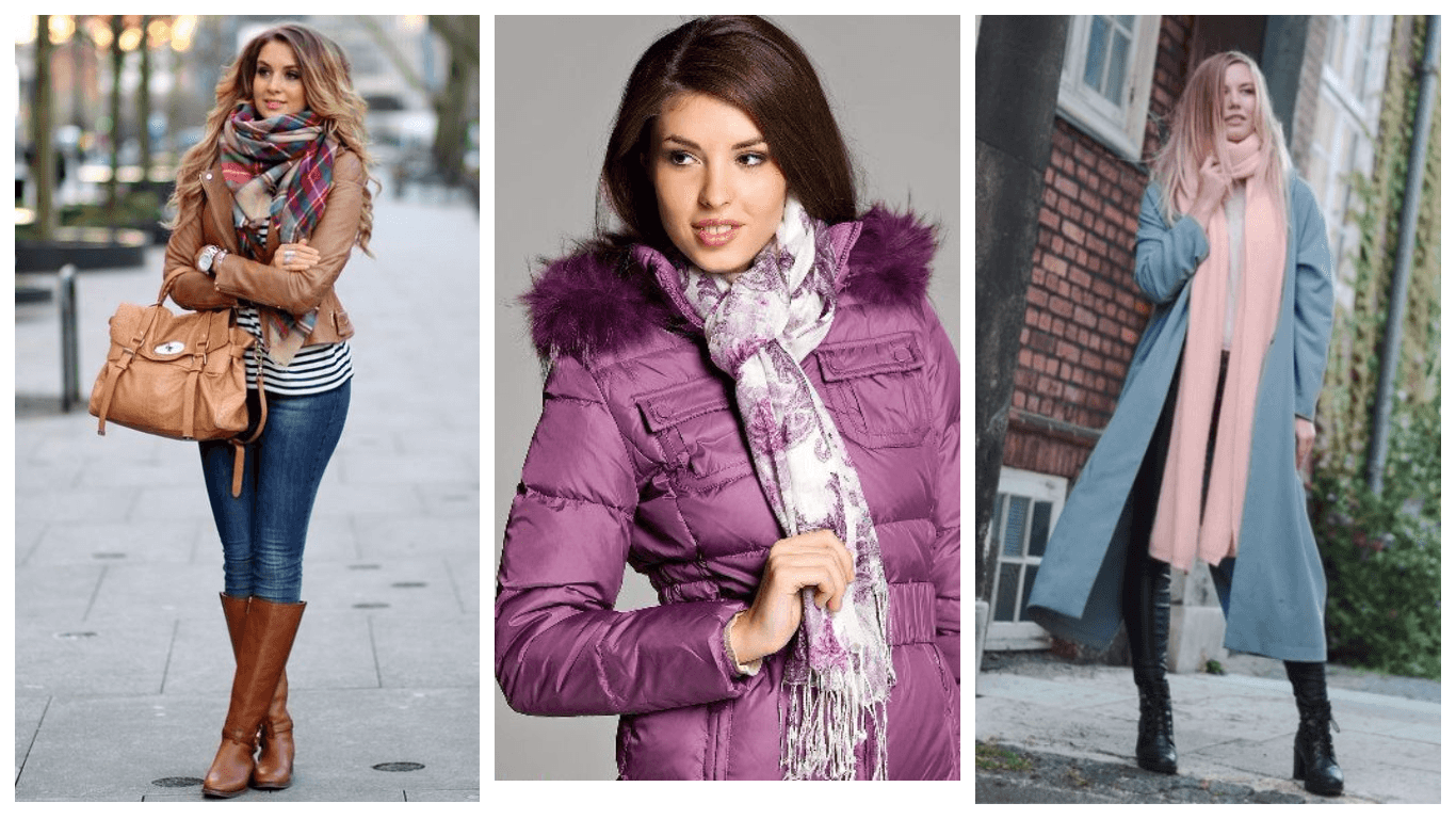 Модные пуховики и шарфы