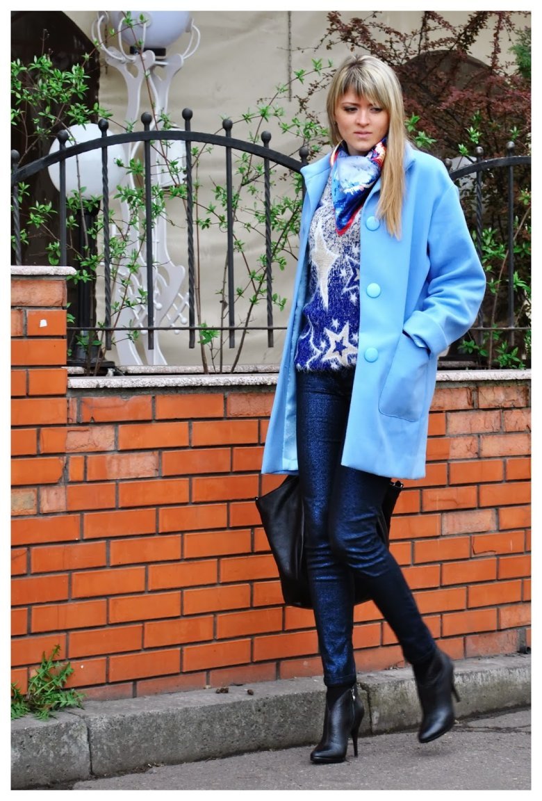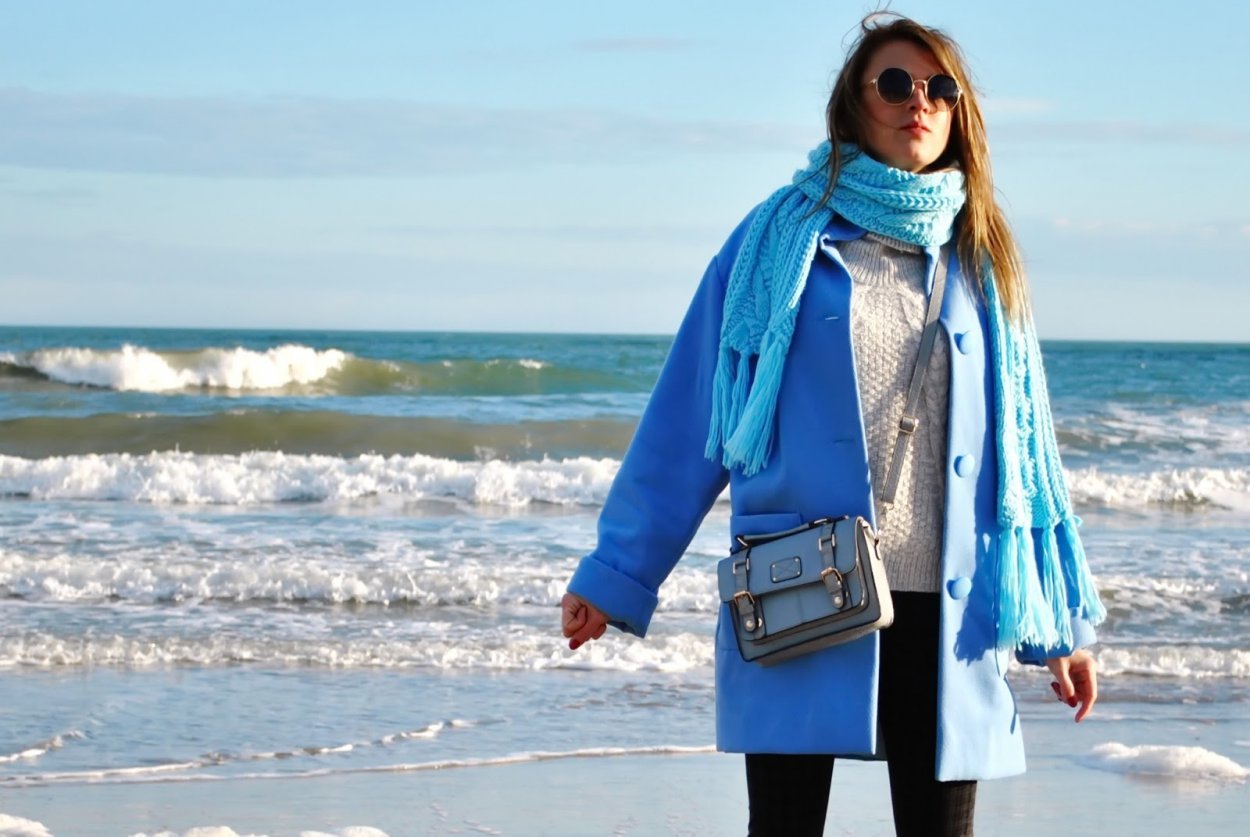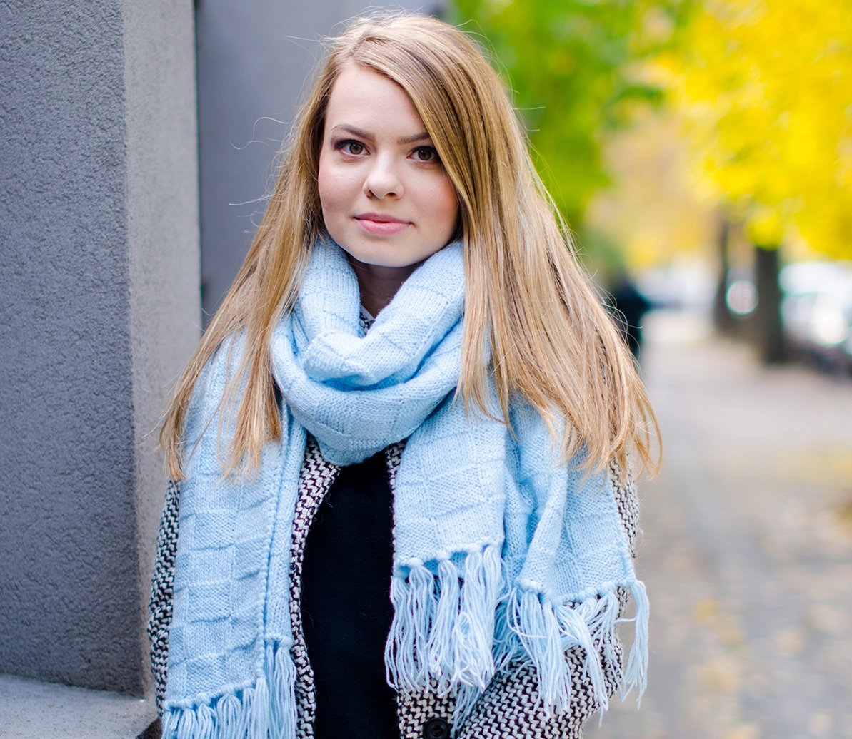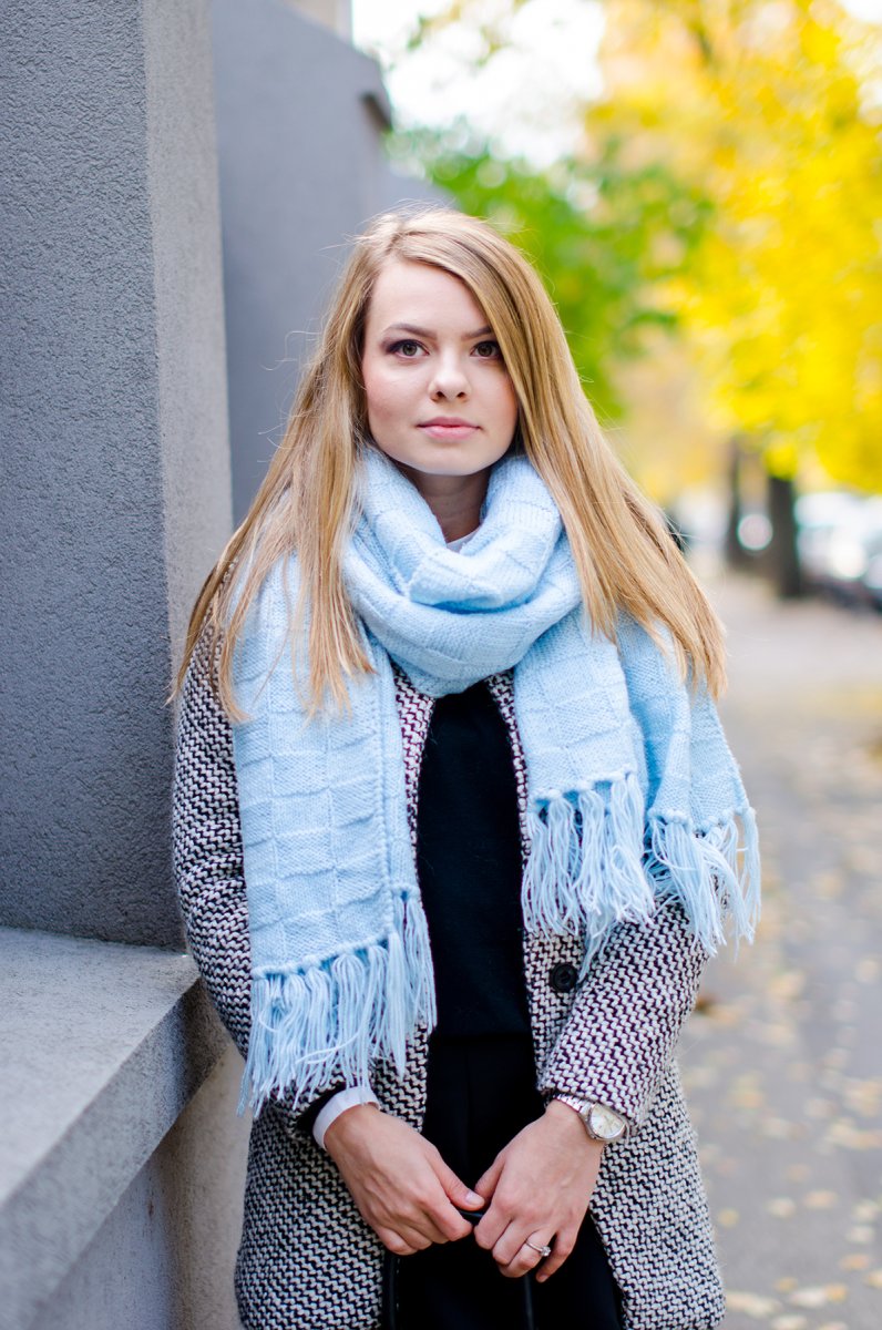 Шарф к голубому пальто
