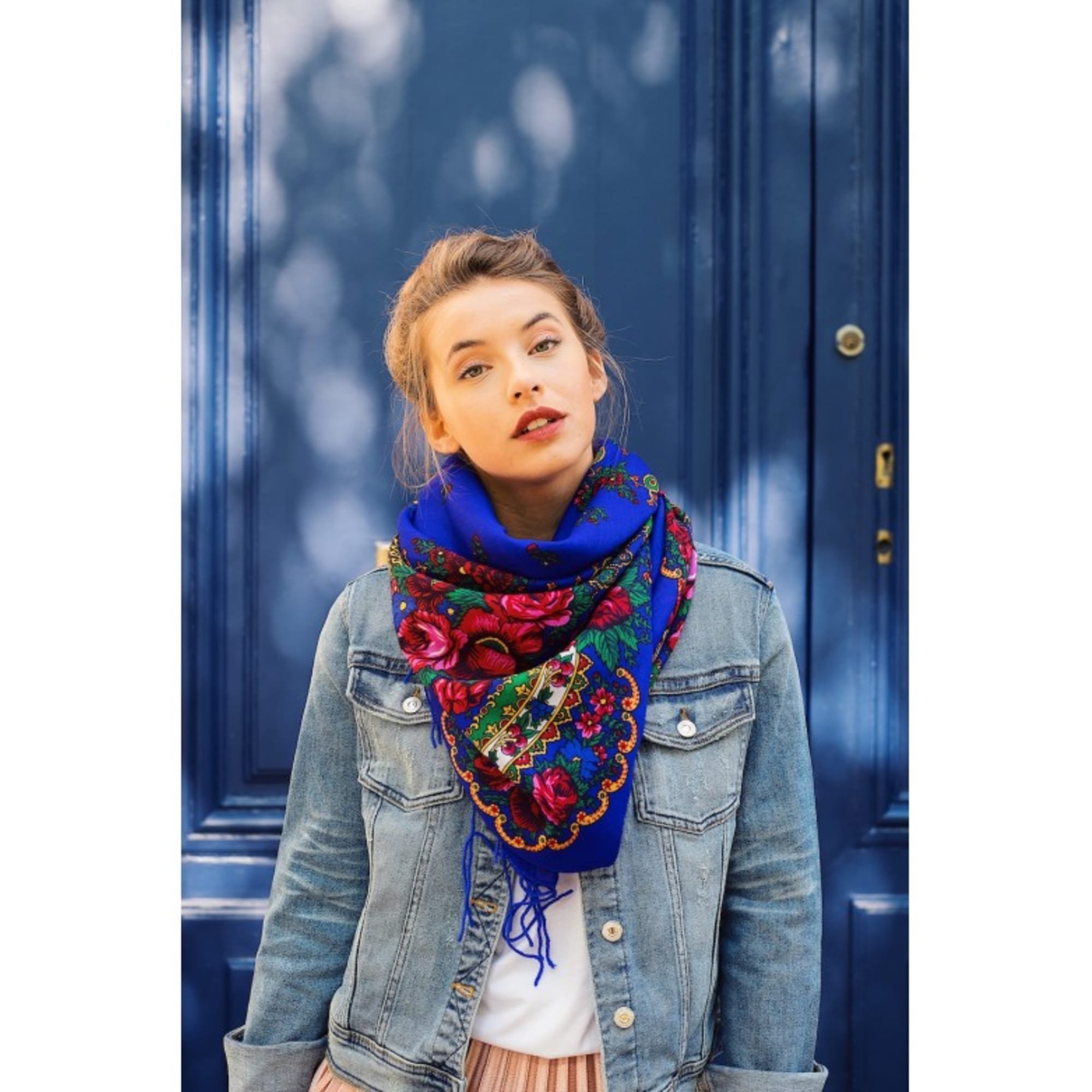 Платок под голубое пальто