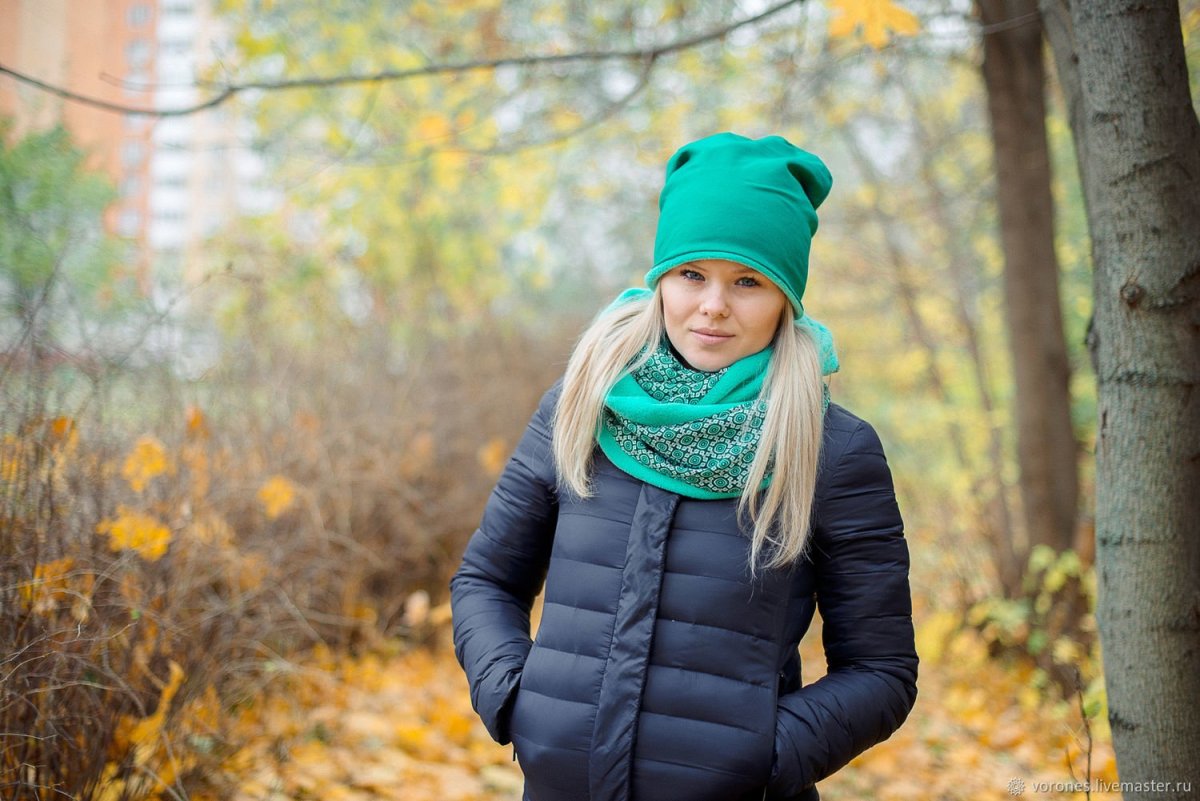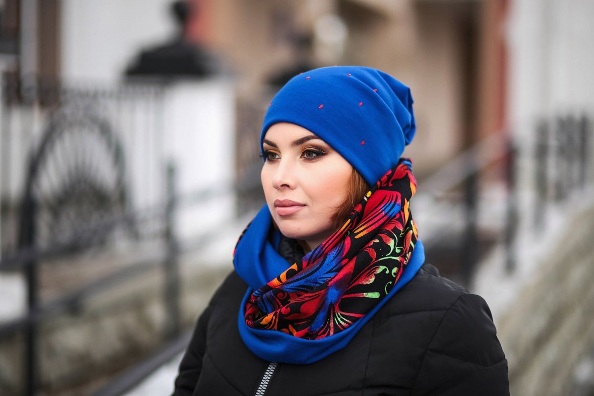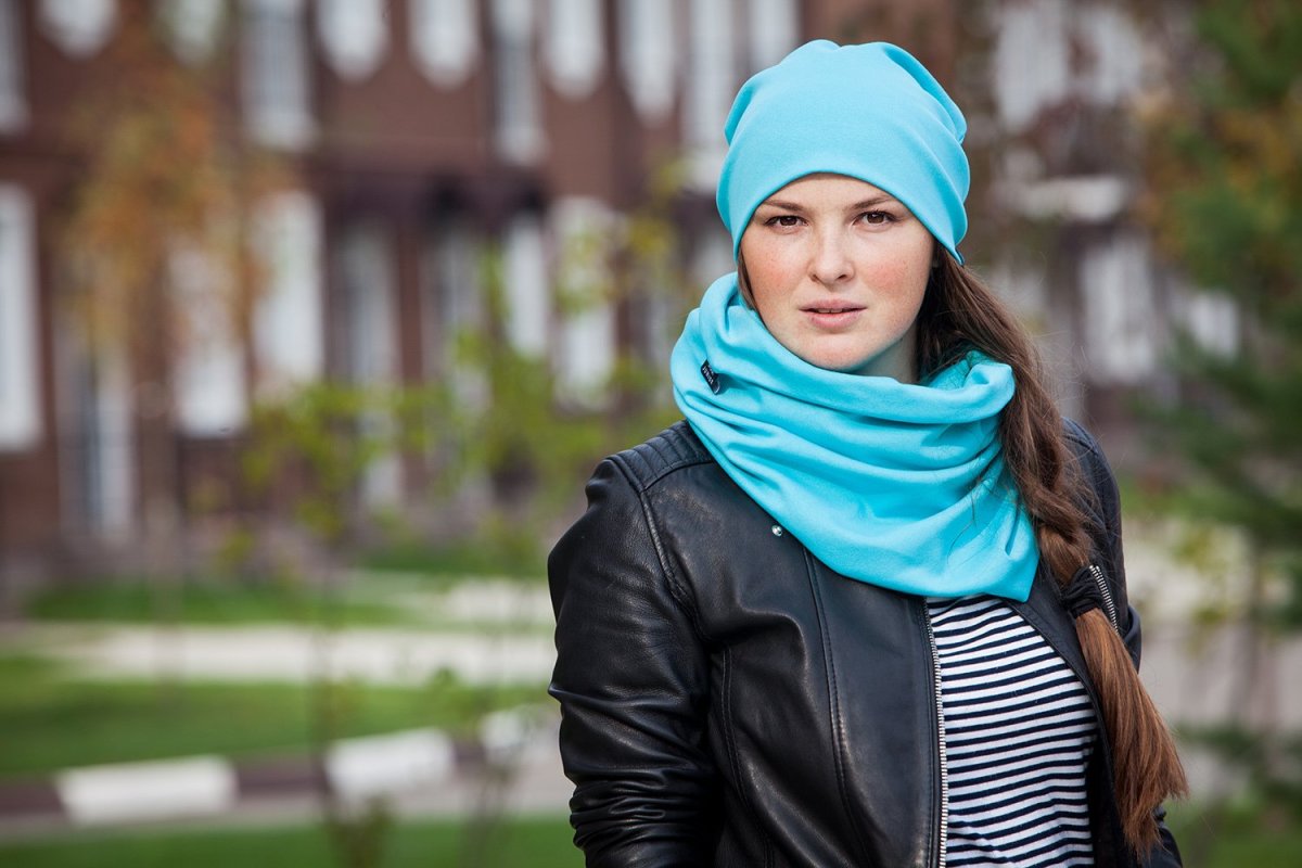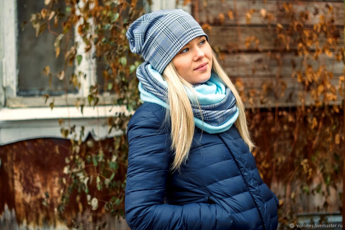 Шапка и шарф под синюю куртку