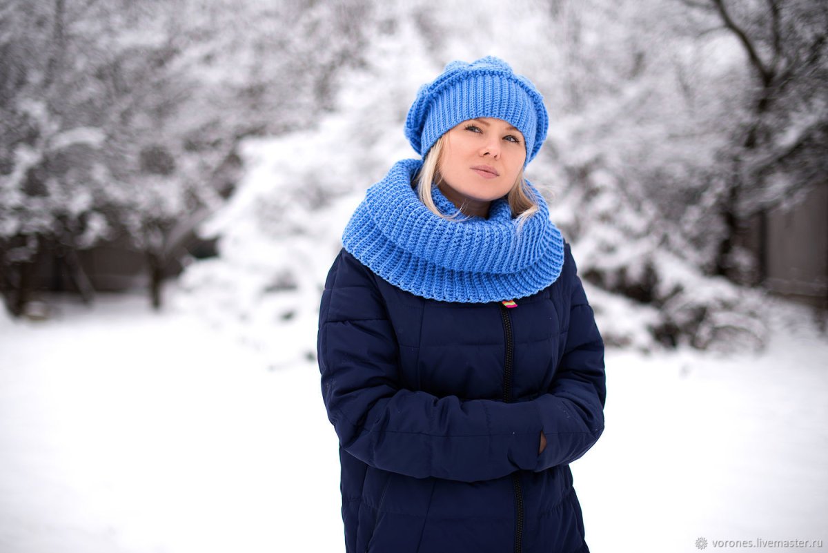 Синий шарф и шапка