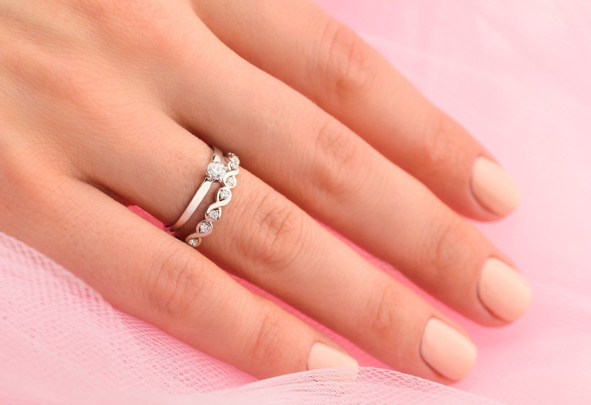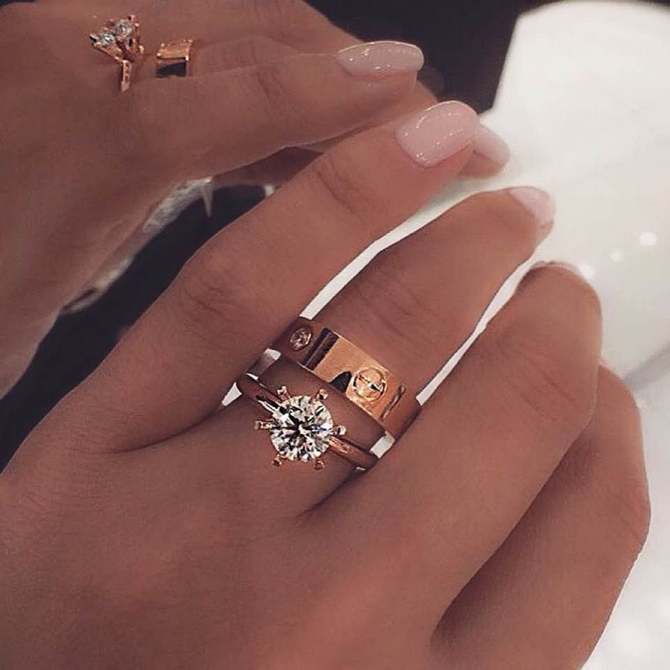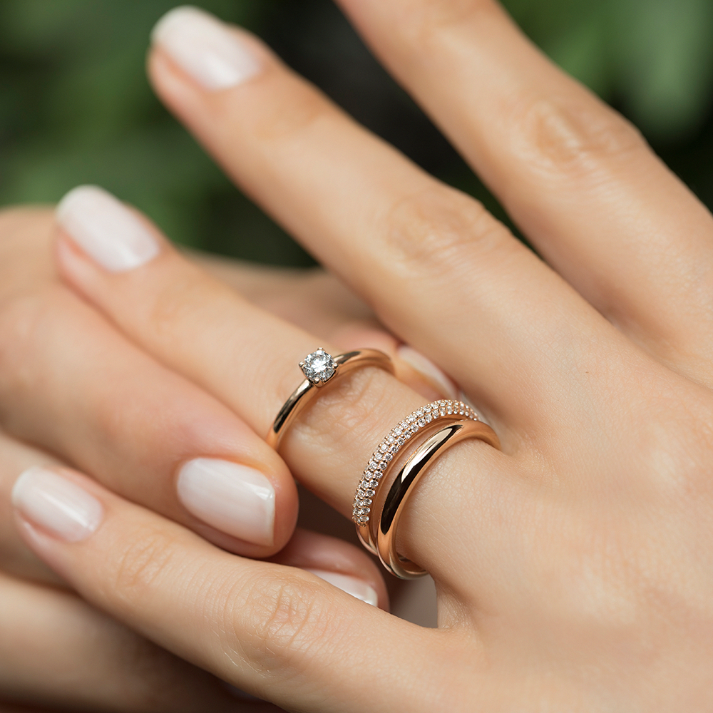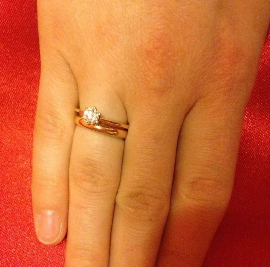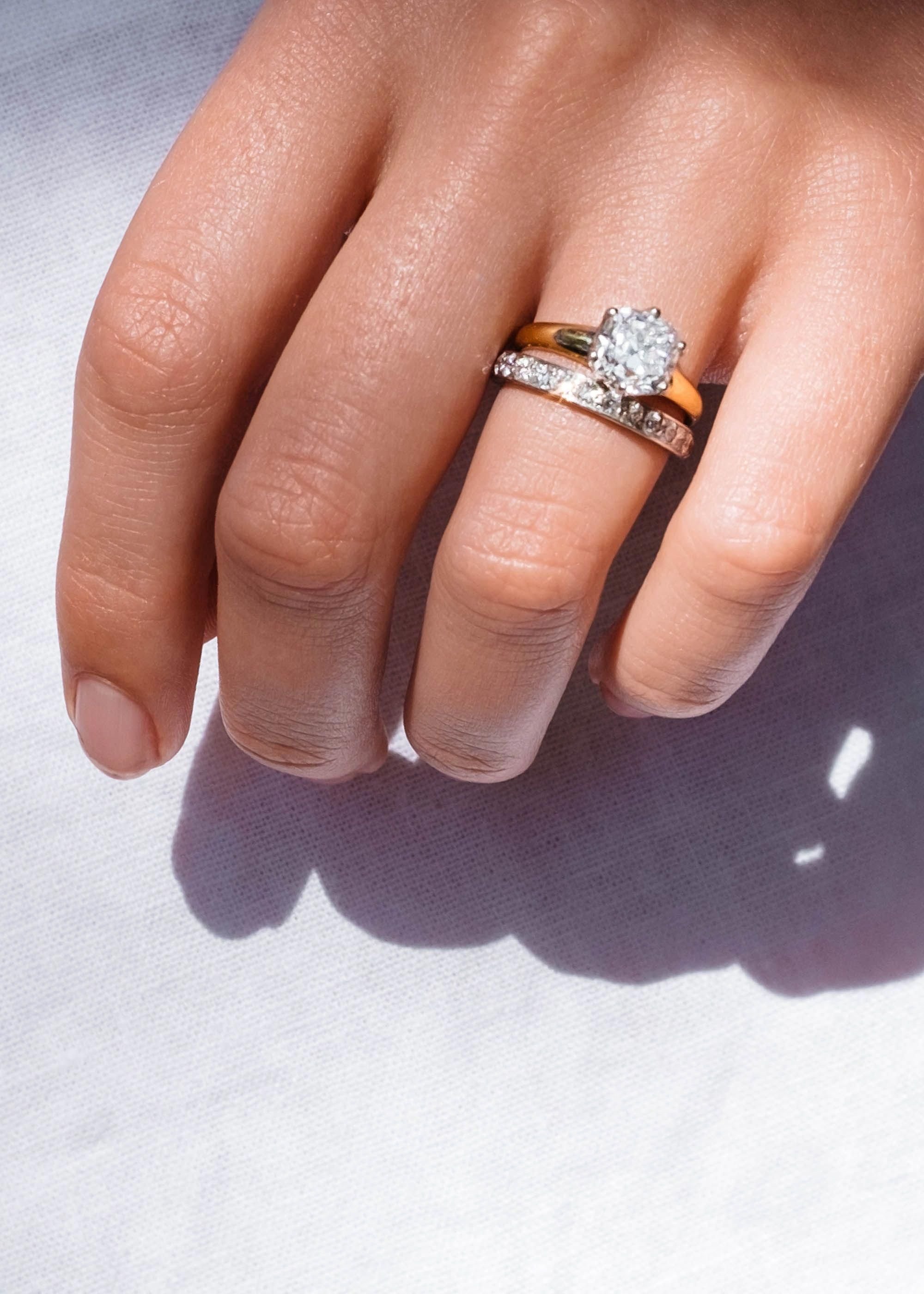 Обручальные и помолвочные кольца два на одном пальце