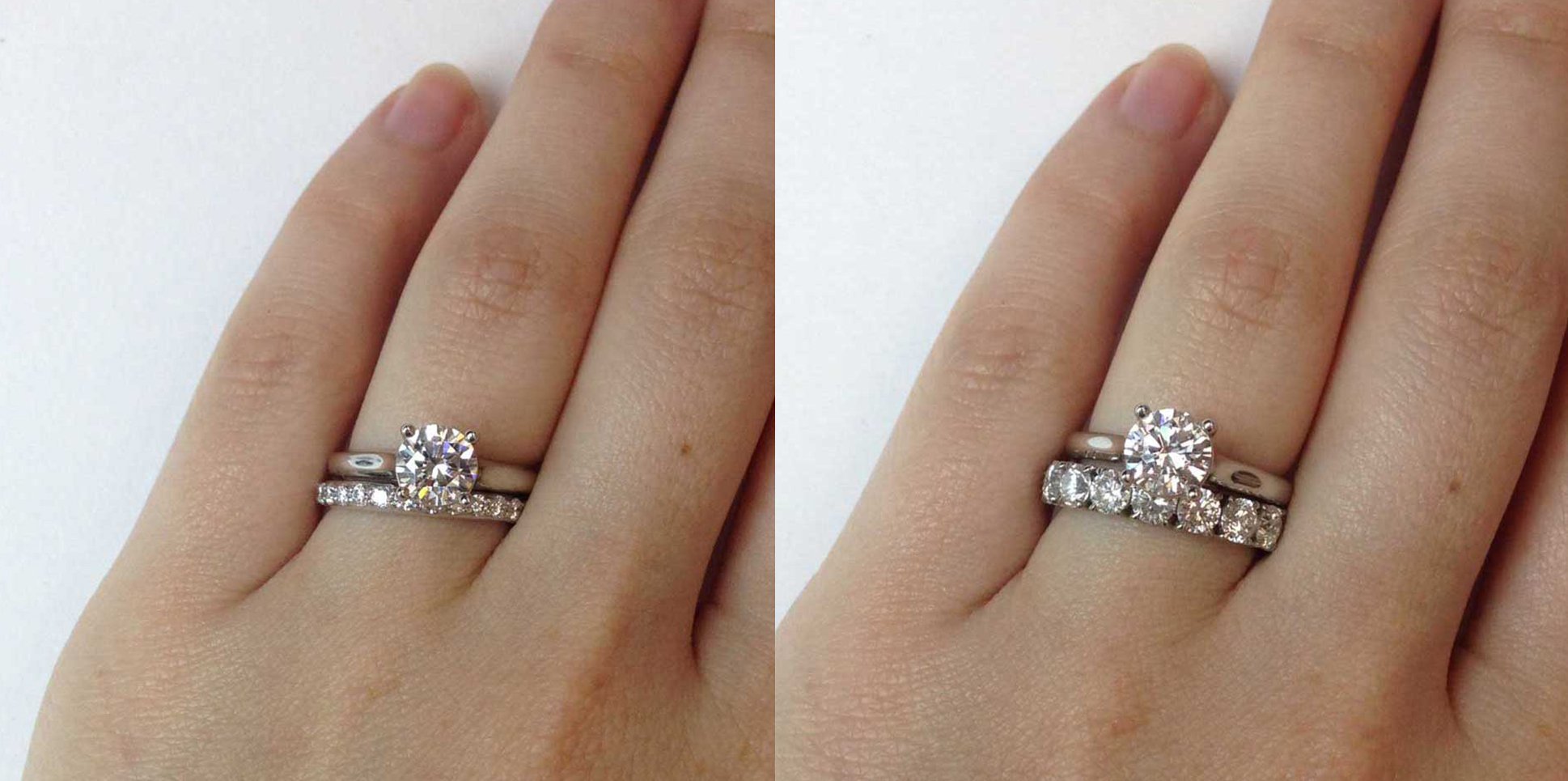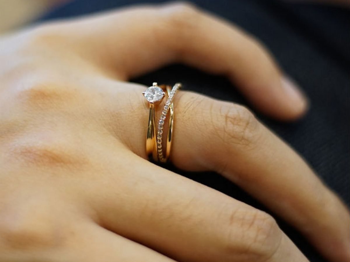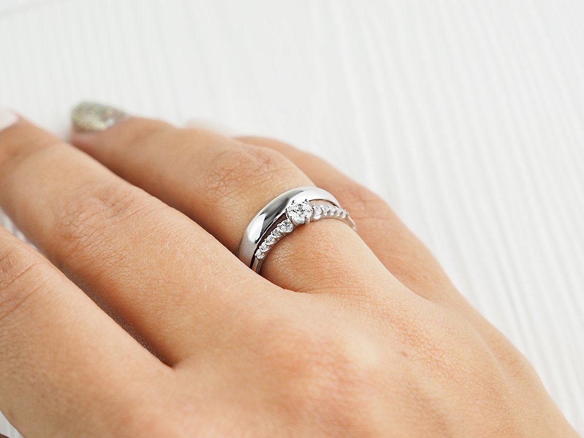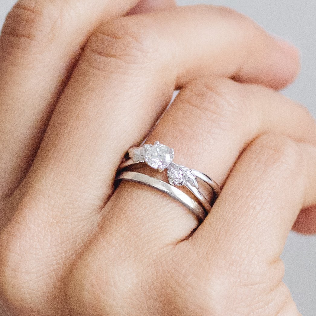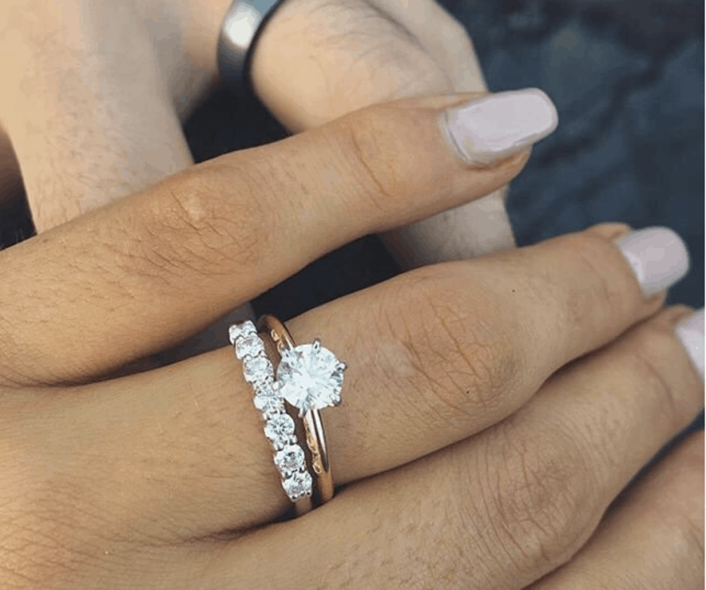 Обручальные и помолвочные кольца два на одном пальце