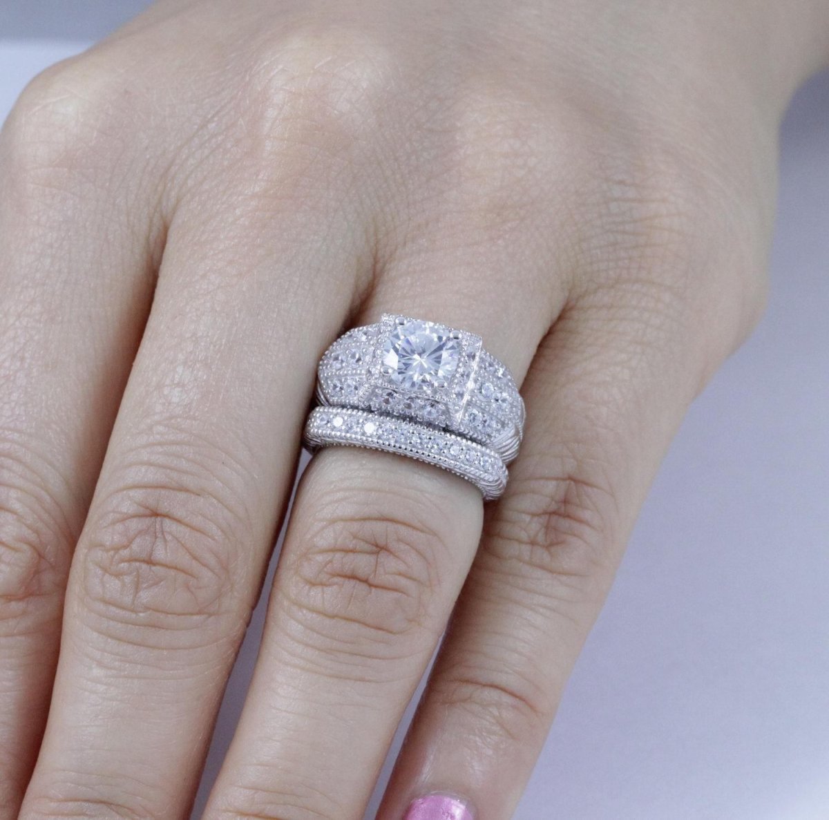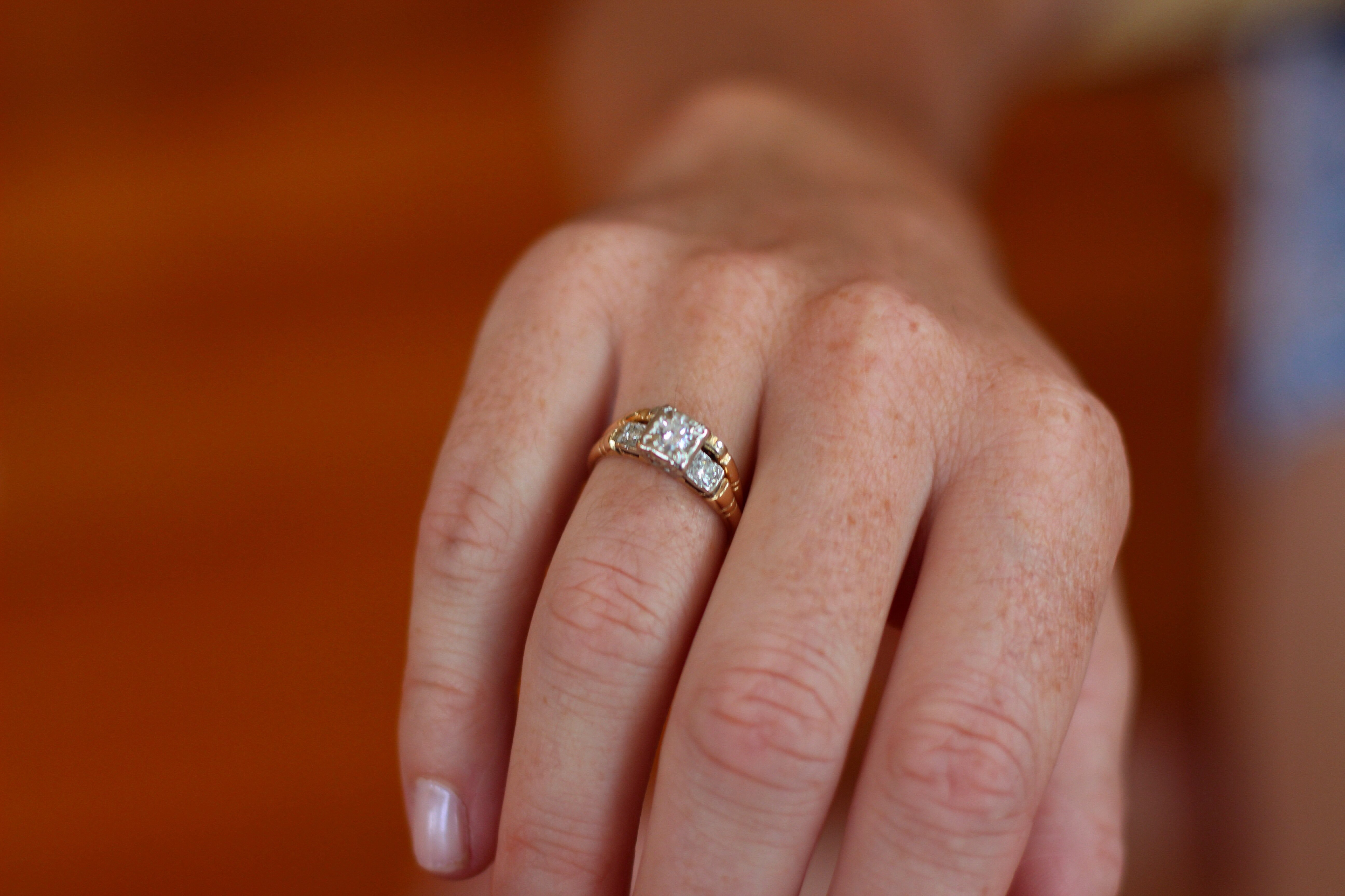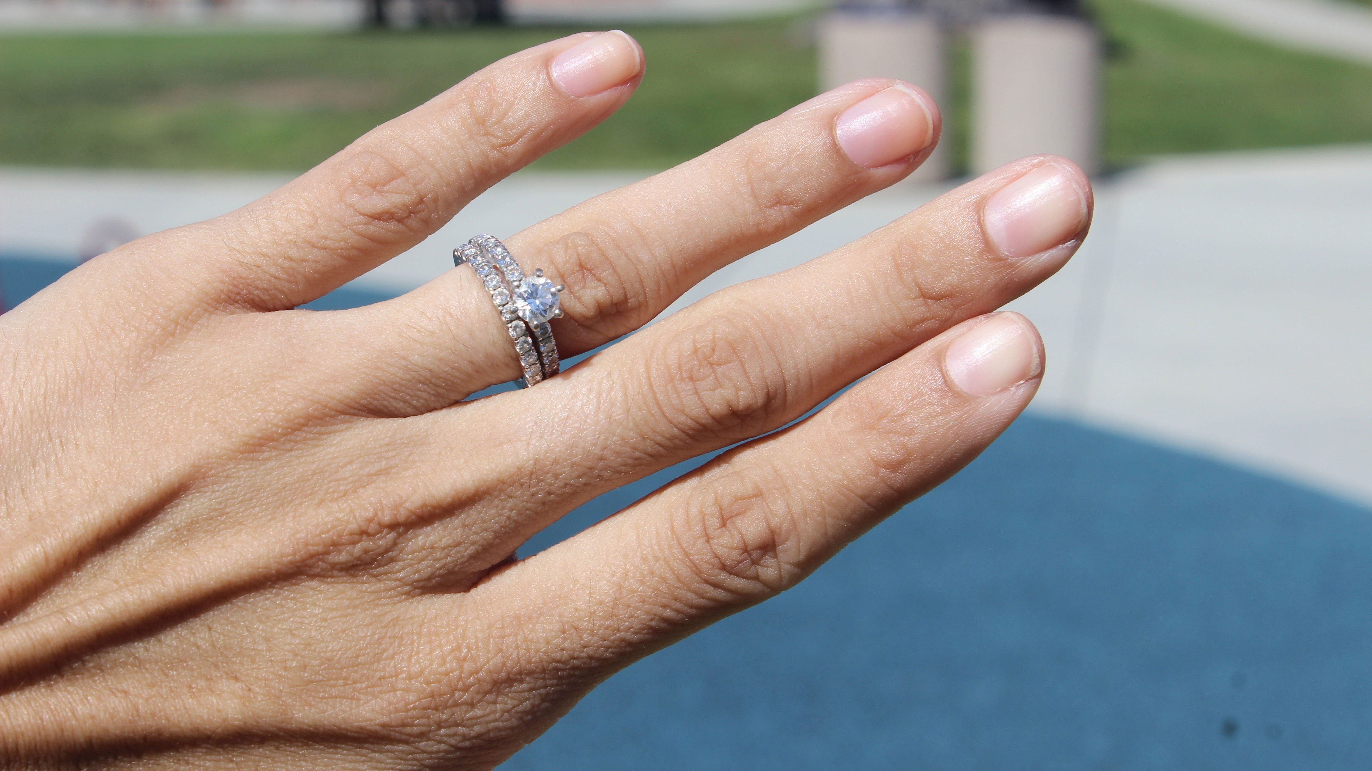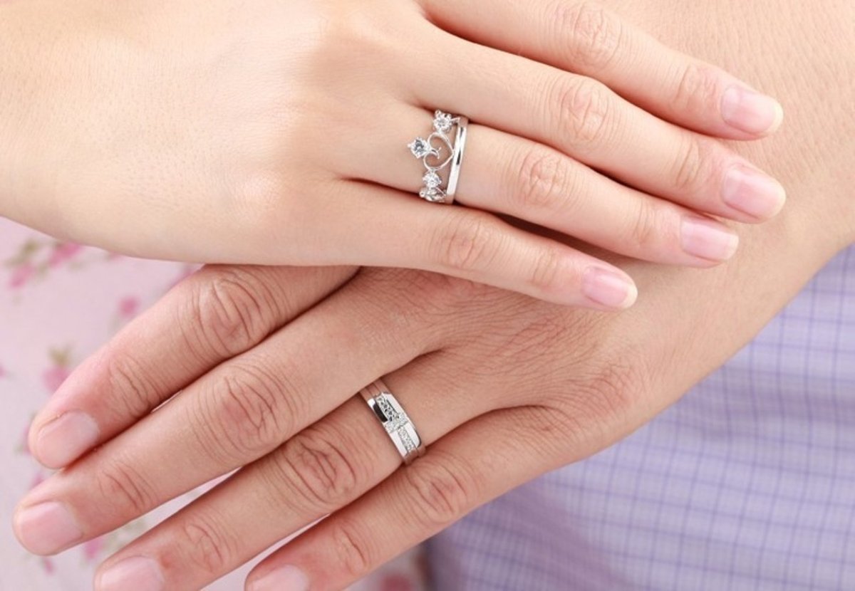 Обручальные и помолвочные кольца два на одном пальце