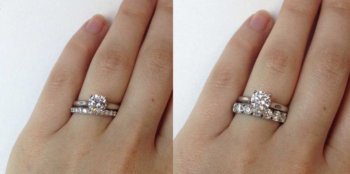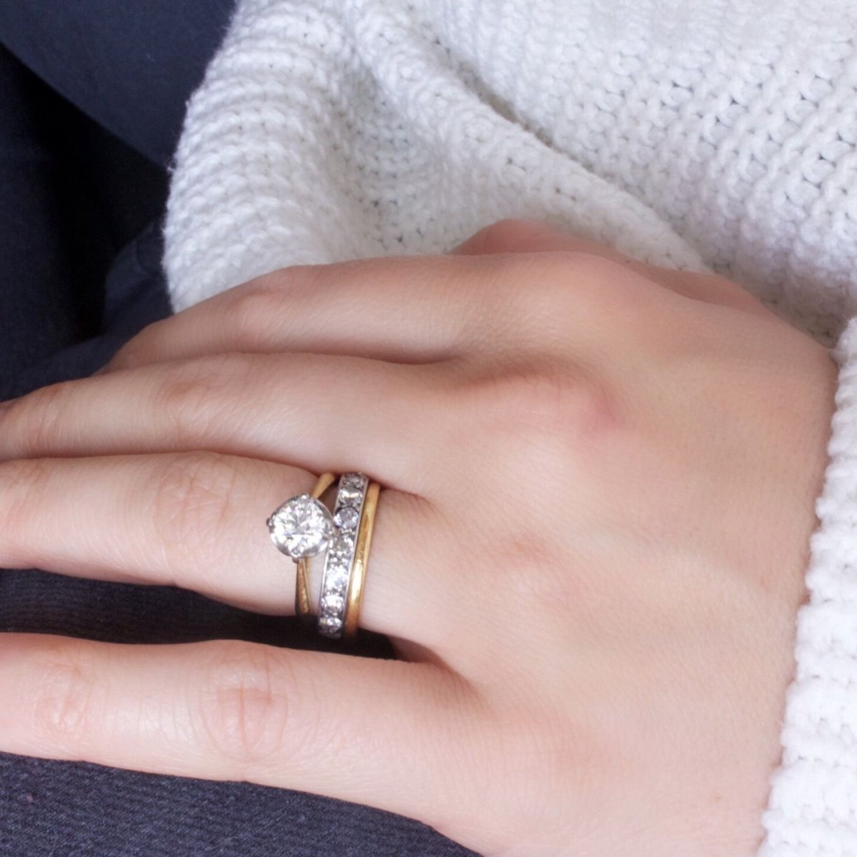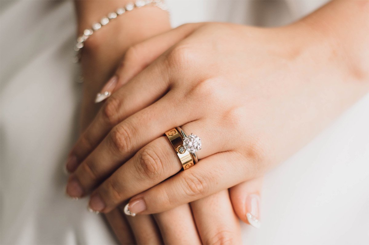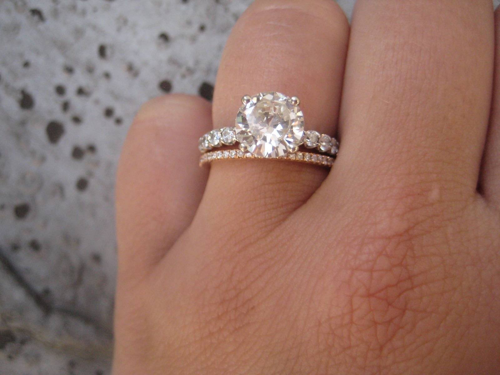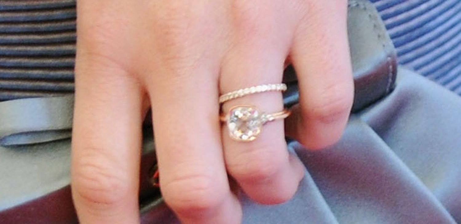 Обручальные и помолвочные кольца на одном пальце