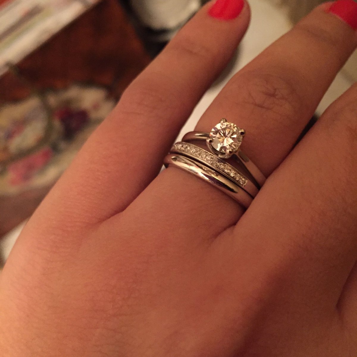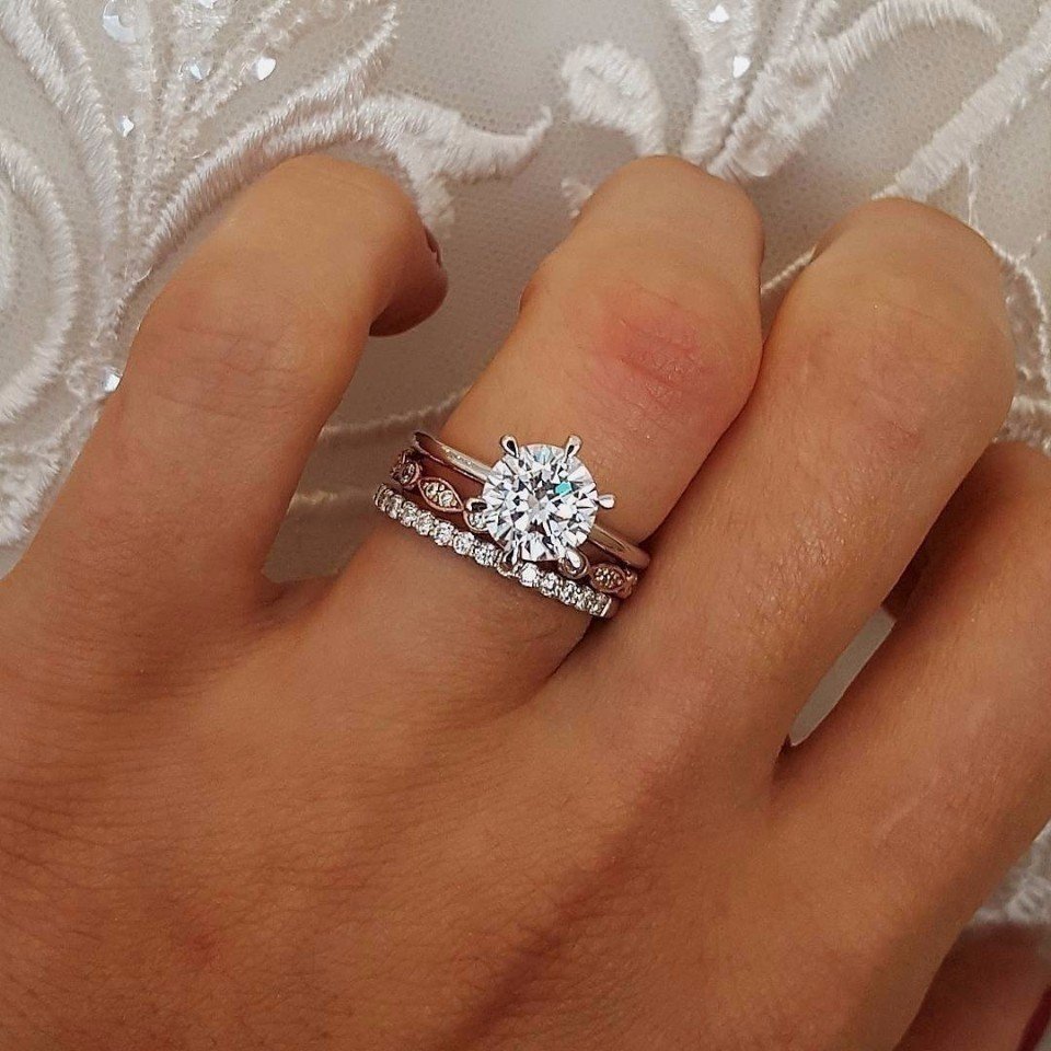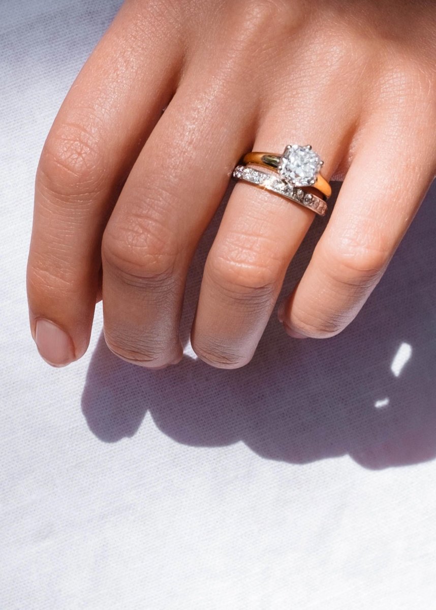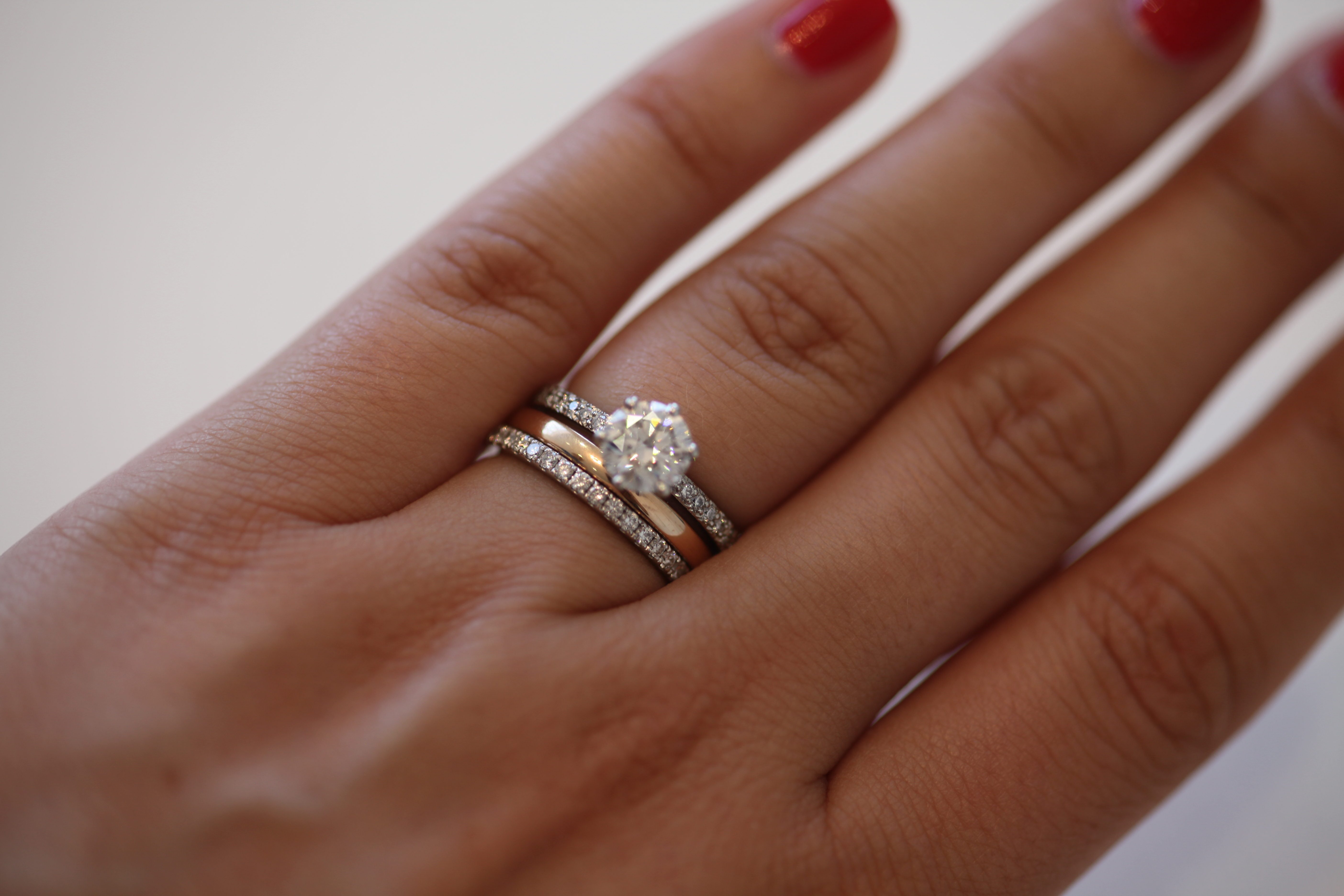 Обручальные и помолвочные кольца на одном пальце