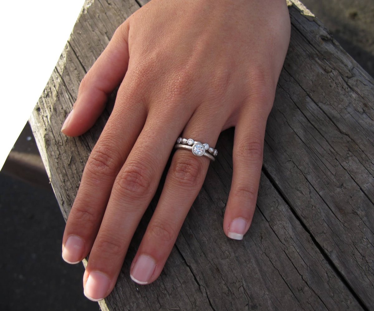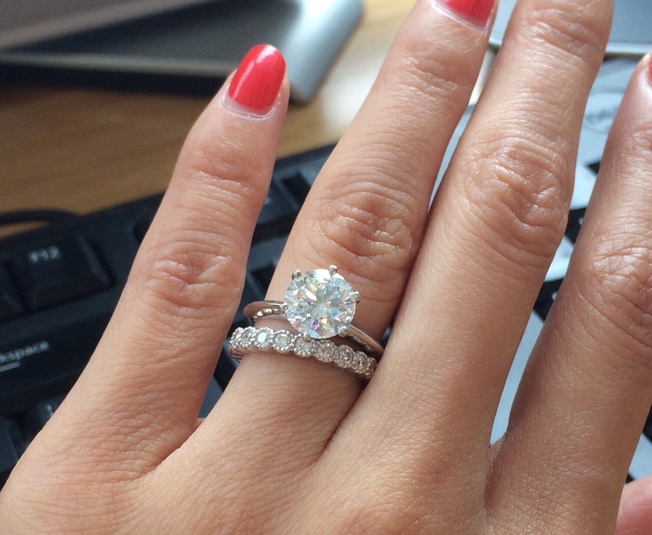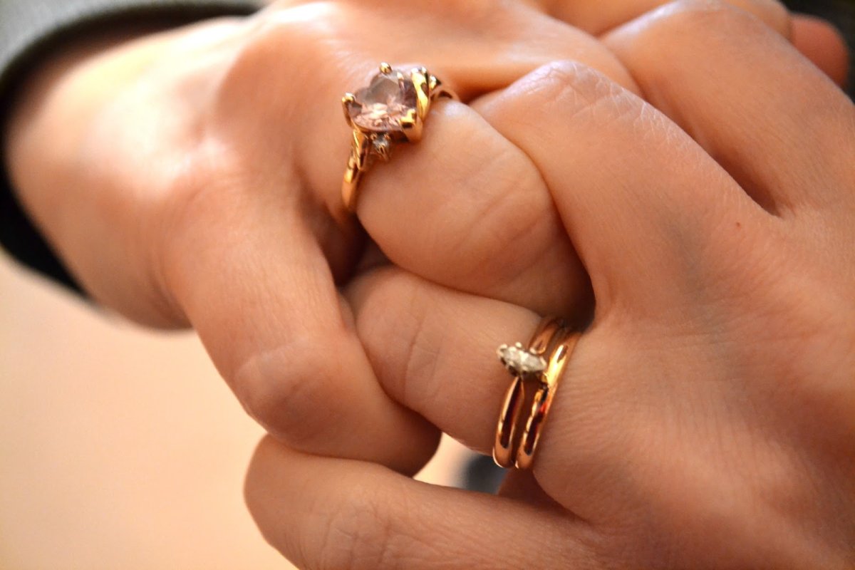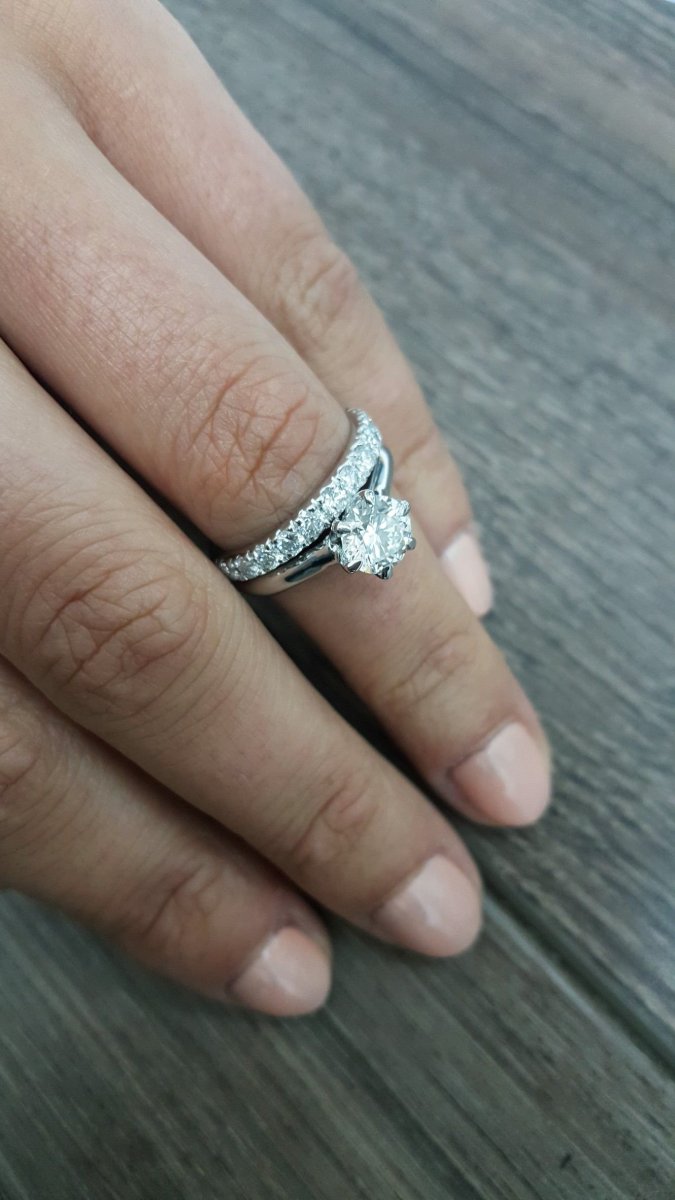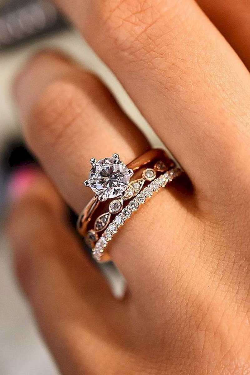 Обручальные и помолвочные кольца на одном пальце
