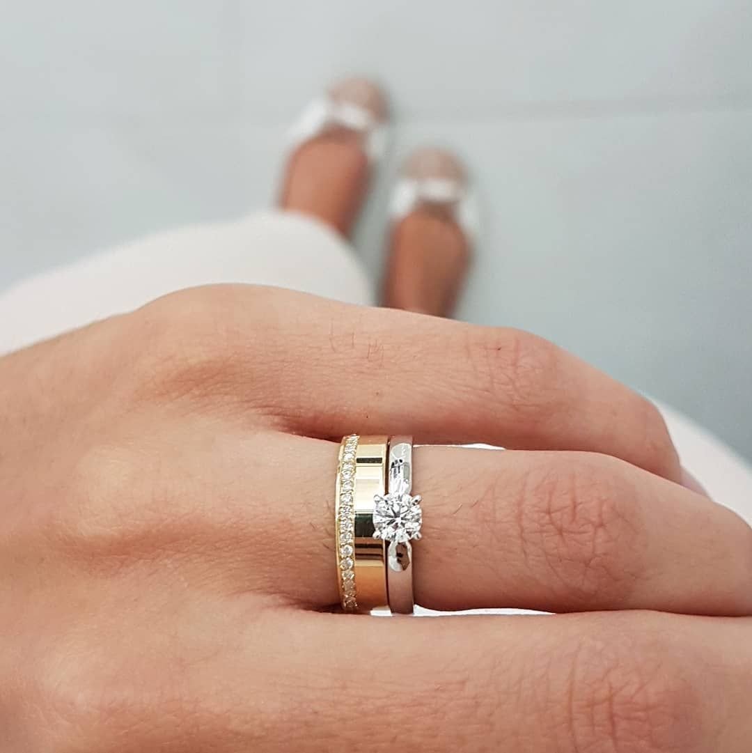 Обручальное и помолвочное кольцо вместе