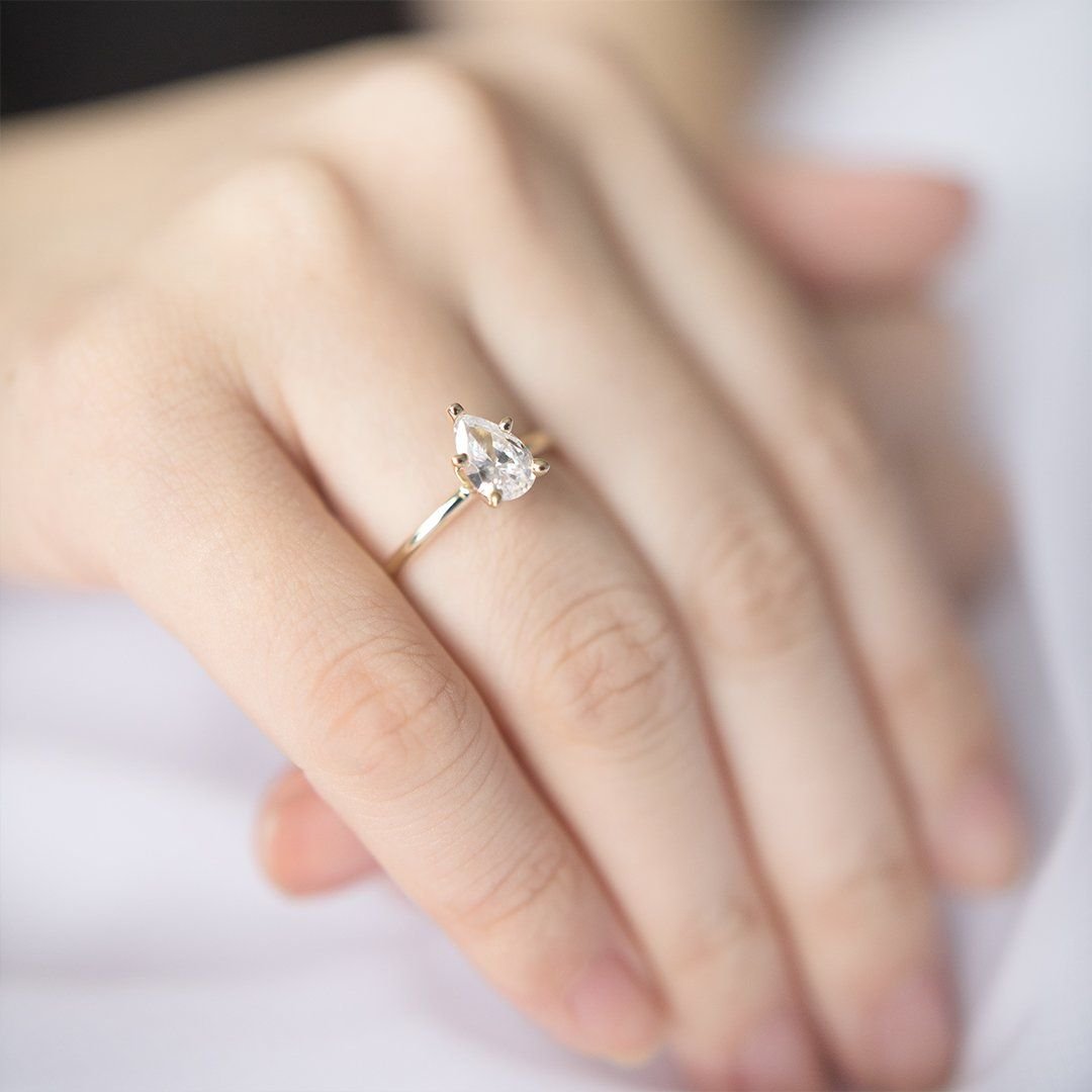 2 CT Pear Moissanite Engagement Ring, Solitaire Pear Engagement Ring, 14k Rose Gold, Wedding Ring, Anniversary Ring