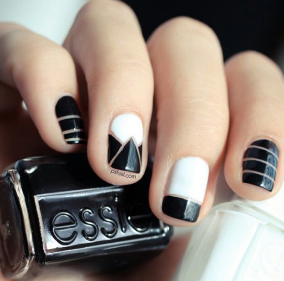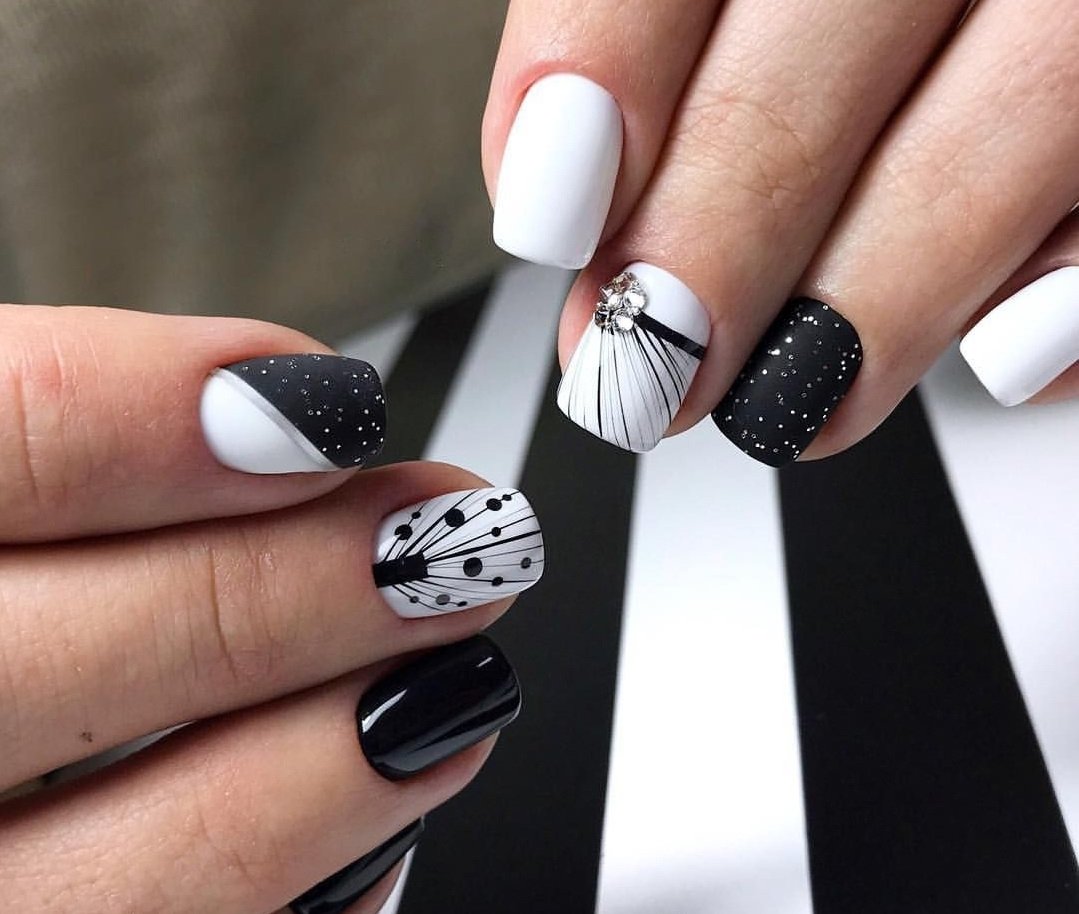 Дизайн ногтей сочетание черного и белого