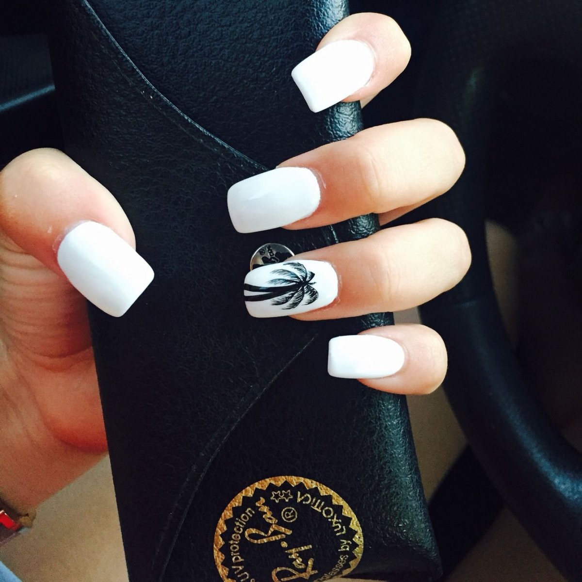 Белый маникюр с пальмами